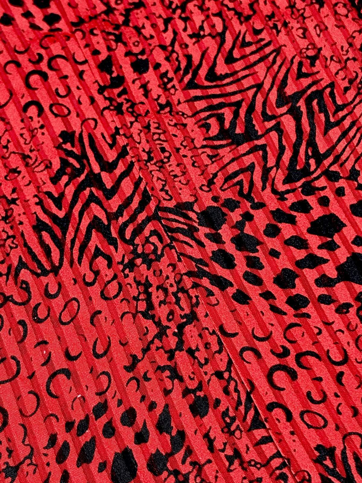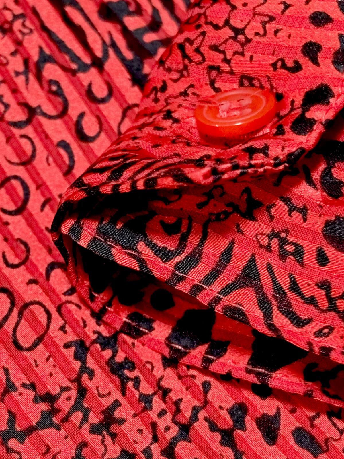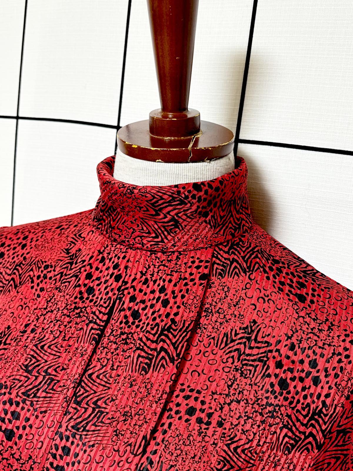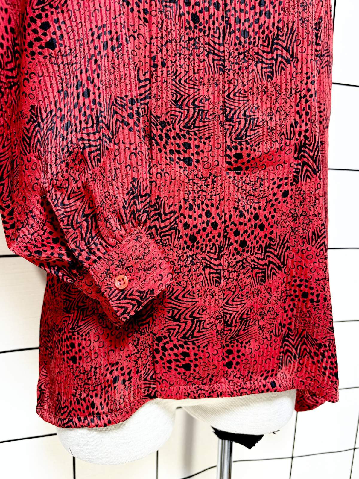アート柄 ストライプ ハイネック レッド ブラック レトロ USA古着 長袖 シャツ ヴィンテージトップス [10109]