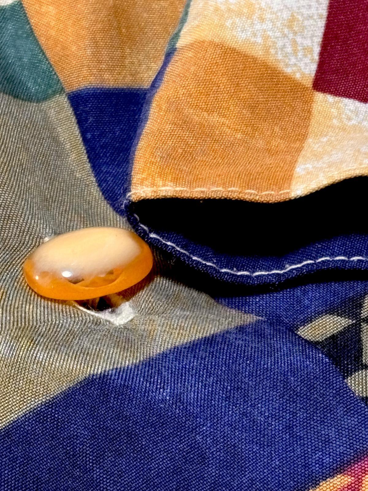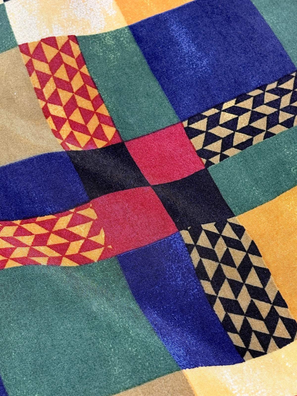 チェック柄 オーバーサイズコーデにも キュプラ レトロ ヨーロッパ古着 長袖 シャツ ヴィンテージブラウス