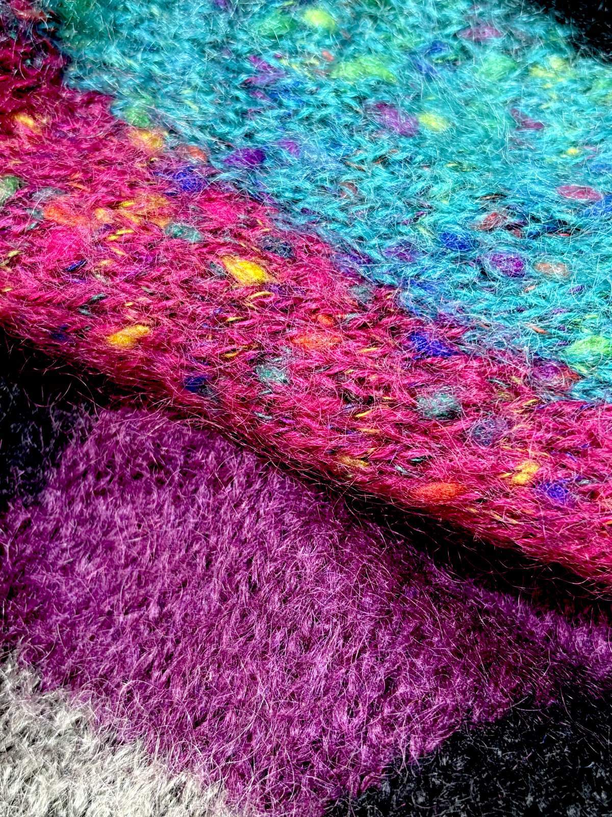 マルチカラー編み モヘア 裏地付 レトロ ヨーロッパ古着 ヴィンテージニットカーディガン