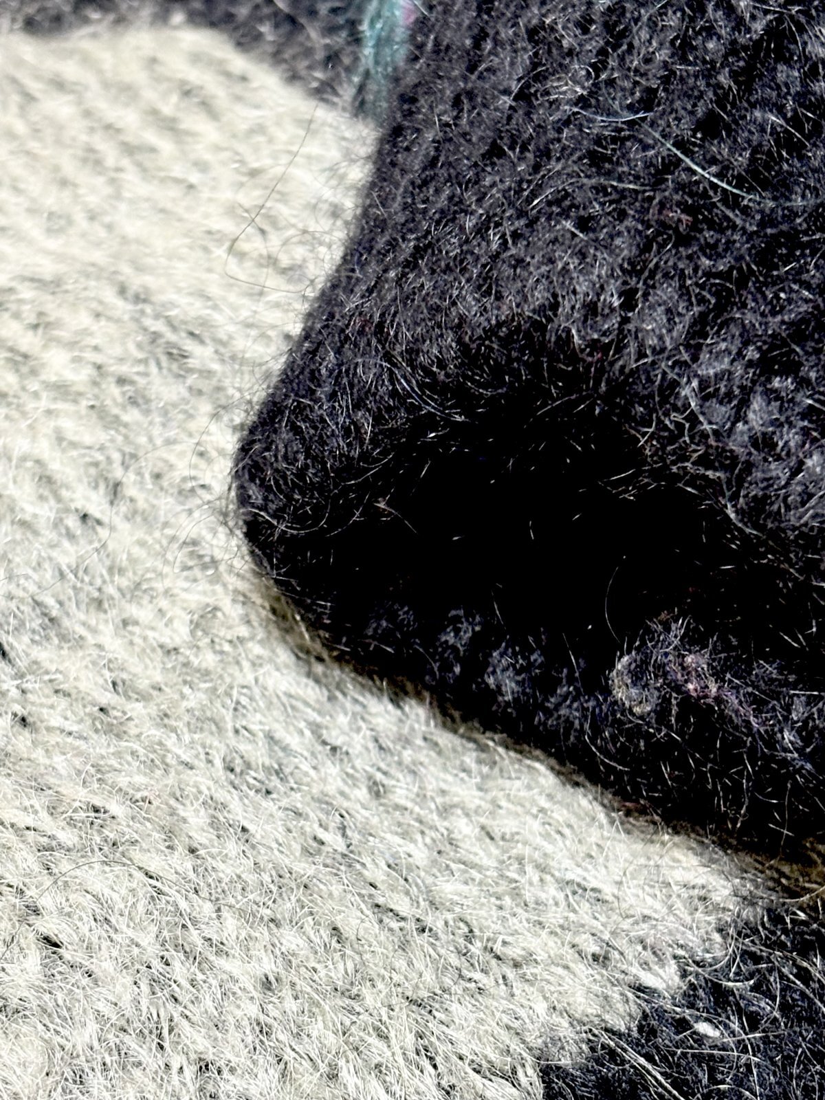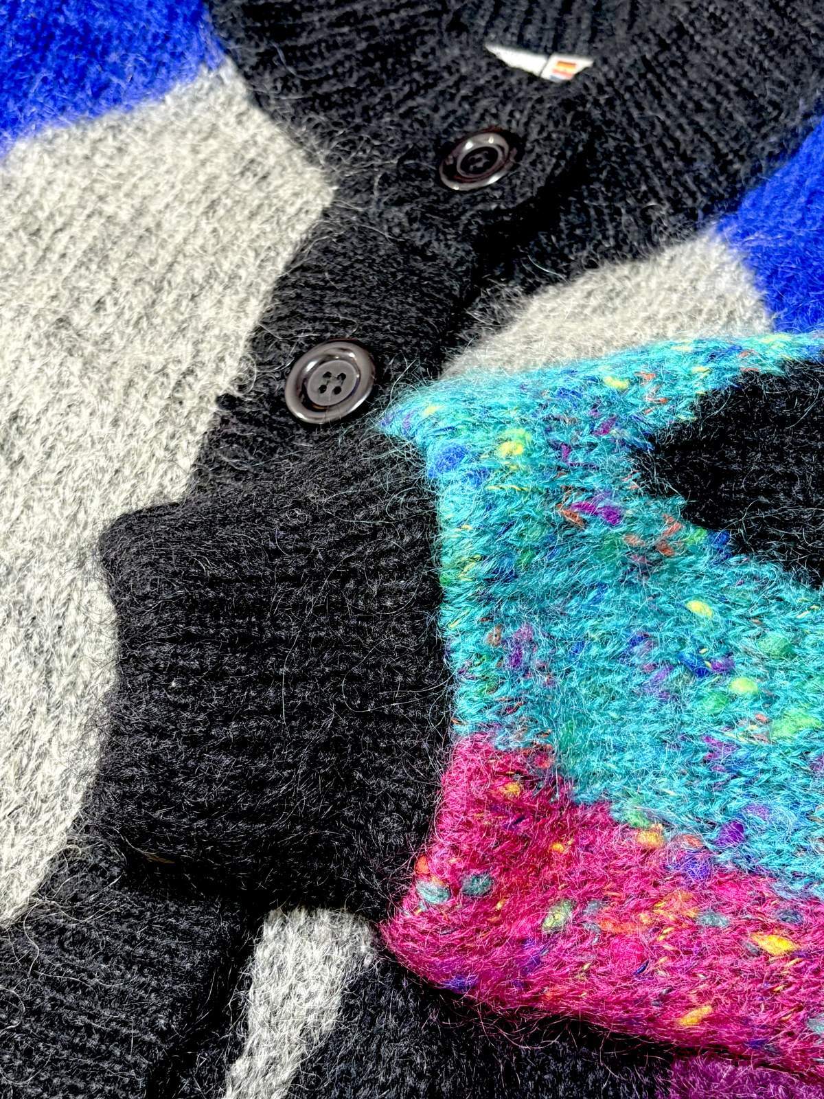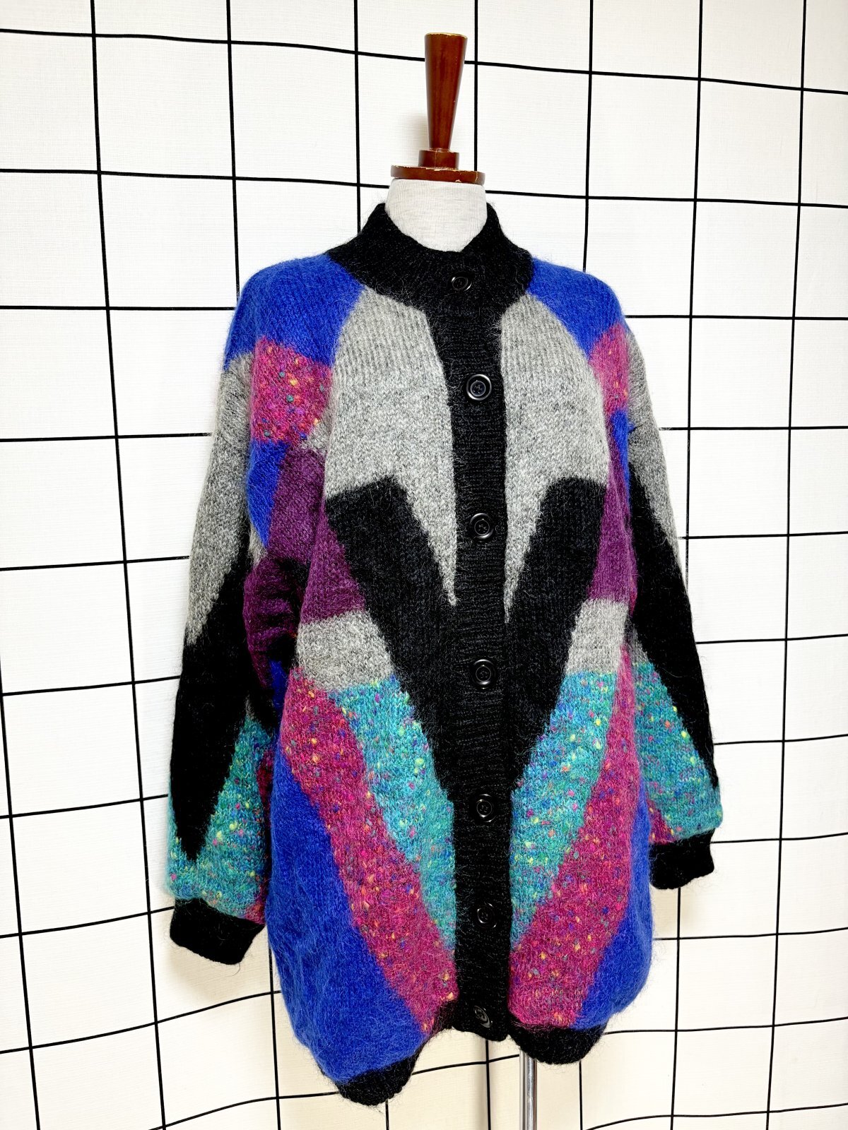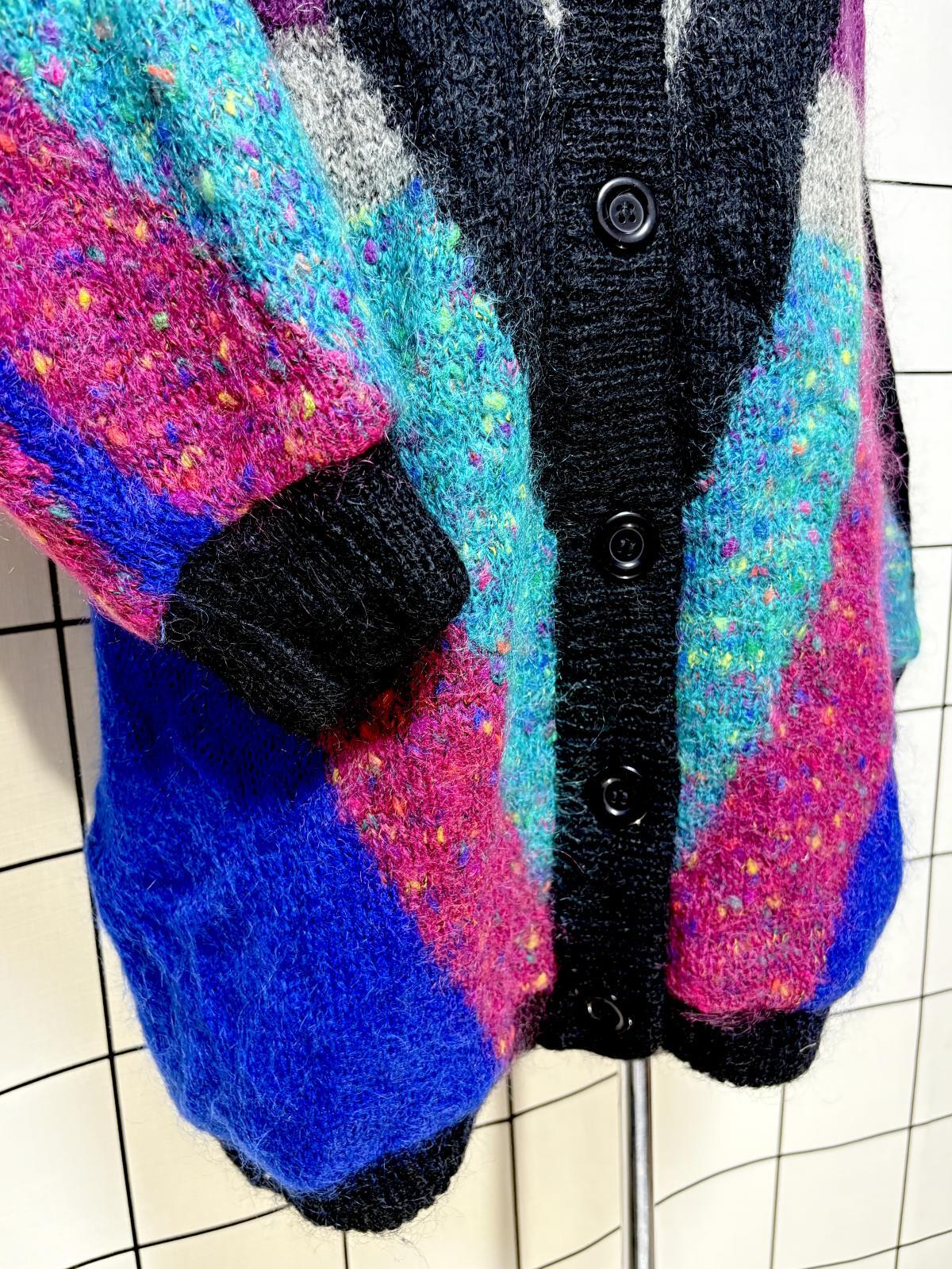 マルチカラー編み モヘア 裏地付 レトロ ヨーロッパ古着 ヴィンテージニットカーディガン [10501]