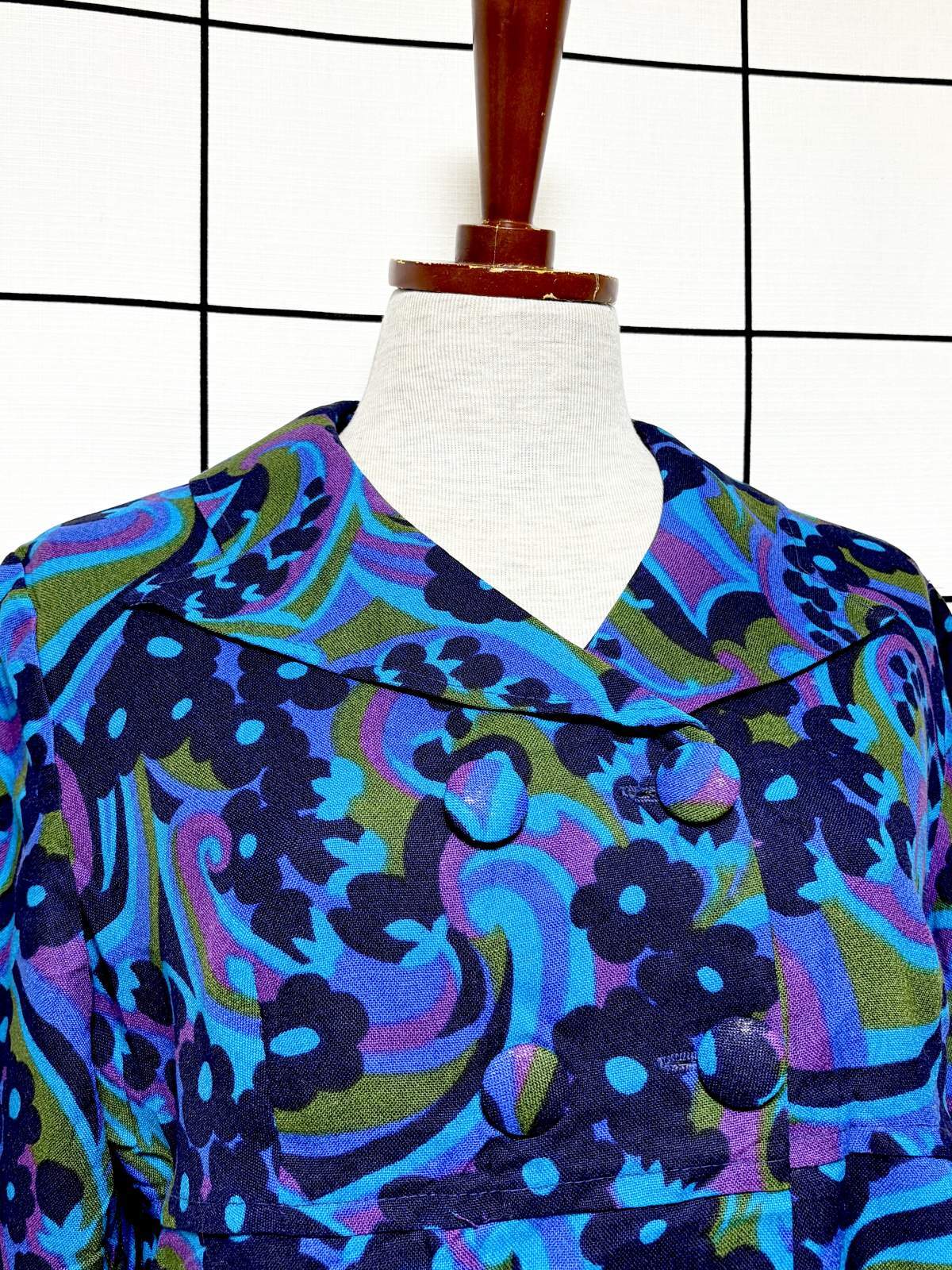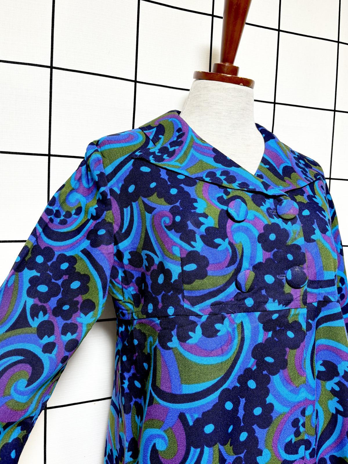 レトロ ポップサイケ 花柄 前開き レトロ ヨーロッパ古着 ヴィンテージワンピース [10506]
