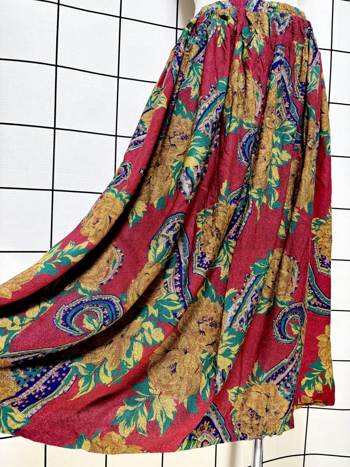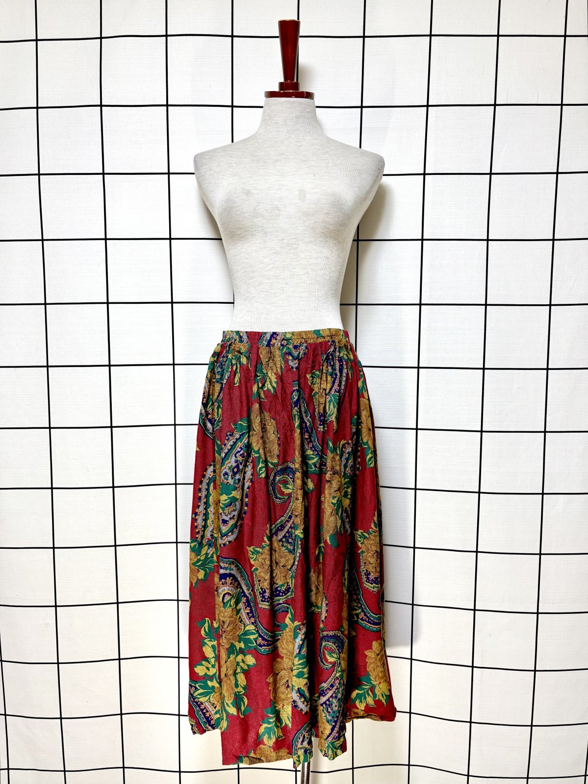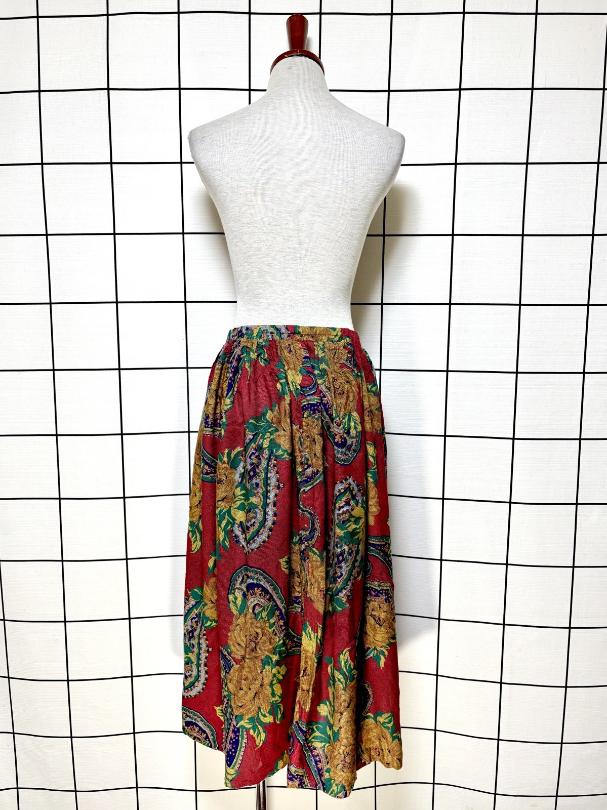 ペイズリー 花柄 ウエストゴム レトロ USA古着 ヴィンテージスカート [10808]