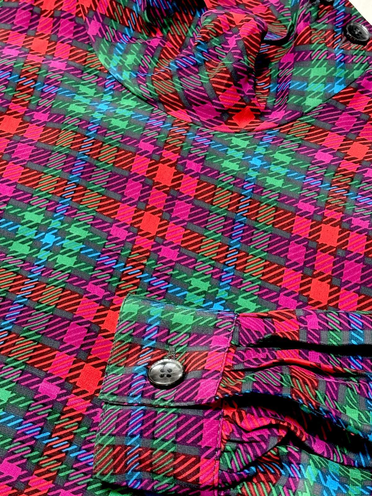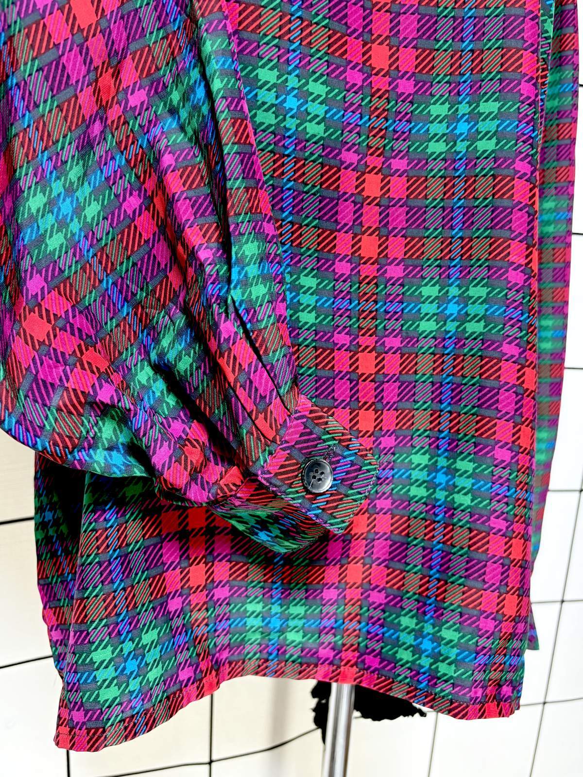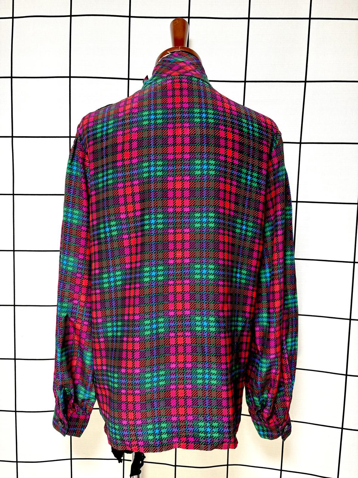 チェック柄 ハイネック レトロ プルオーバー シャツ USA古着 ヴィンテージトップス [M11134]