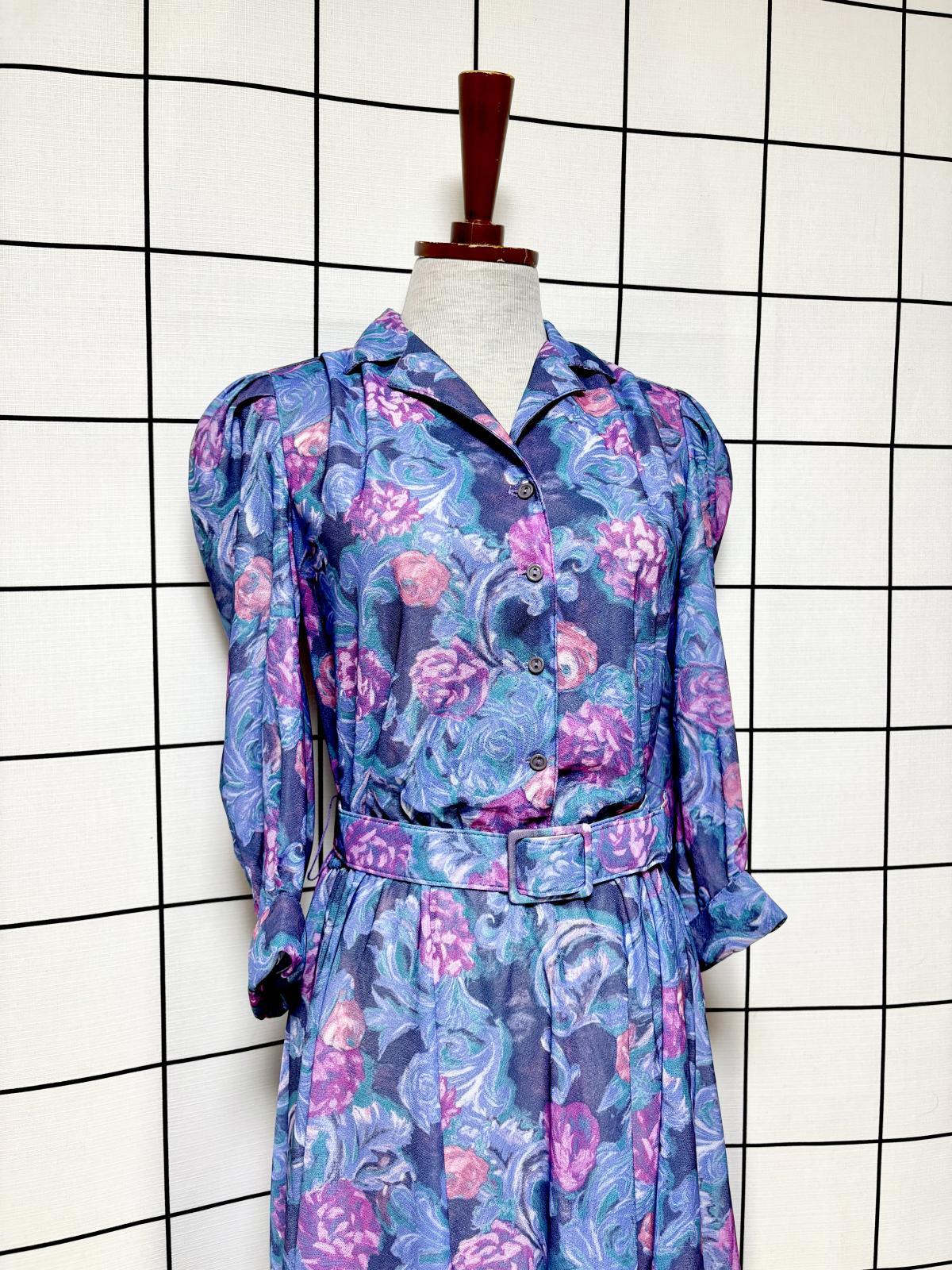 ベルト付きで大人可愛い花柄が素敵なUSAヴィンテージワンピースです。