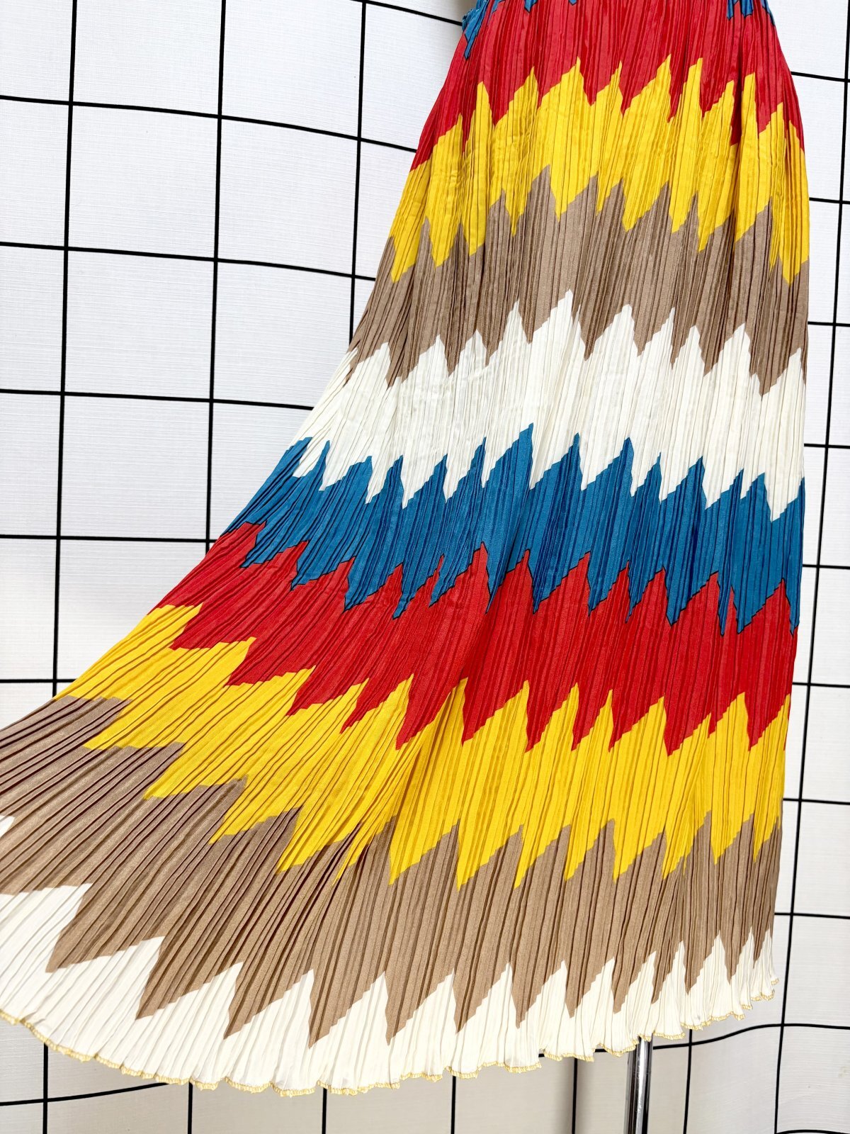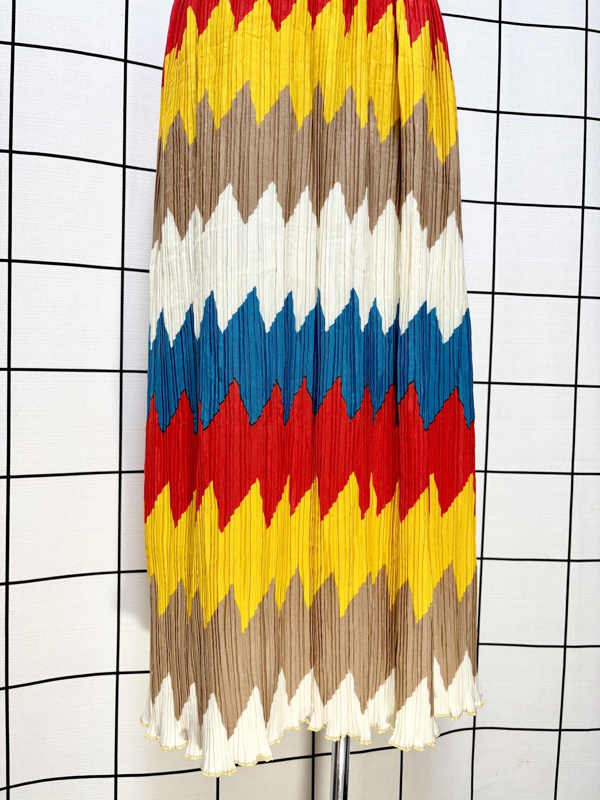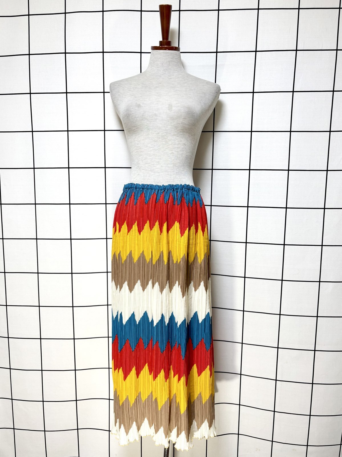プリーツ カラフル ウエストゴム レトロ USA古着 ヴィンテージスカート [M11249]