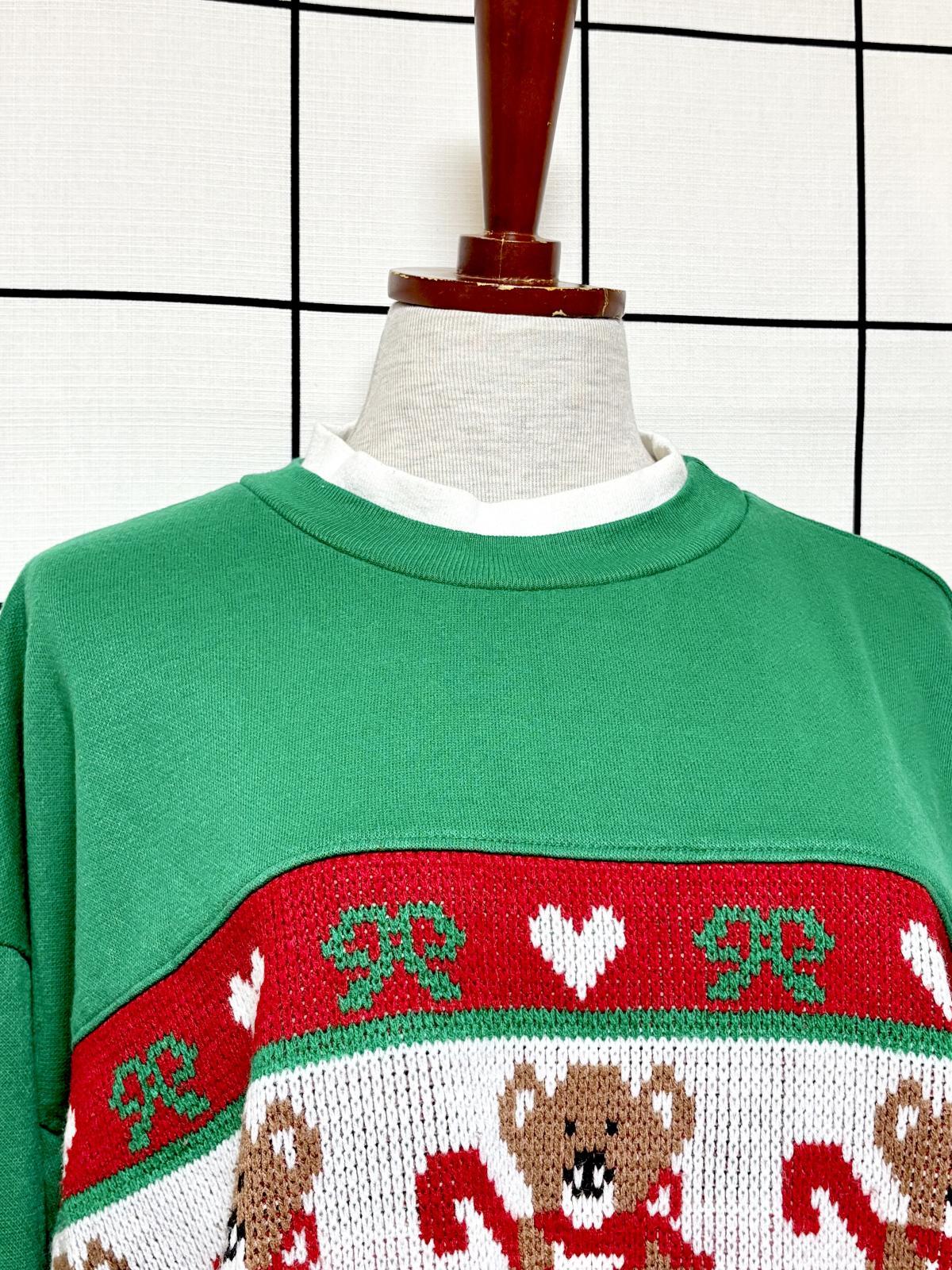 くまさん グリーン ハイネック レトロ USA古着 ヴィンテージスウェット