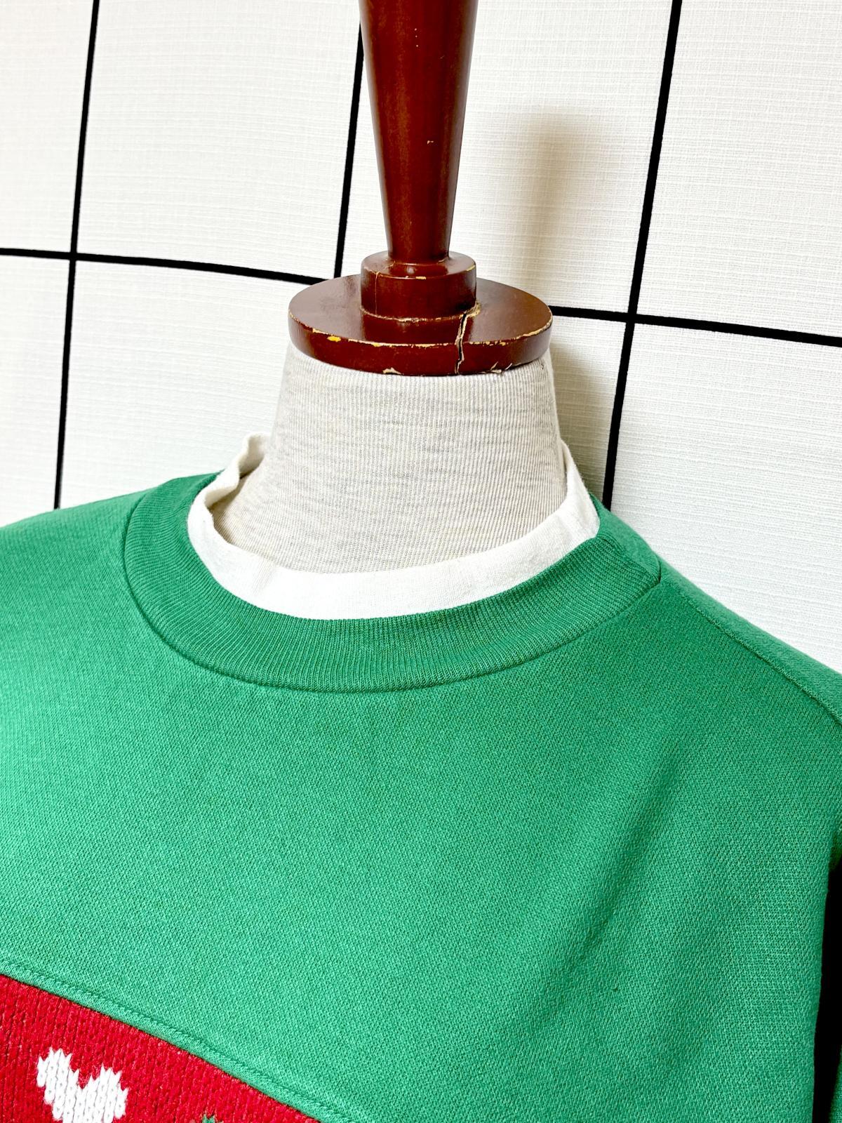 くまさん グリーン ハイネック レトロ USA古着 ヴィンテージスウェット [M11255]
