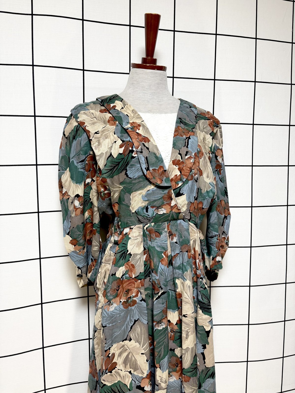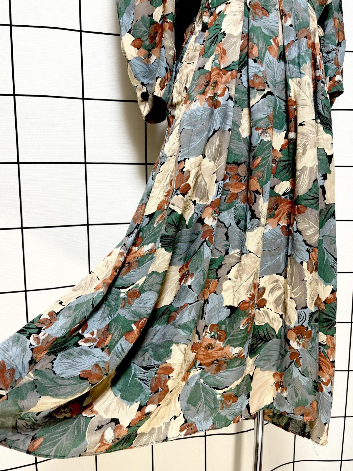 フロントレース 花柄 リーフ柄 レトロ USA古着 ヴィンテージワンピース [M11294]