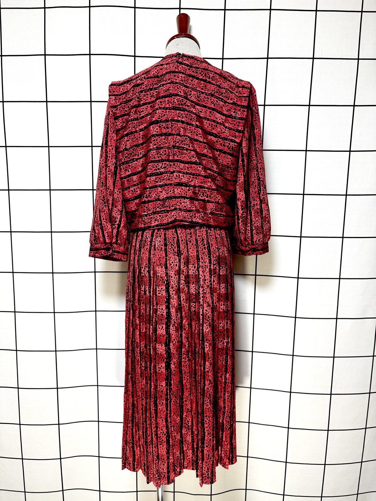 プリーツ切り替え ストライプ ボーダー レトロ USA古着 ヴィンテージワンピース [M11300]