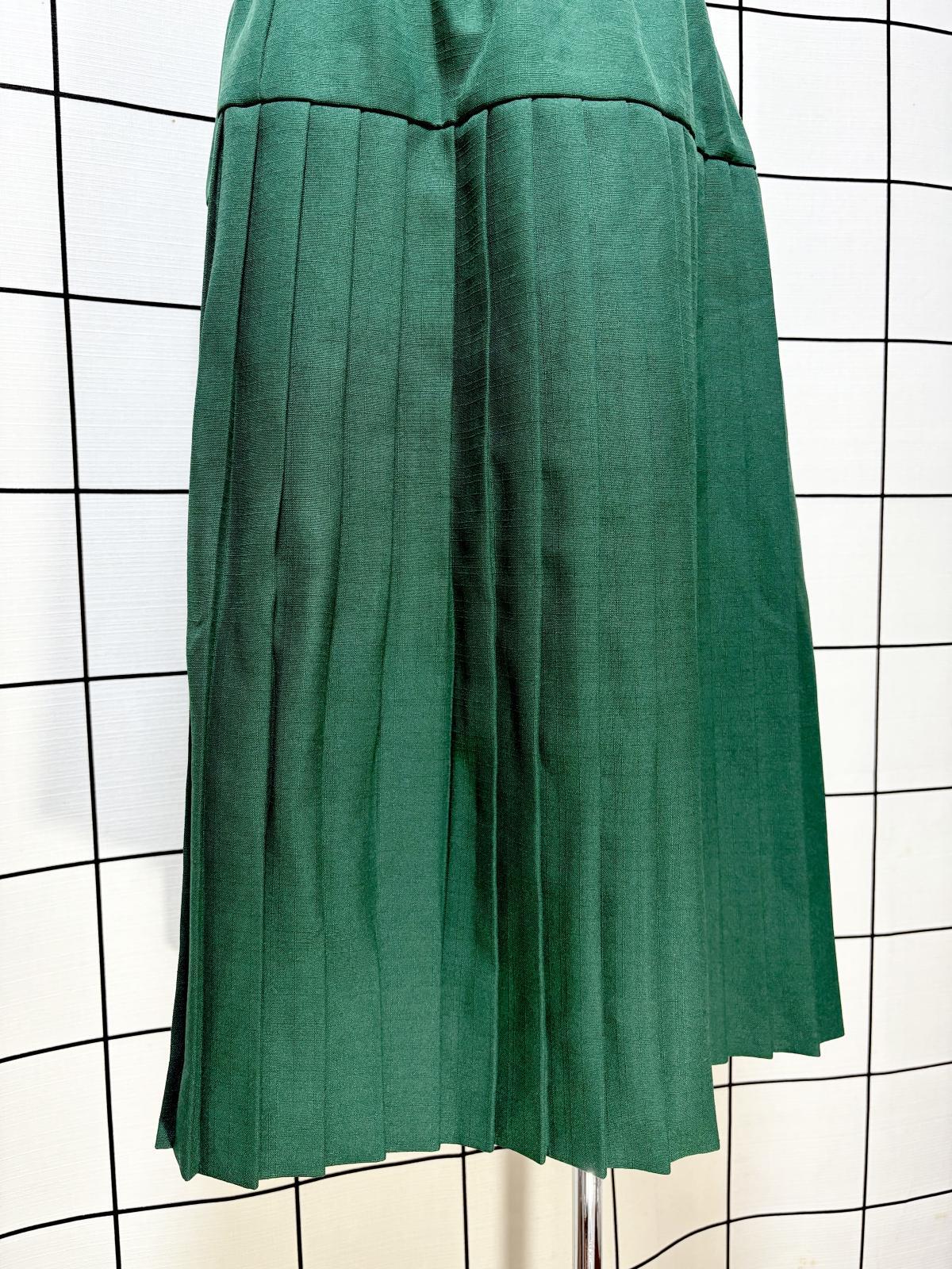 プリーツ グリーン ウエストゴム レトロ USA古着 ヴィンテージスカート [M11310]