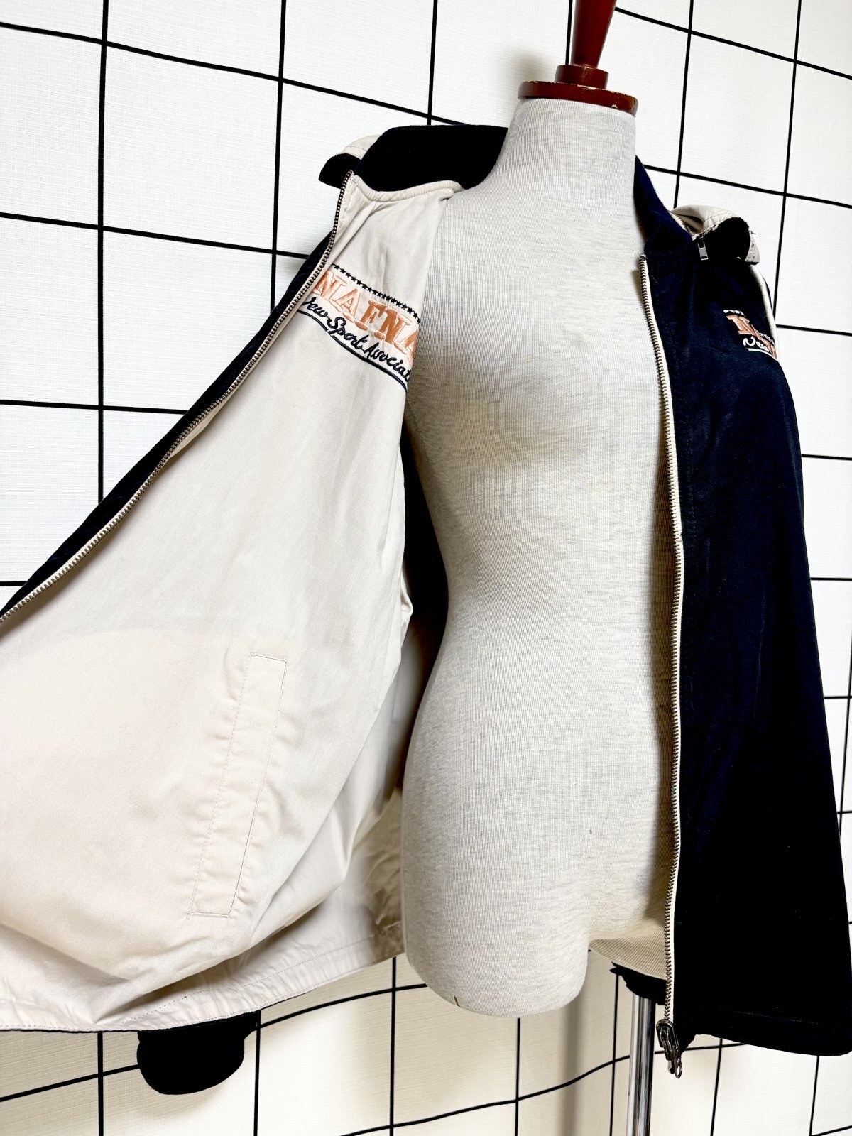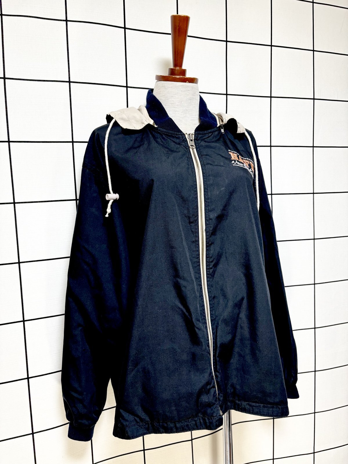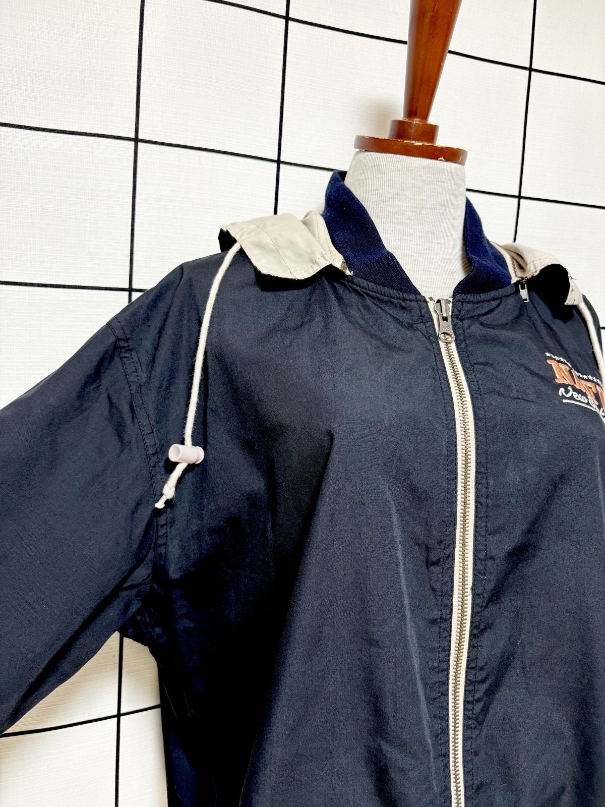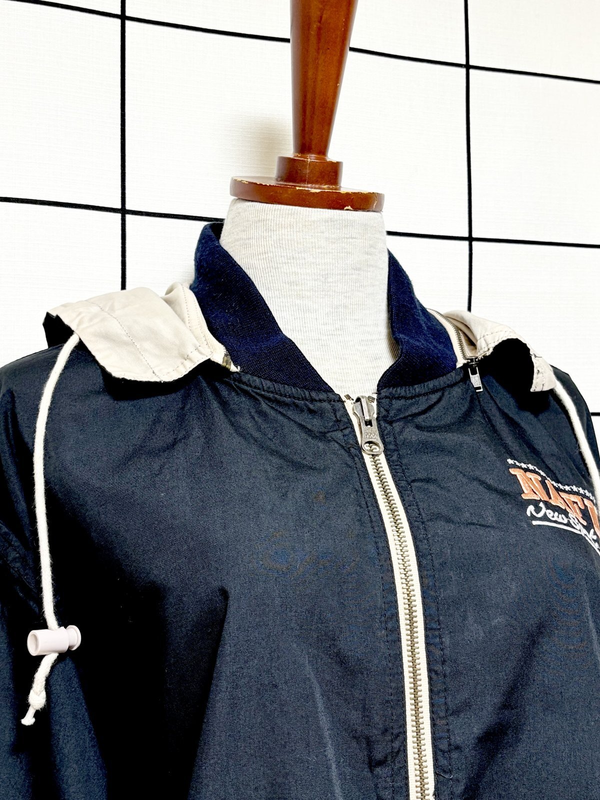- > リバーシブルデザイン 刺繡 フーディー ジップアップ USA古着 ジャンパー ヴィンテージブルゾンンジャケット