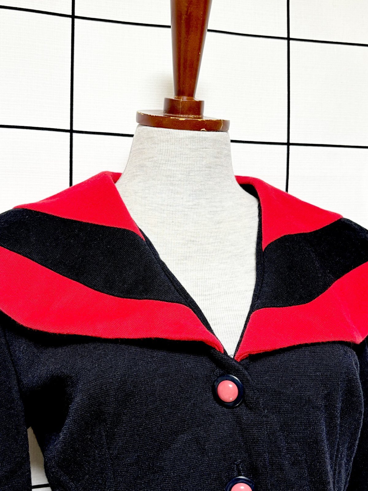 ビッグカラー ブラック レッド レトロ USA古着 ヴィンテージジャケット [M11316]