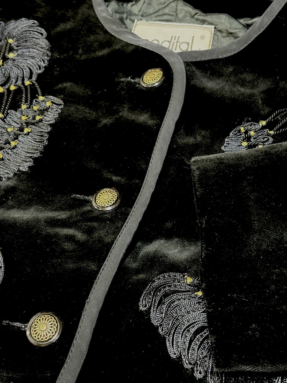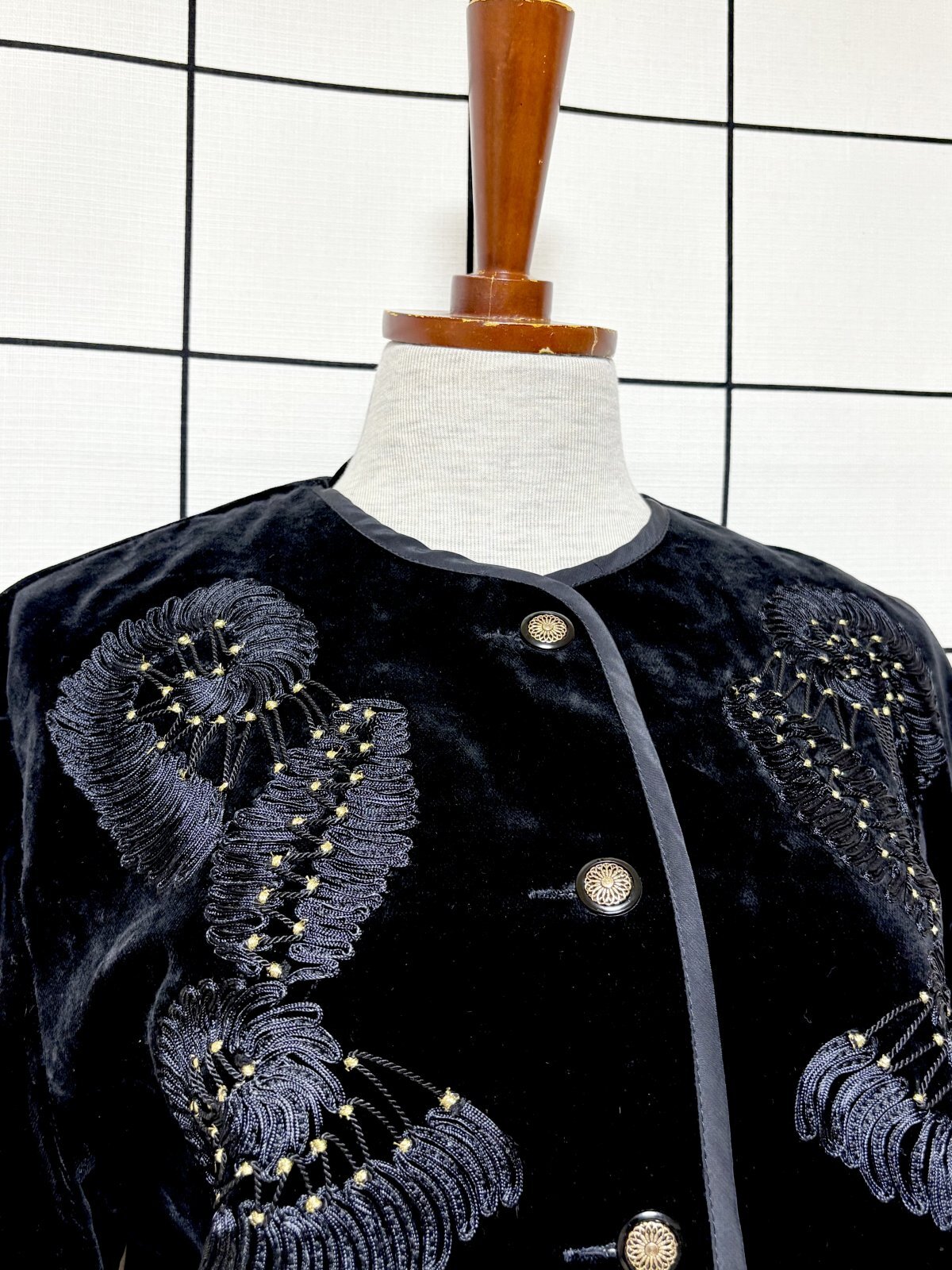 ベロア ブレード ブラック 高級感 ノーカラー レトロ ヨーロッパ古着 ヴィンテージジャケット