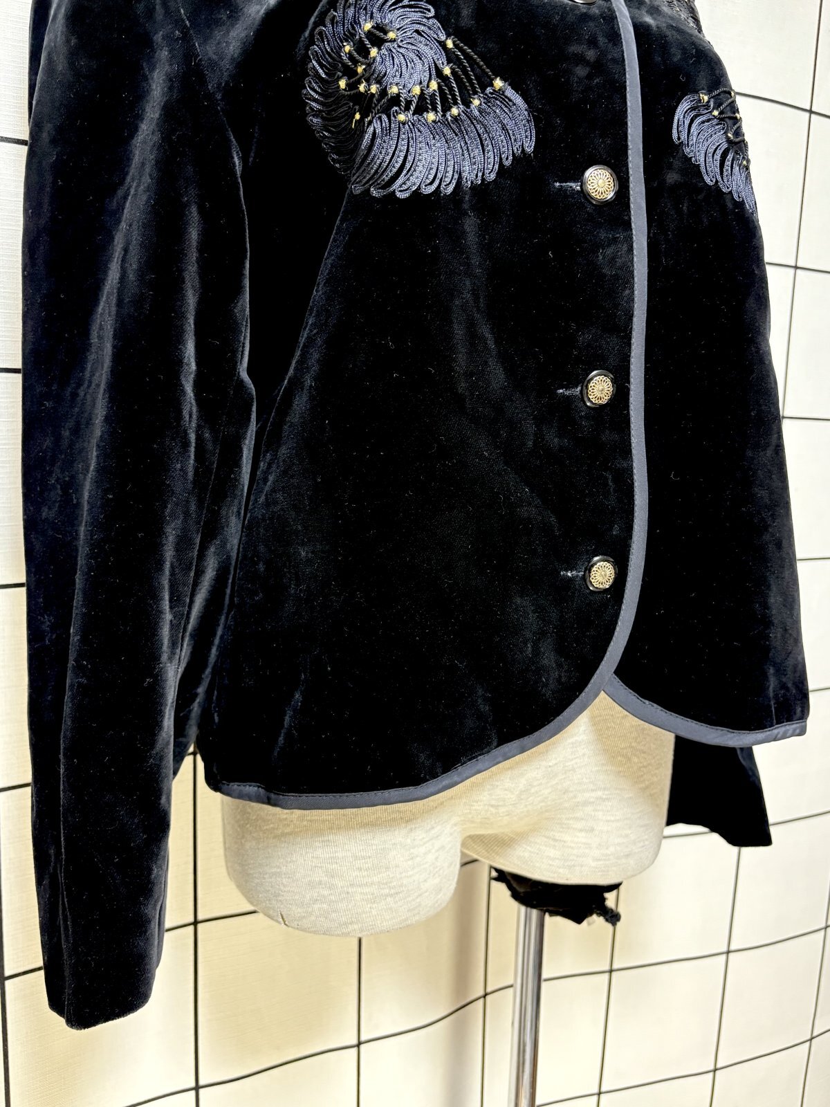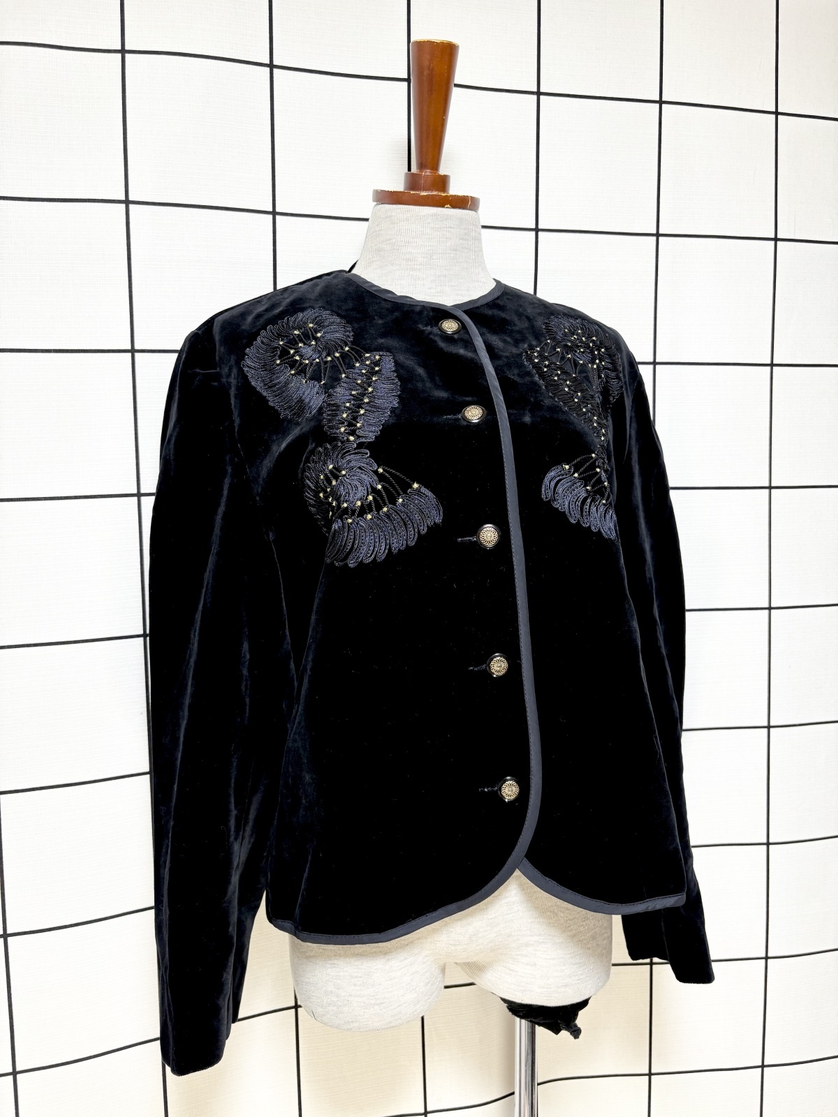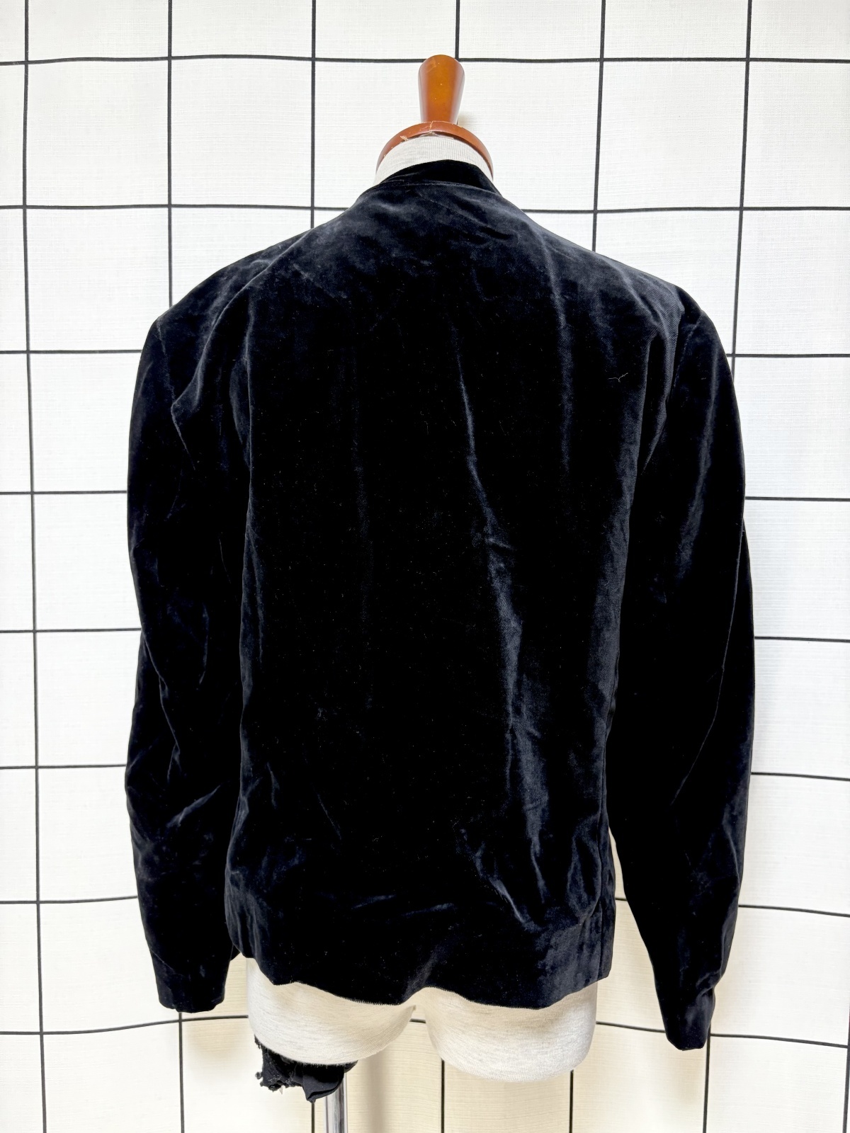ベロア ブレード ブラック 高級感 ノーカラー レトロ ヨーロッパ古着 ヴィンテージジャケット [M11319]