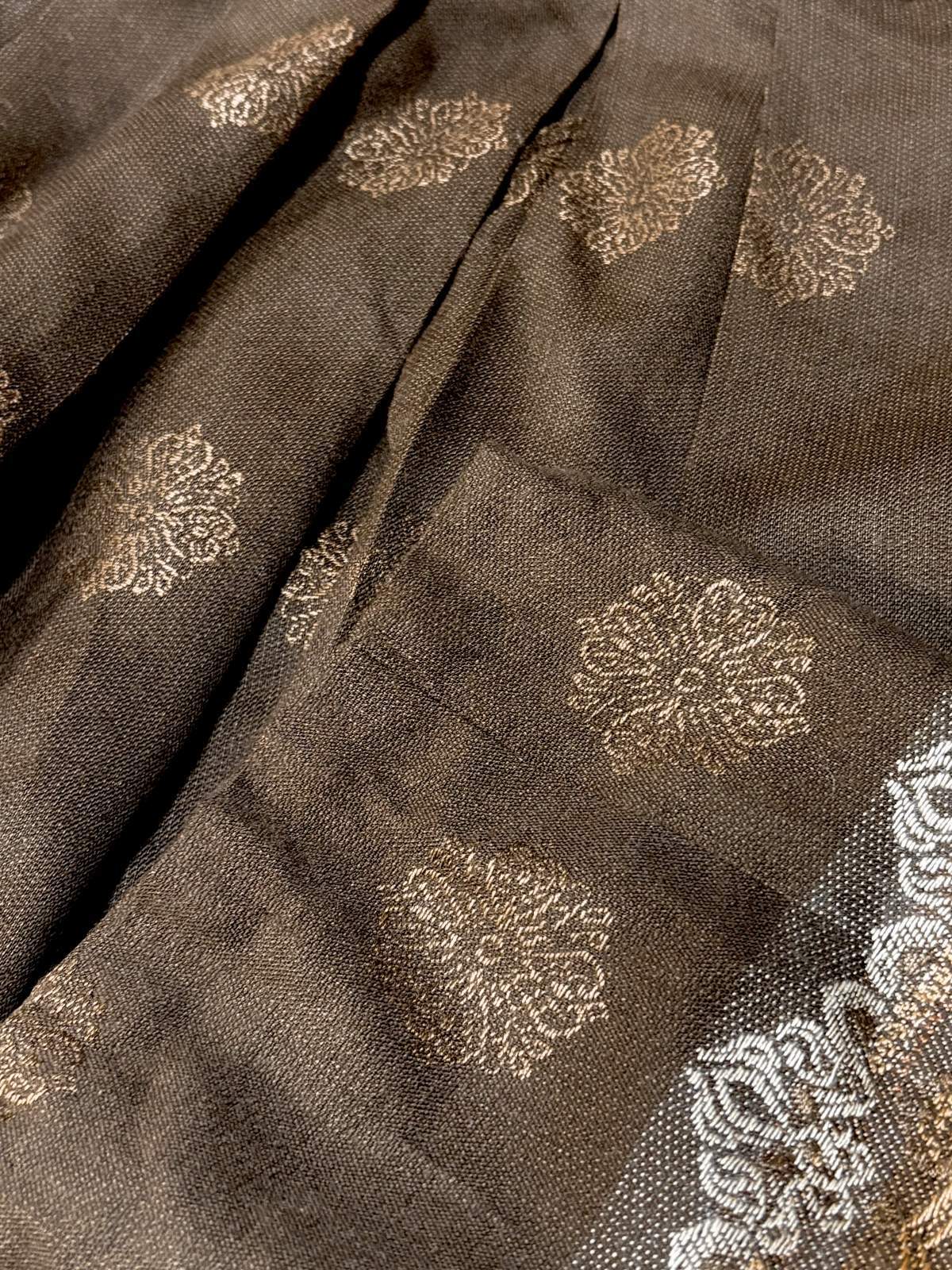 素材は少し薄手生地で、レーヨン・ポリエステル混紡生地と思われます。