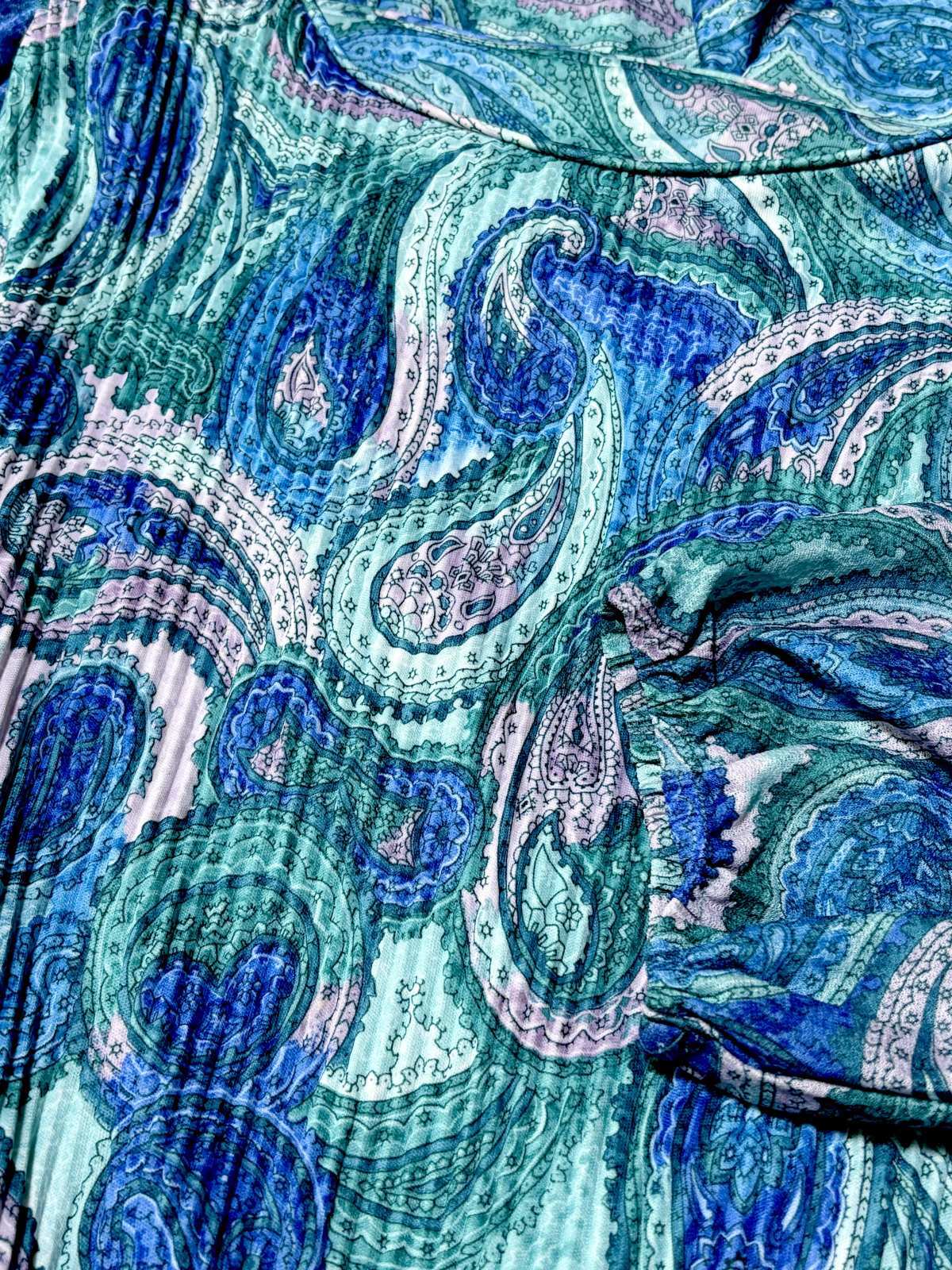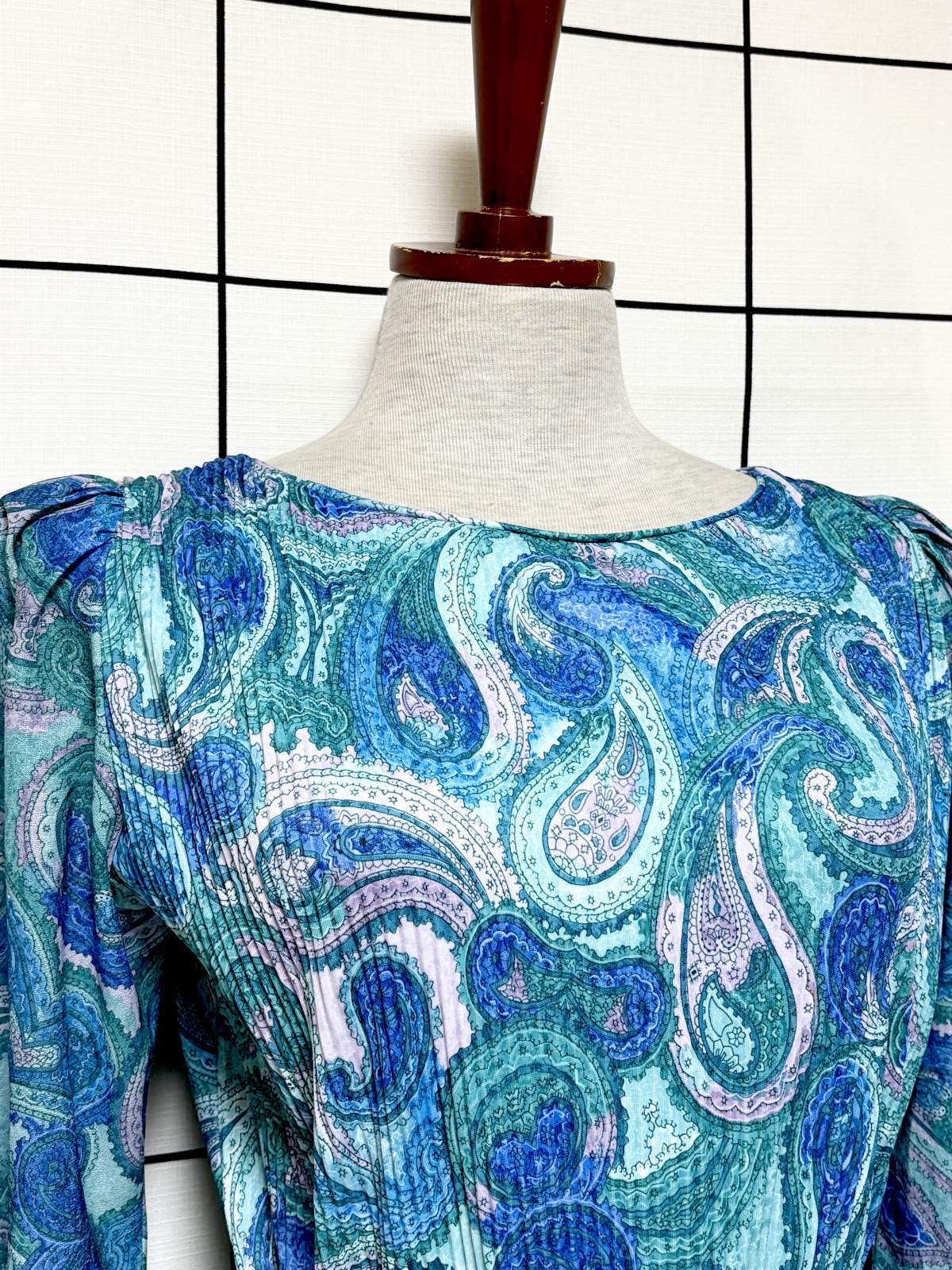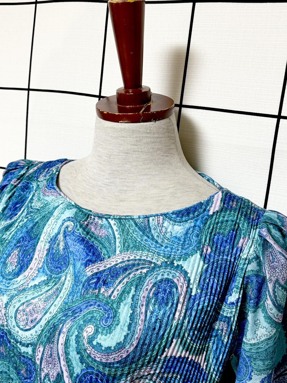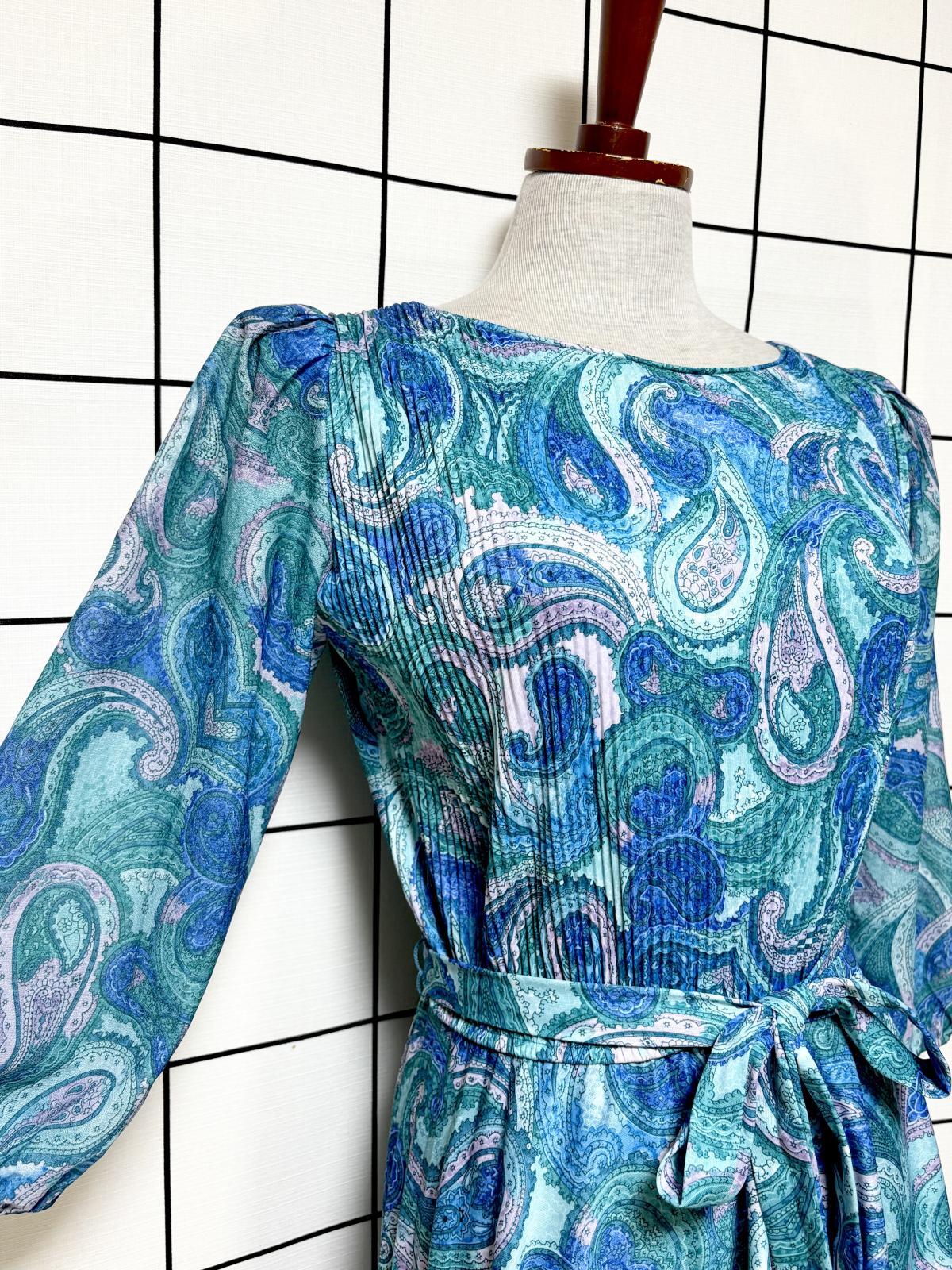 プリーツ切り替え ペイズリー リボン ウエストゴム レトロ USA古着 ヴィンテージワンピース [11347]