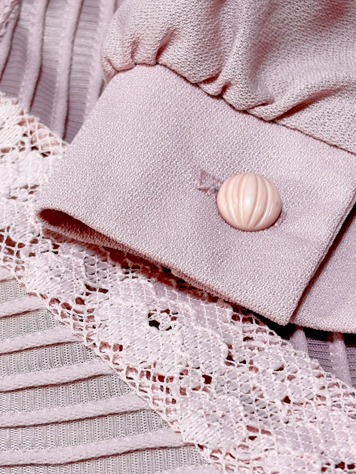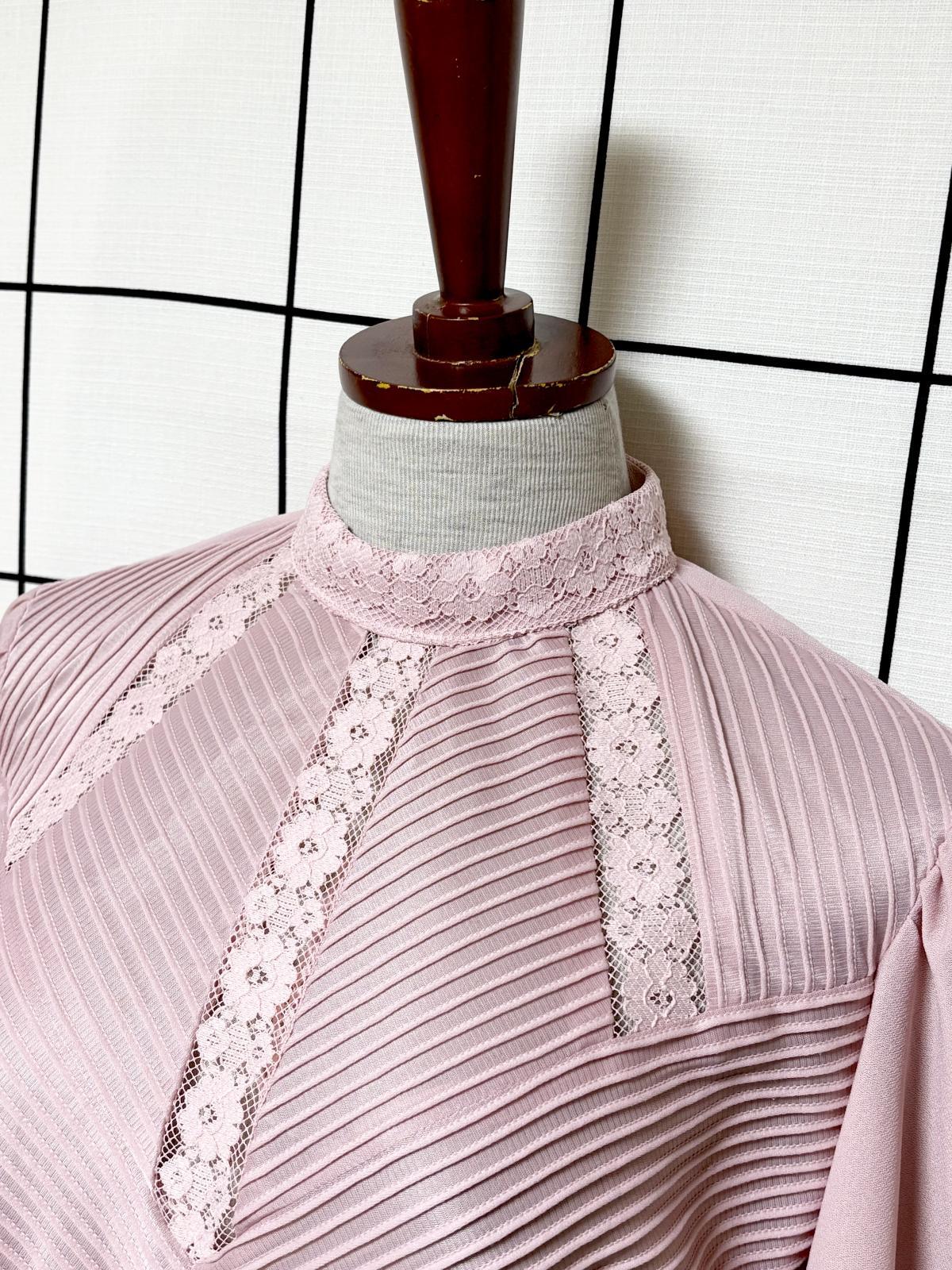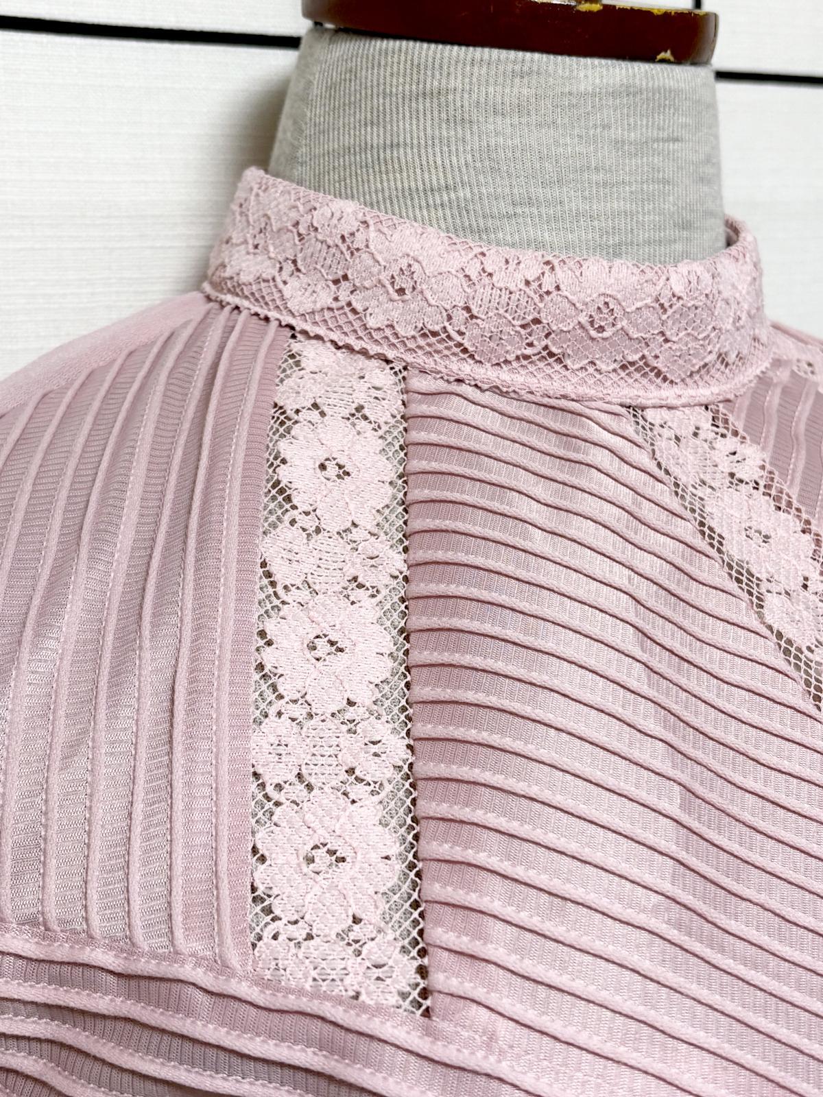 レース フロントタック ピンク UNIONMADE ウエストゴム レトロ USA古着 ヴィンテージドレス [M11358]