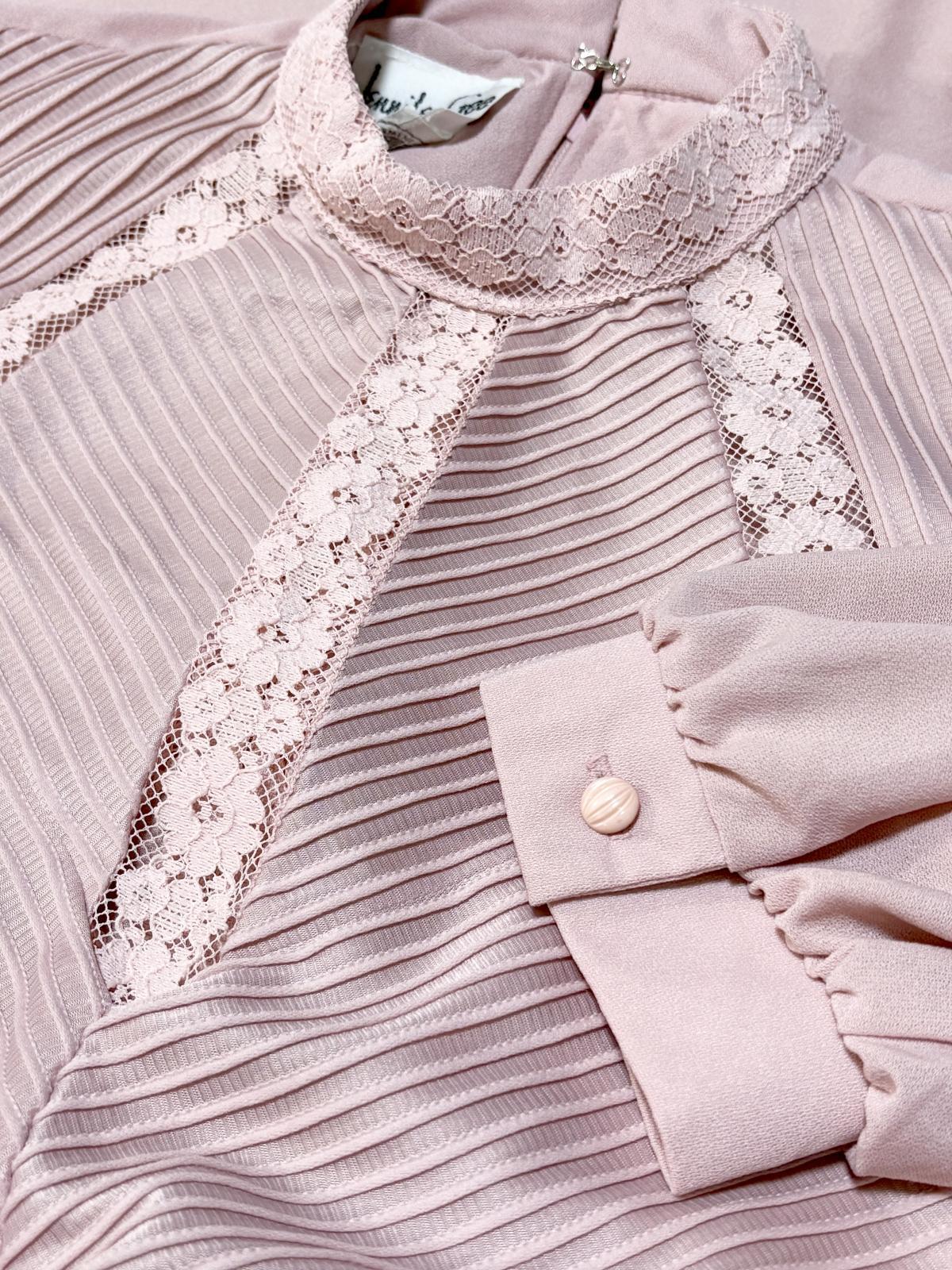 レース フロントタック ピンク UNIONMADE ウエストゴム レトロ USA古着 ヴィンテージドレス