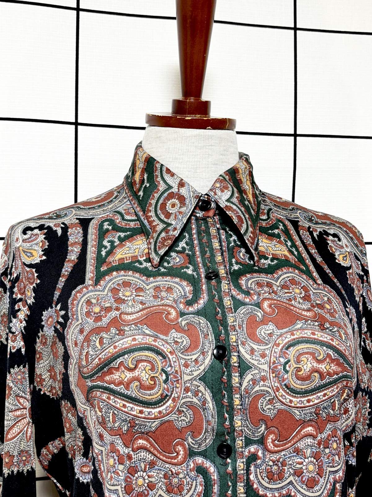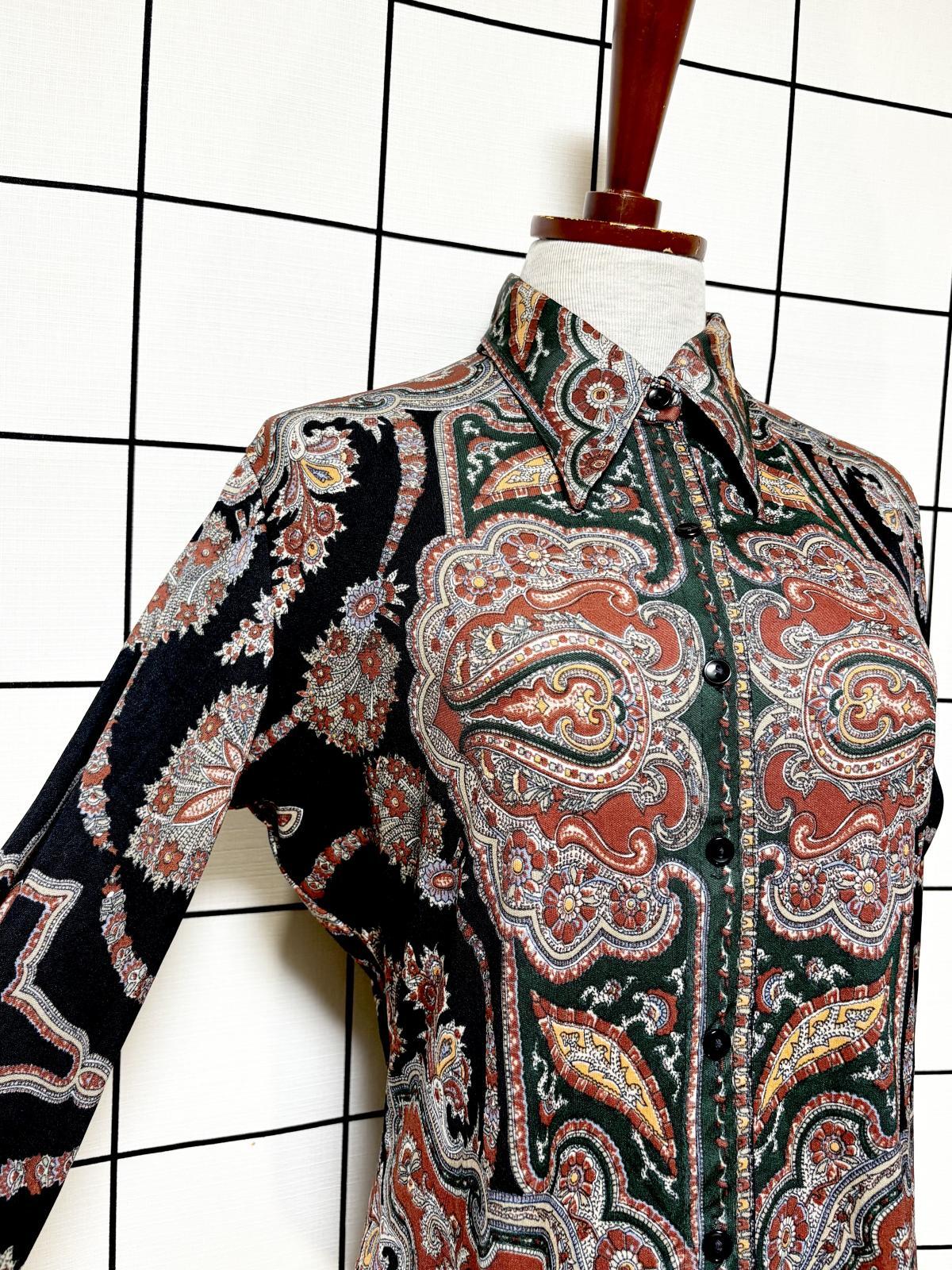 花柄モチーフ ブラック レトロ USA古着 シャツ ヴィンテージブラウス [11361]