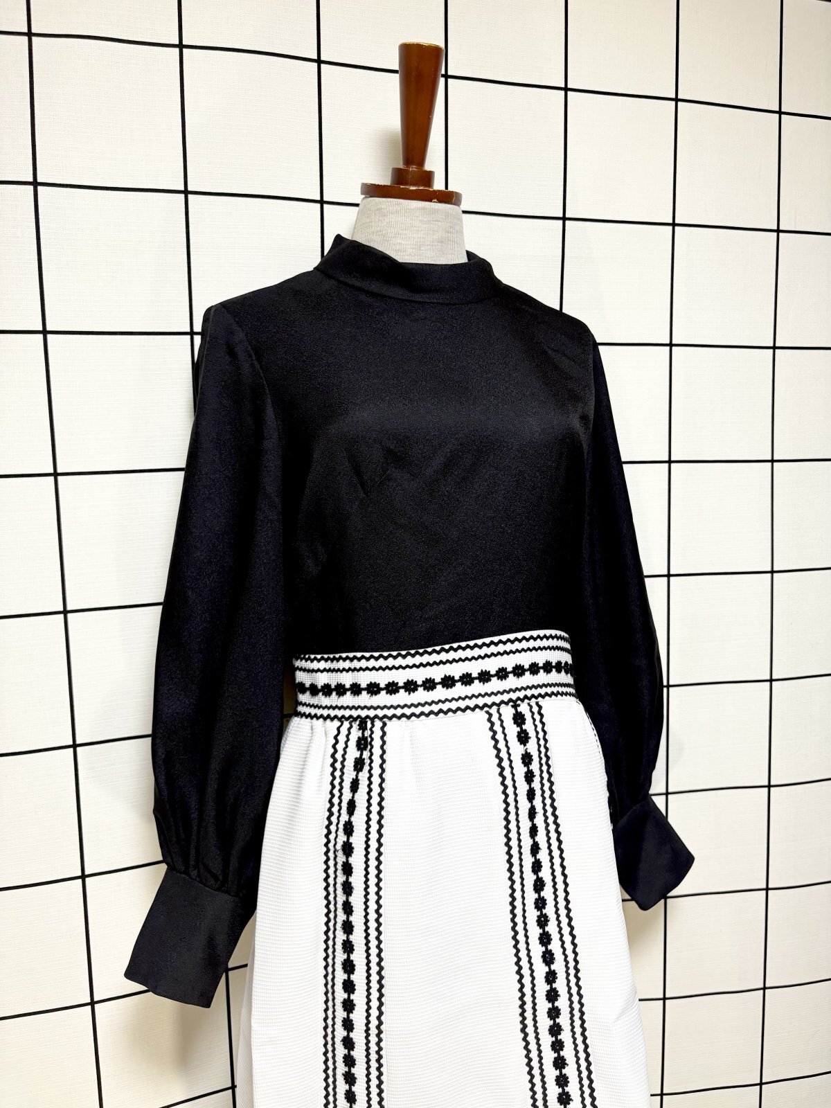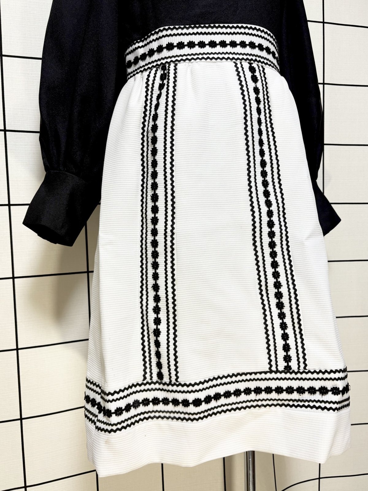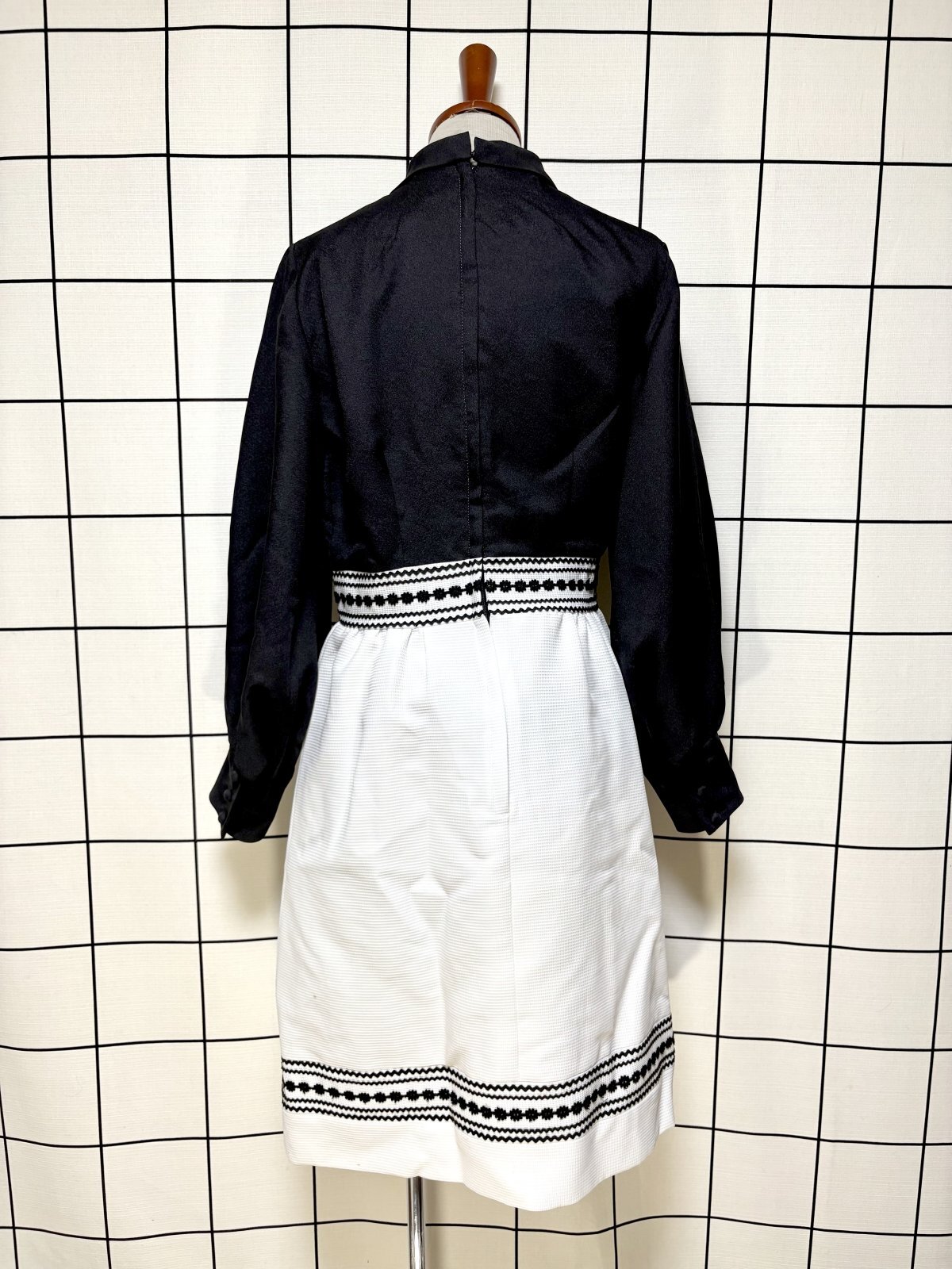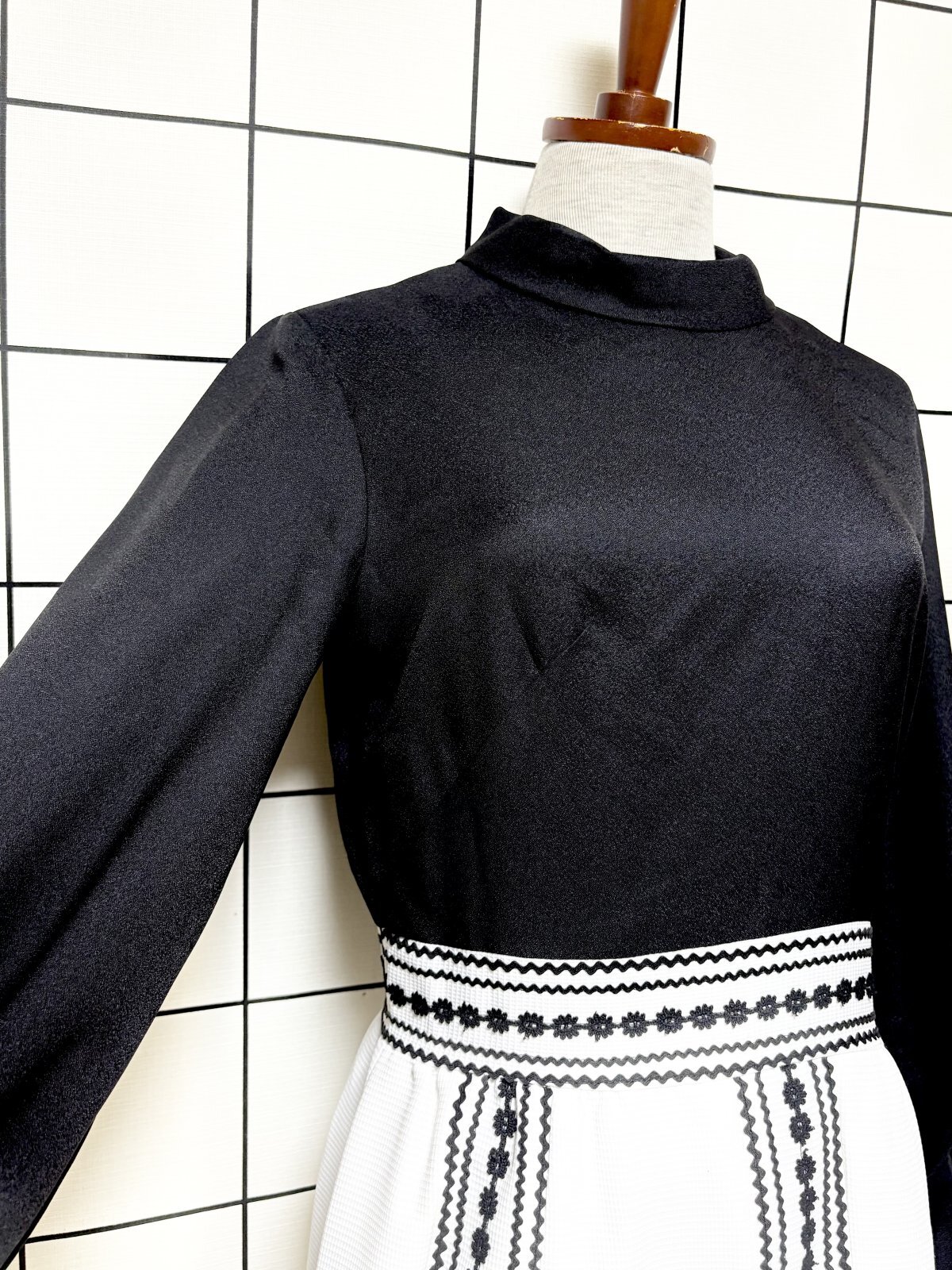 モノクロ タートルネック レトロ USA古着 ヴィンテージワンピース [11366]