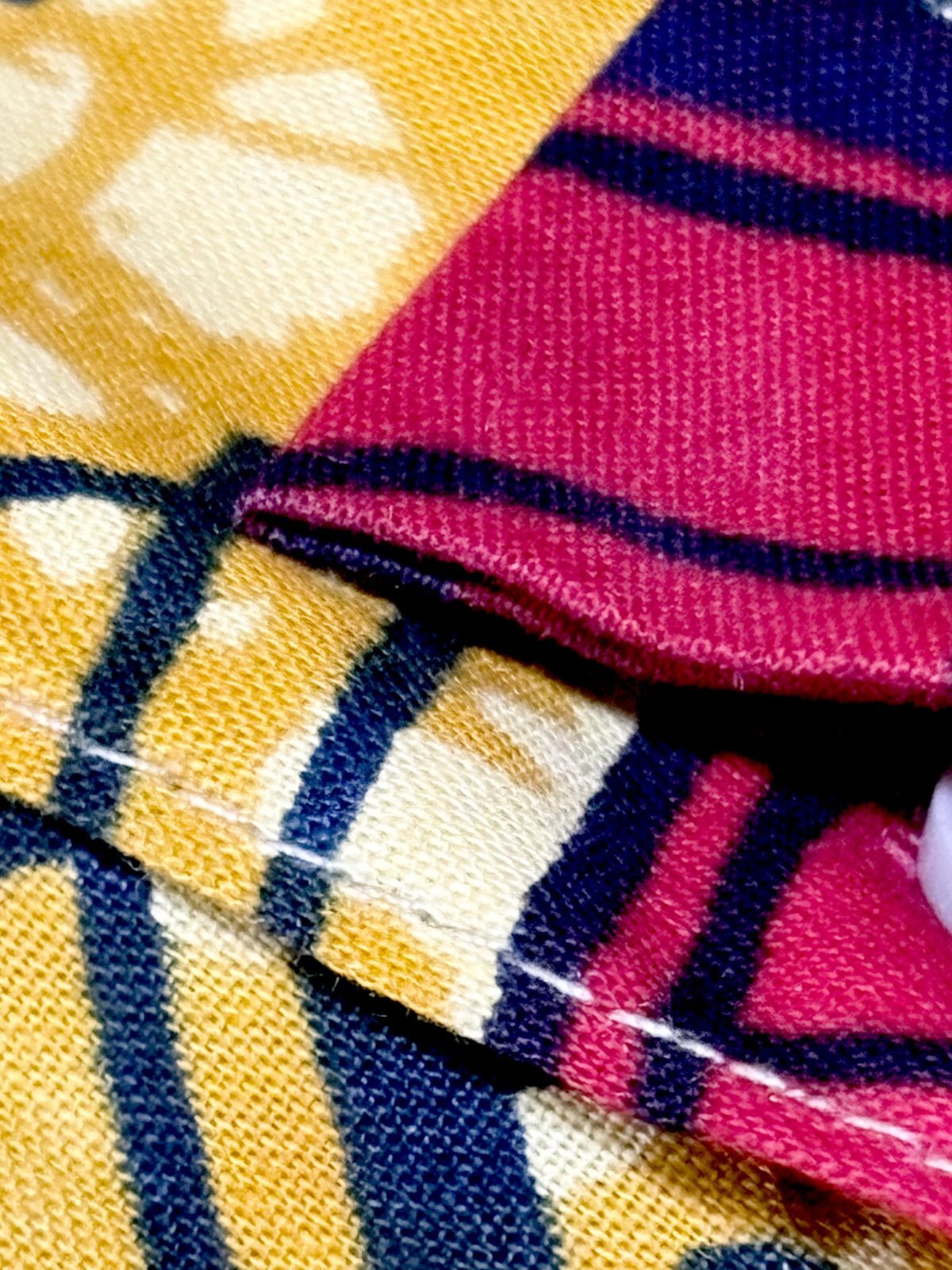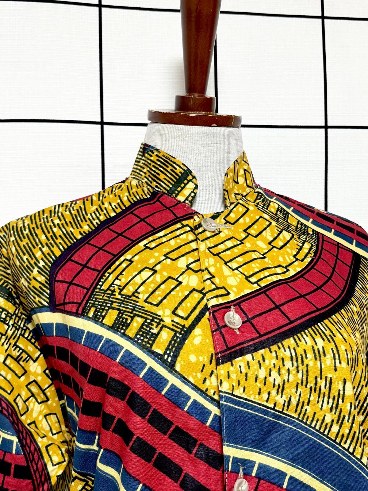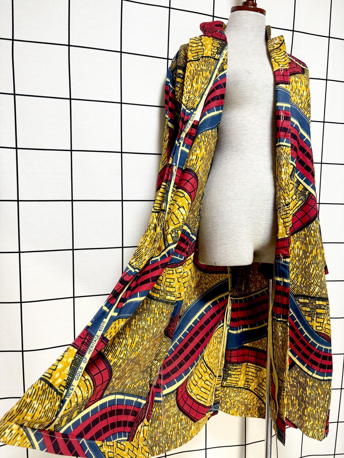 アフリカンバティック ドレス スタンドカラー 前開き 古着 エスニック レトロ ヴィンテージワンピース [M11367]