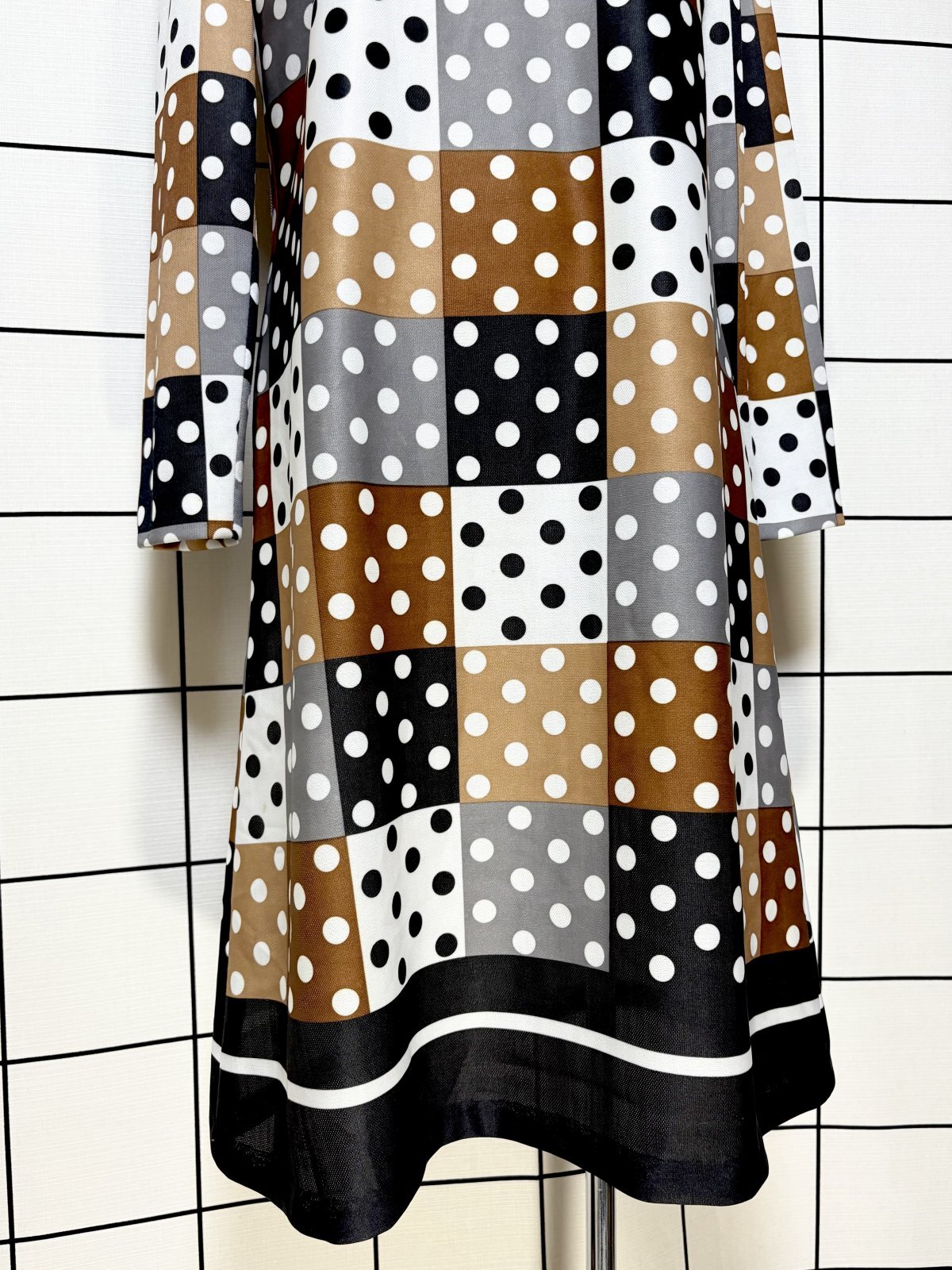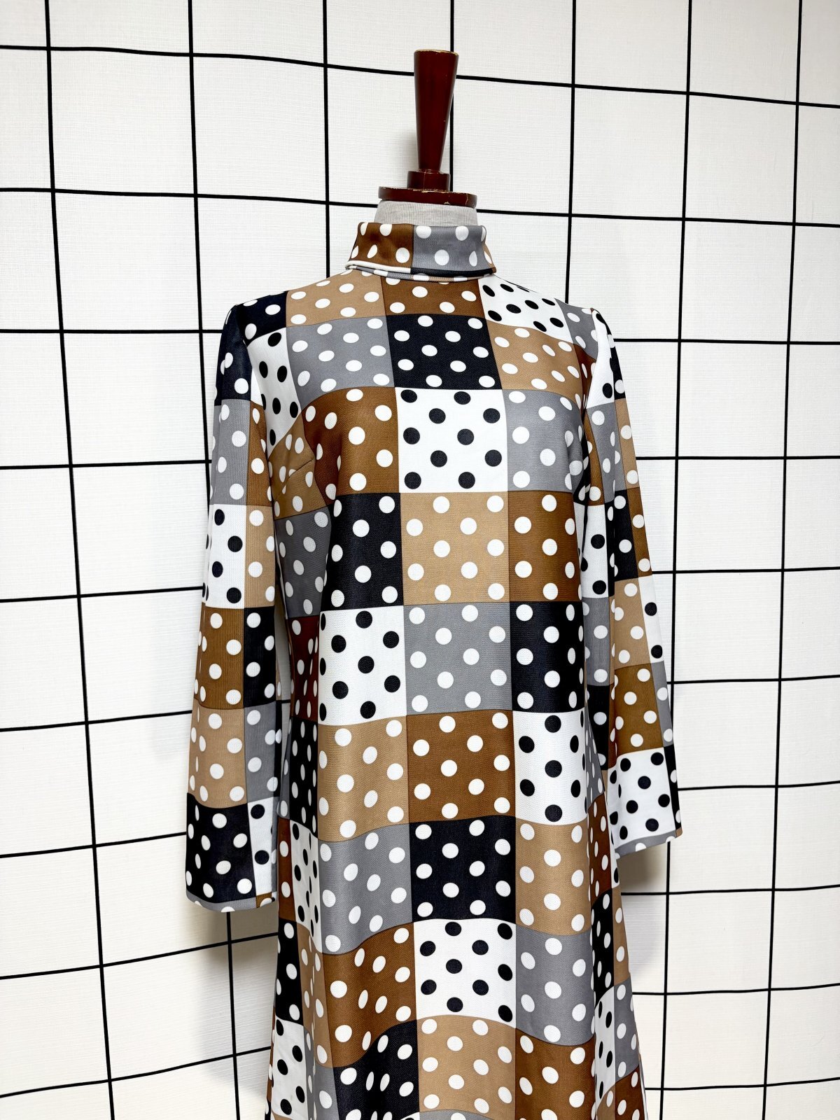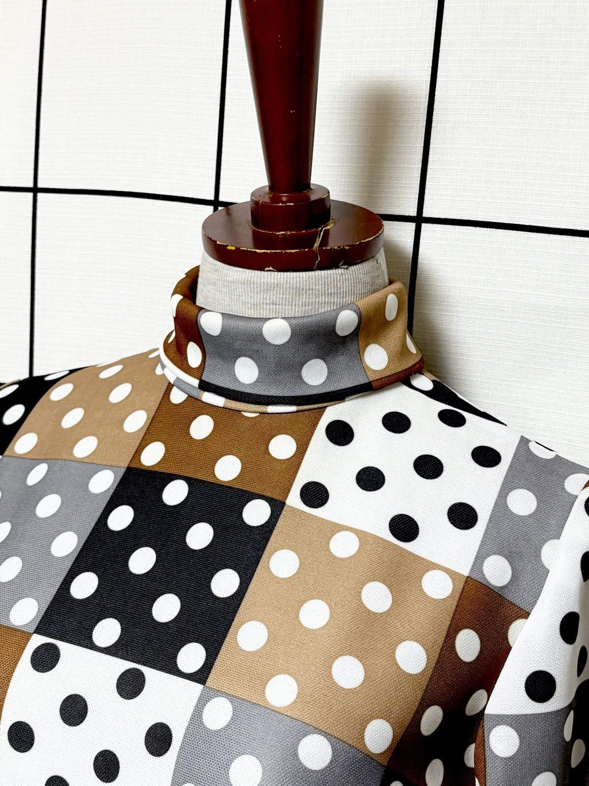 ドット チェック タートルネック レトロ 長袖 USA古着 ヴィンテージワンピース [11368]