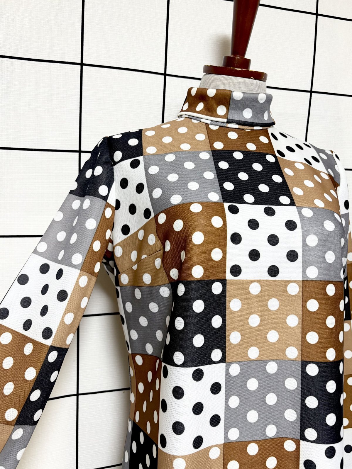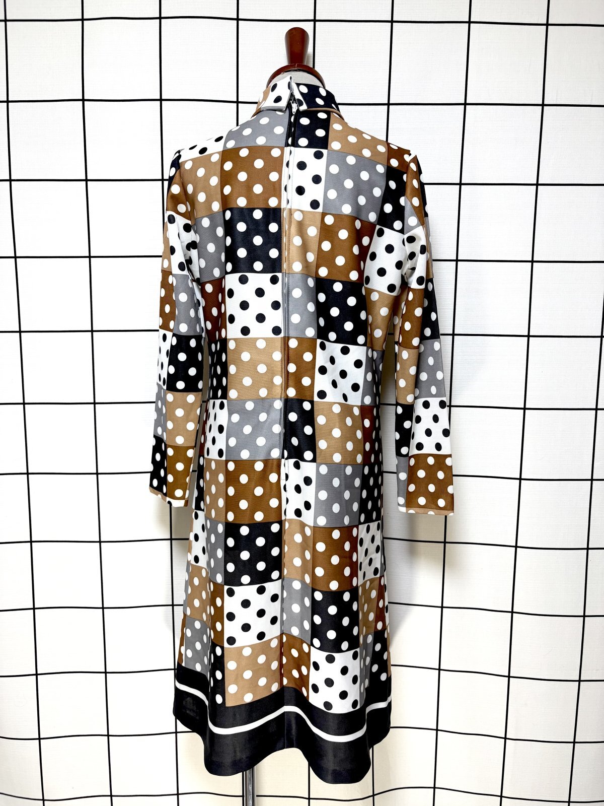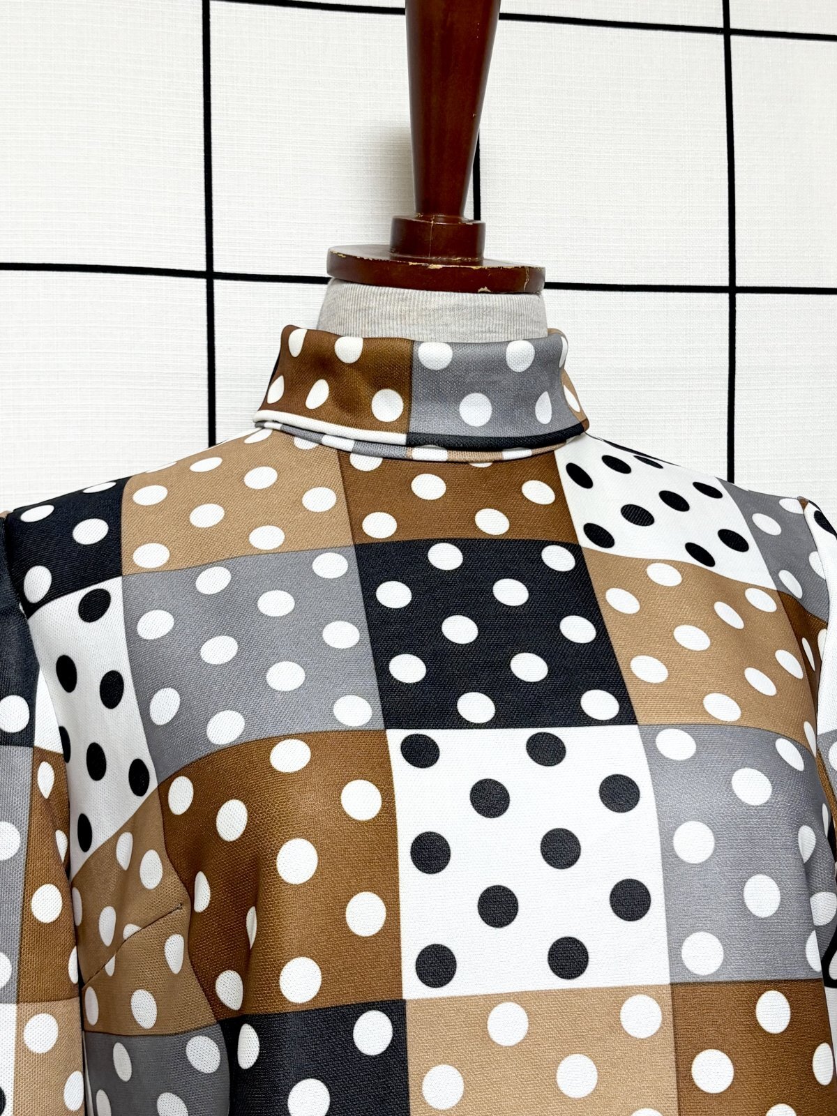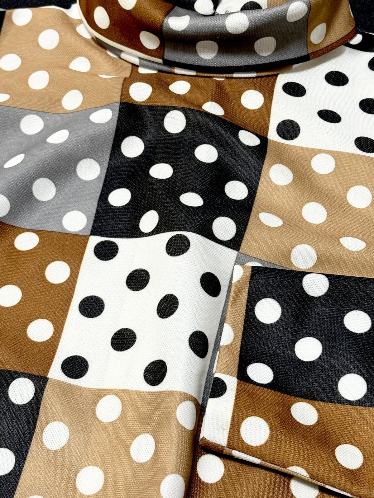 ドット チェック タートルネック レトロ 長袖 USA古着 ヴィンテージワンピース [11368]