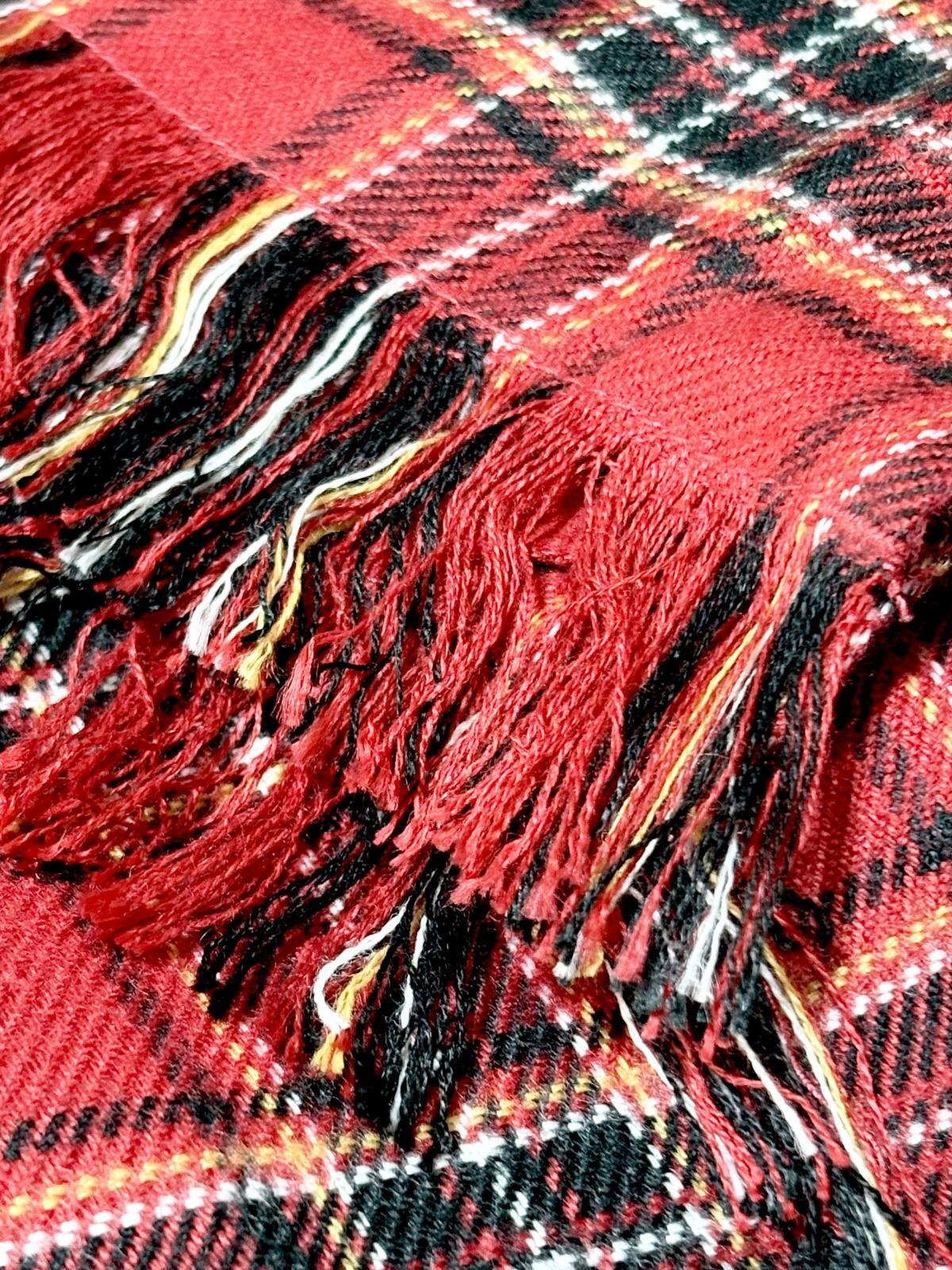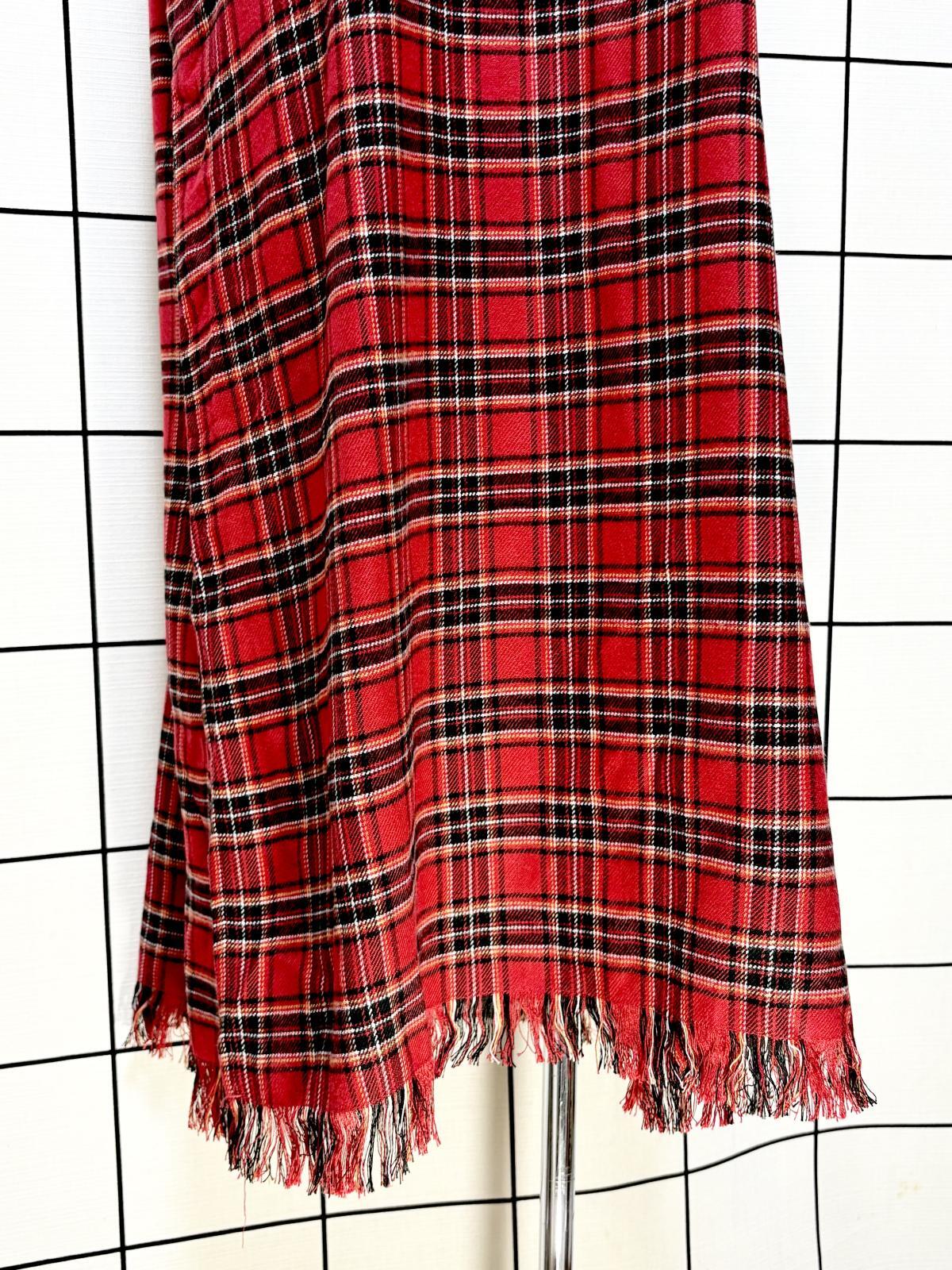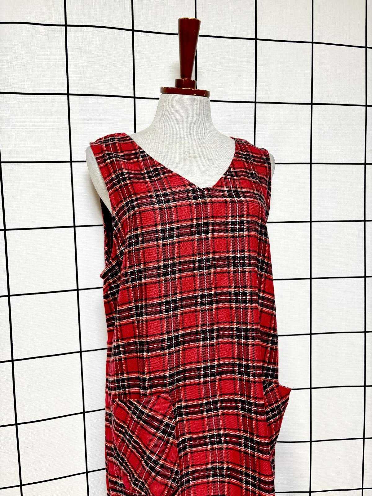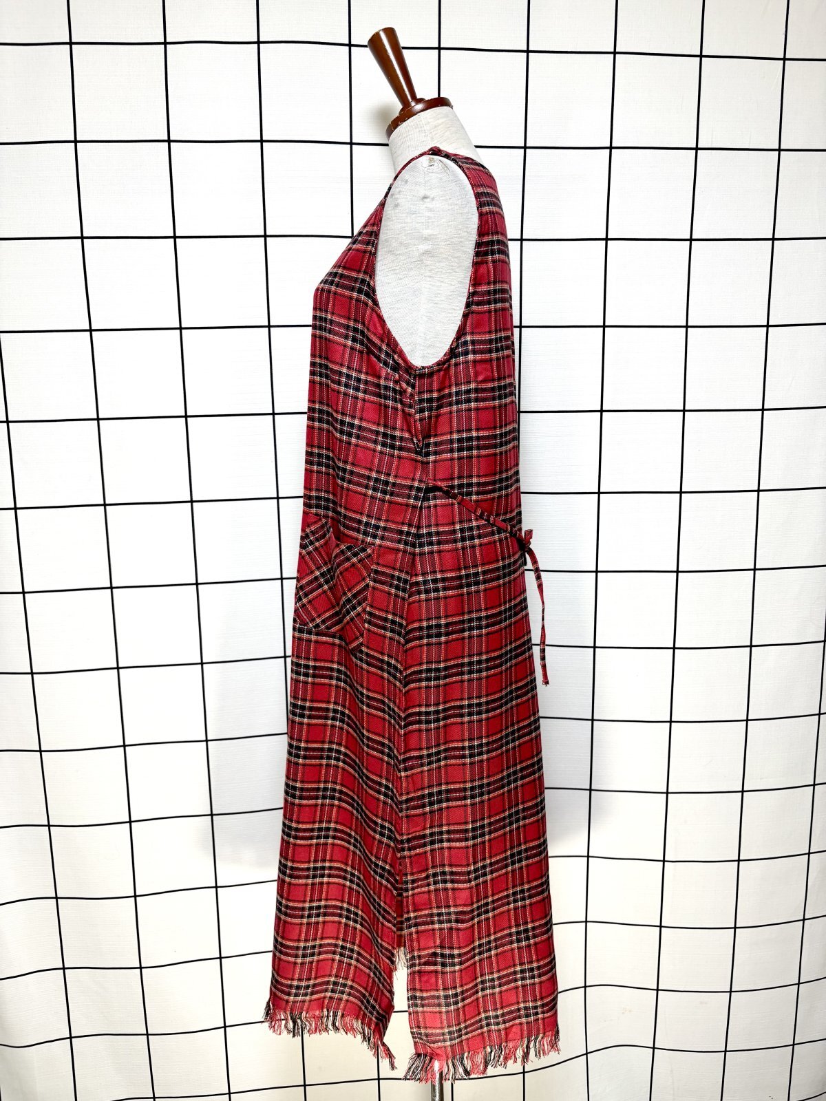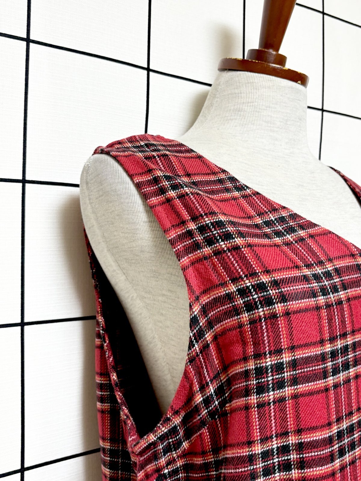 トラッドコーデにもおすすめ チェック柄 フリンジ ノースリーブ レトロ USA古着 ヴィンテージワンピース [11370]