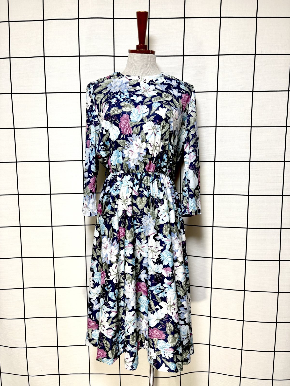 花柄 ウエストゴム レトロ USA古着 ヴィンテージワンピース [11372]