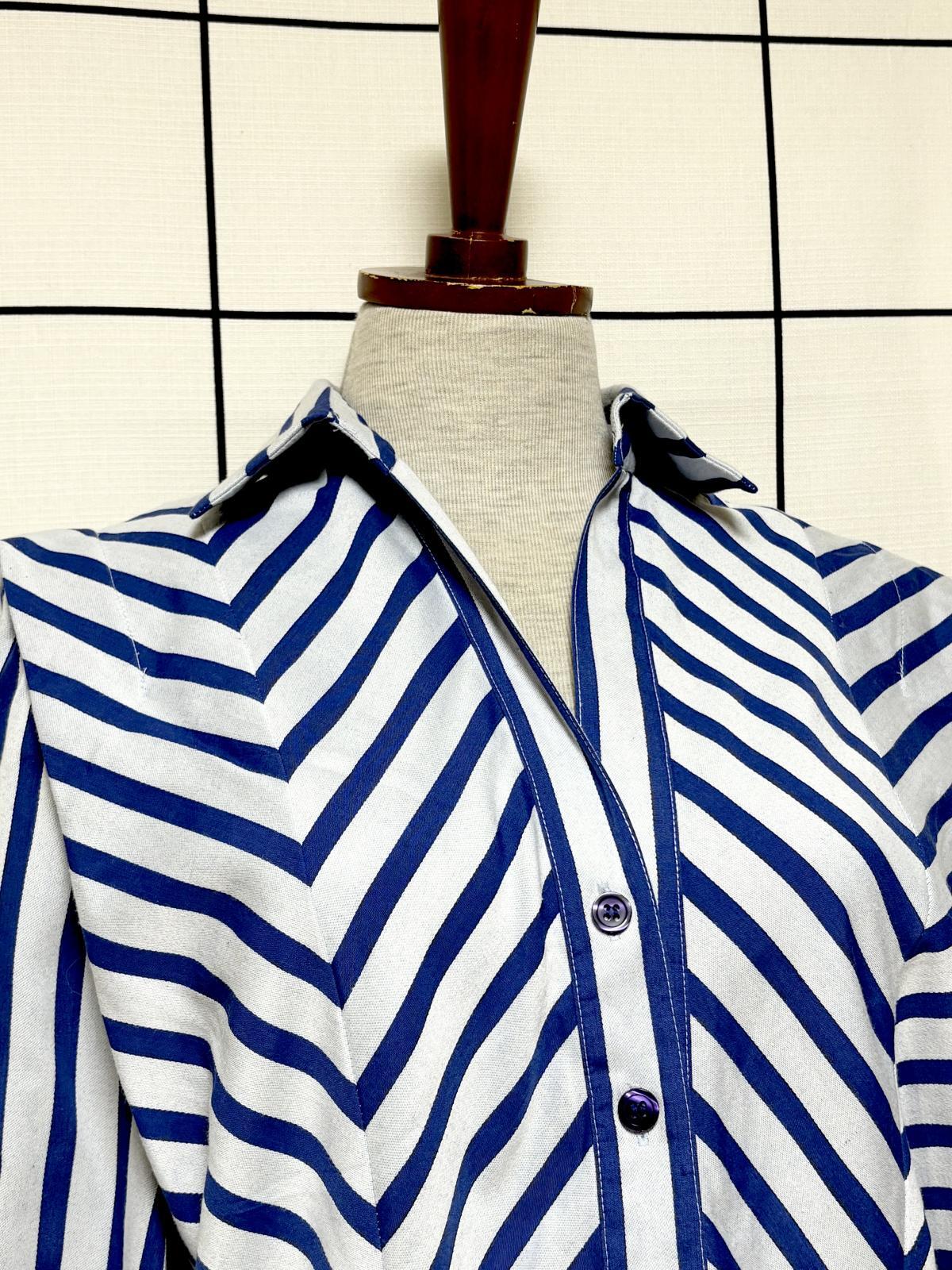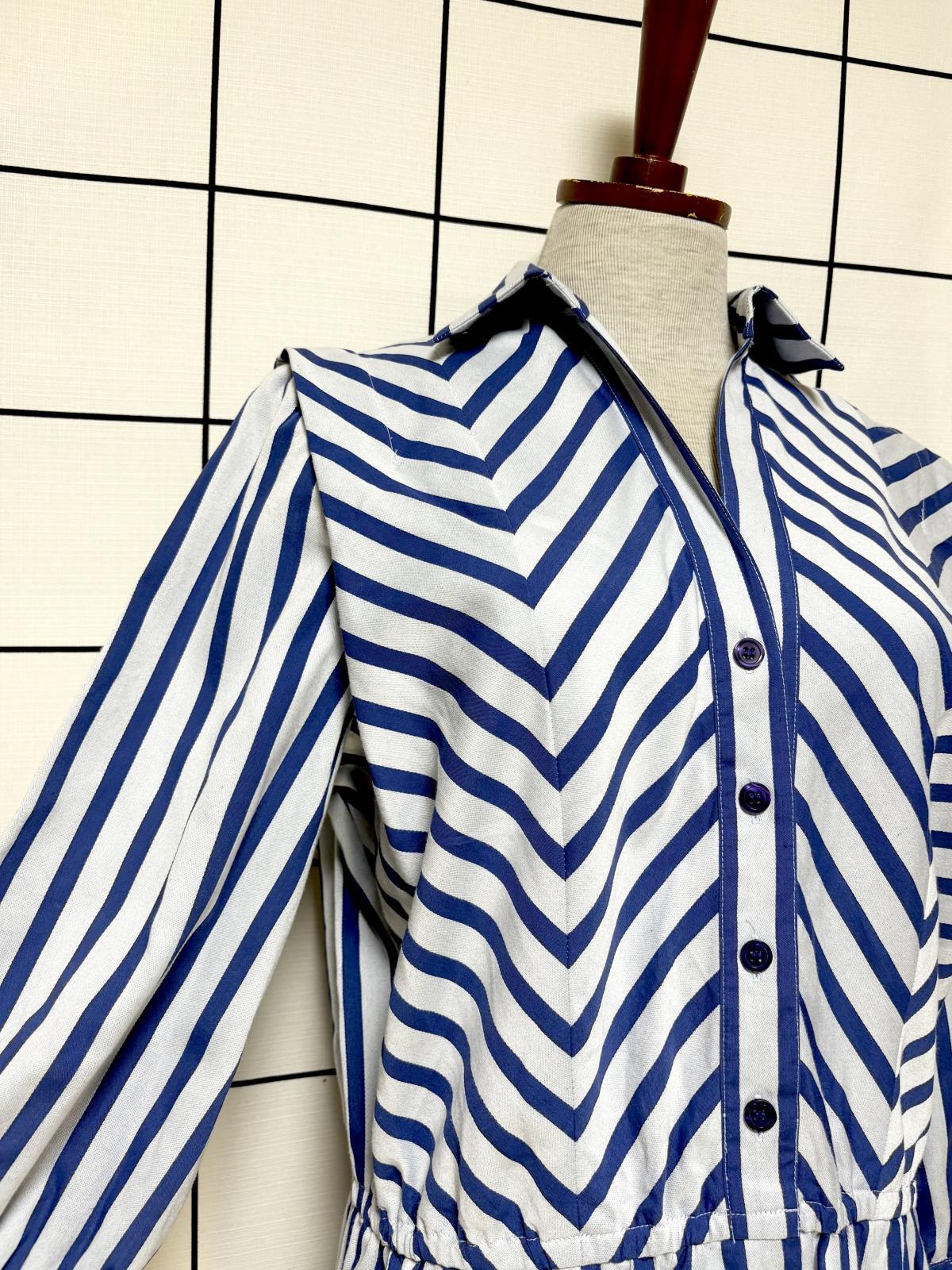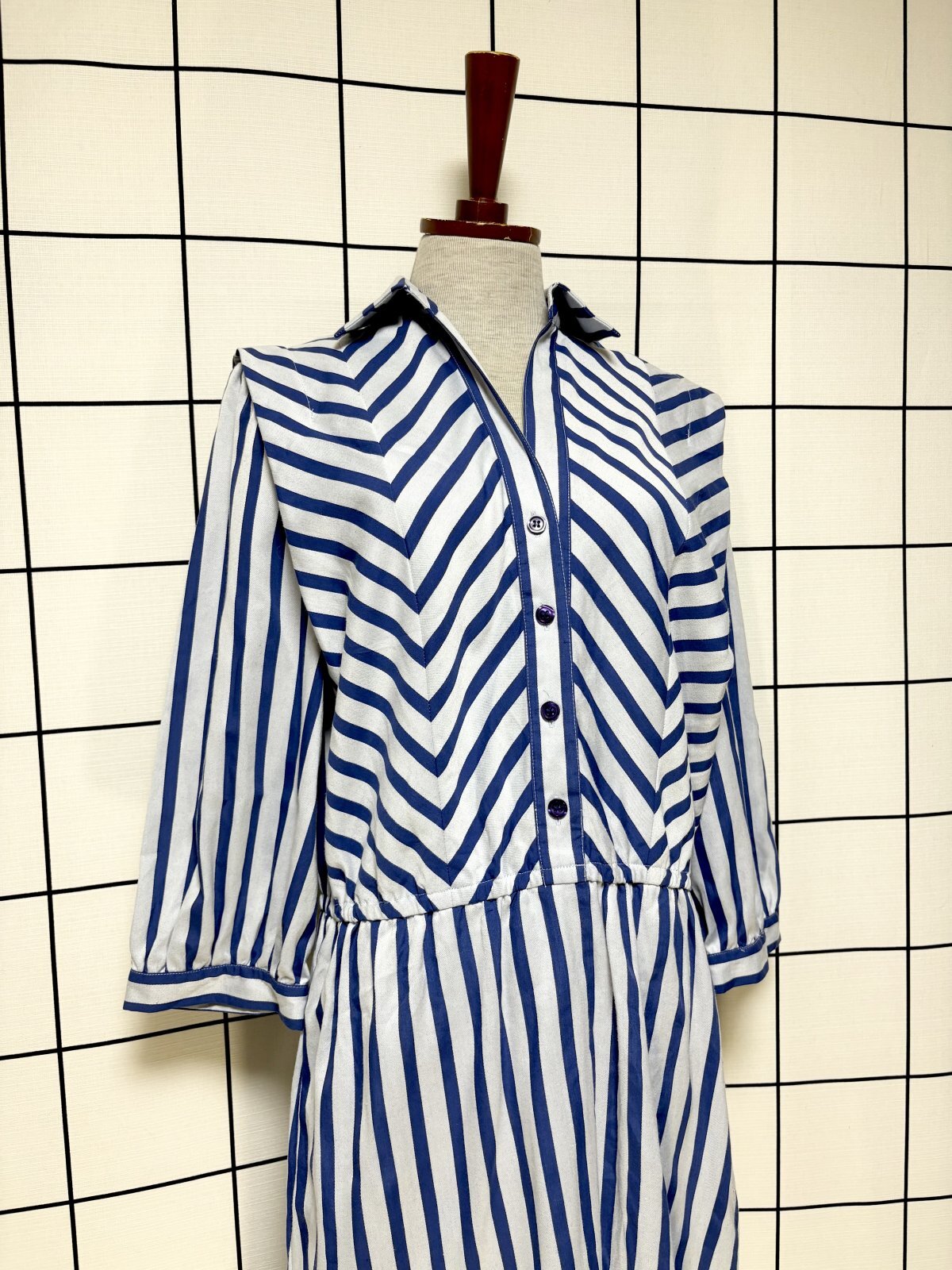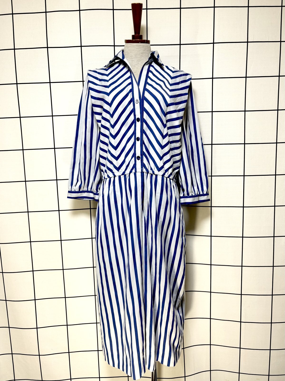 ストライプ ウエストゴム レトロ USA古着 ヴィンテージワンピース [11374]
