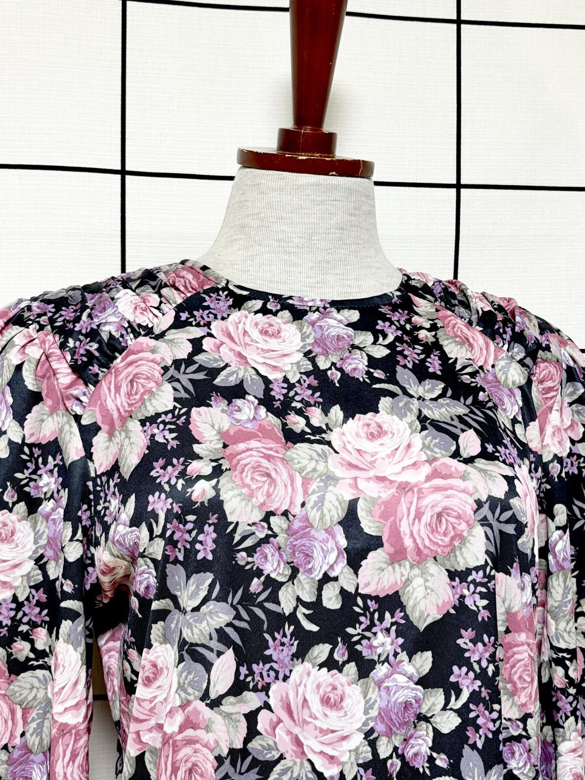 花柄 レトロ 長袖 USA古着 ヴィンテージワンピース [M11384]
