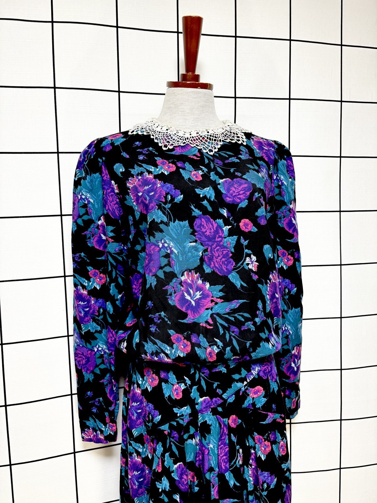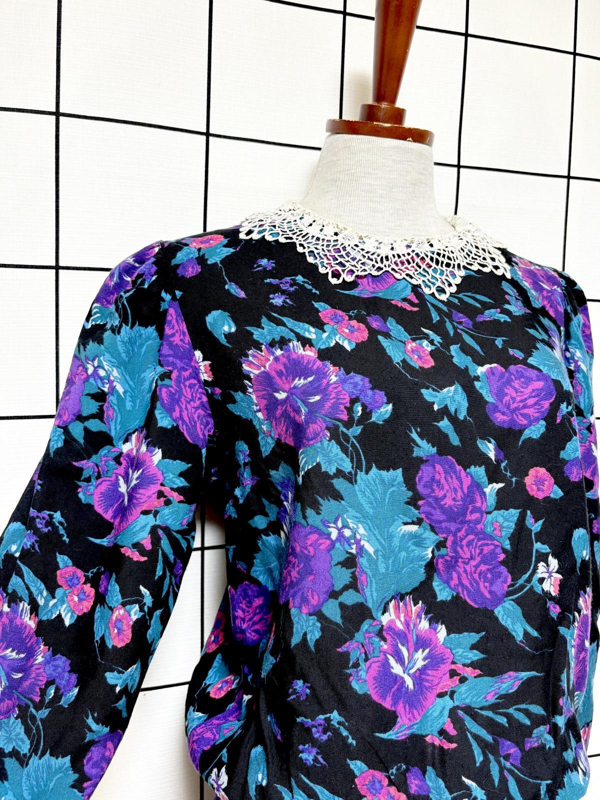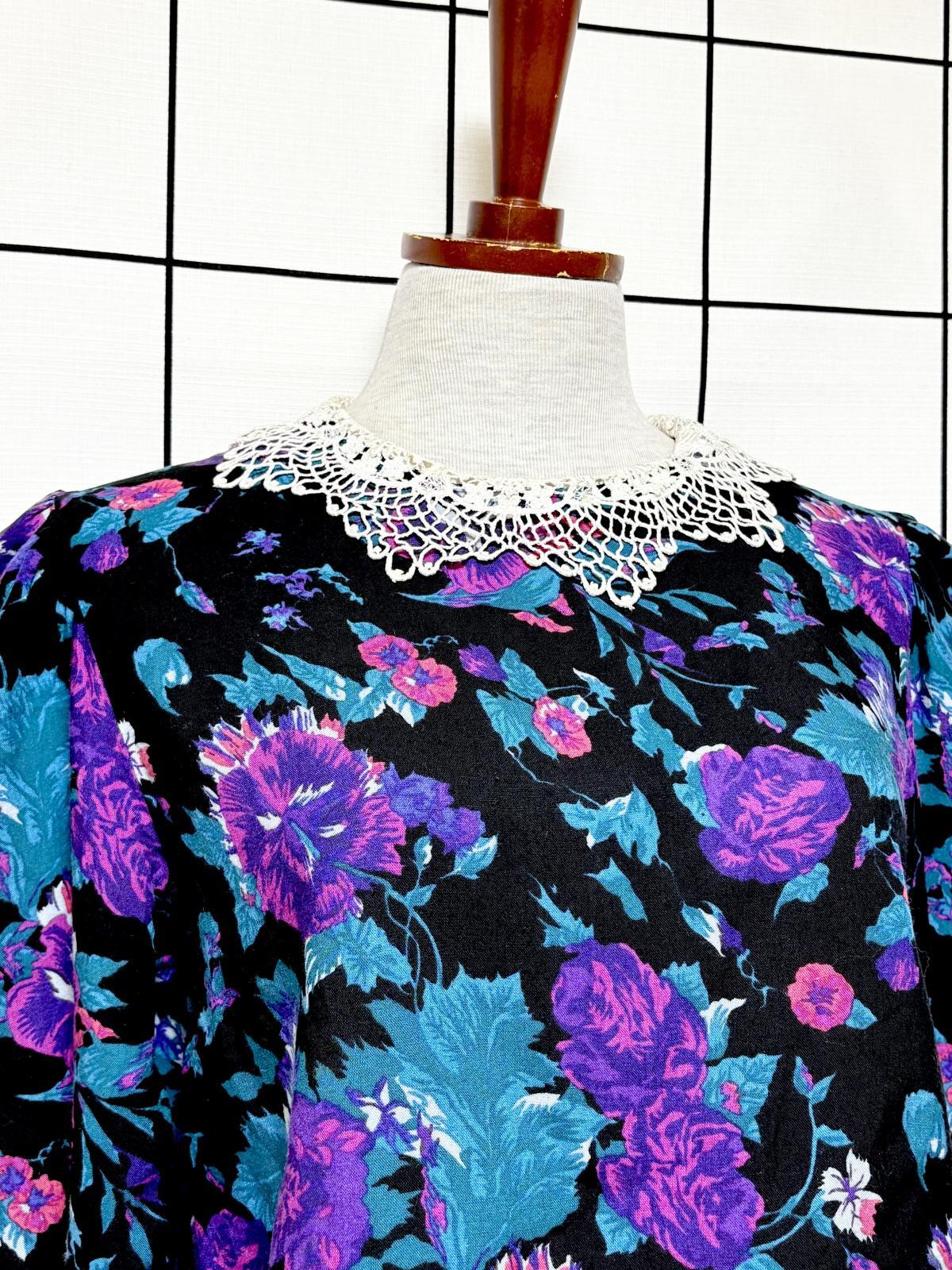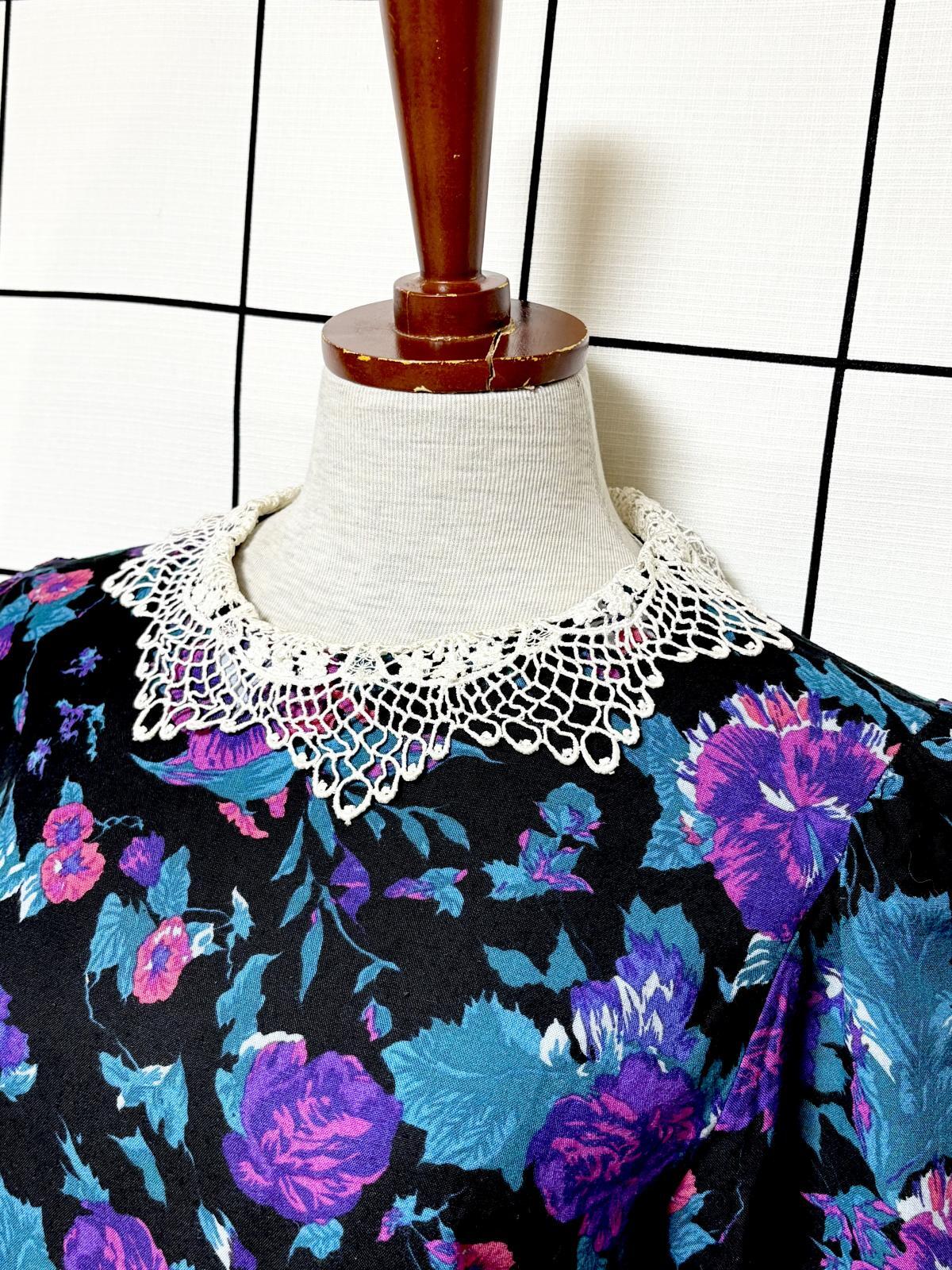 花柄 レース襟 レトロ USA古着 ヴィンテージワンピース