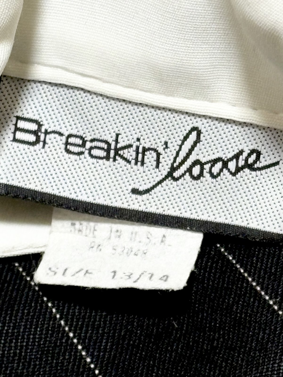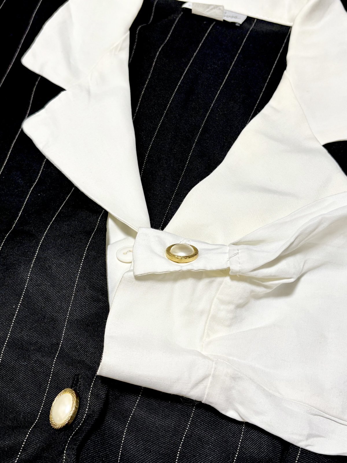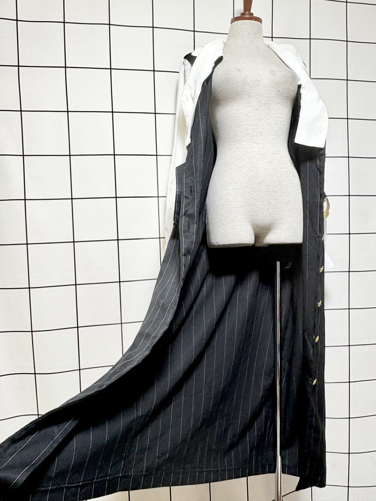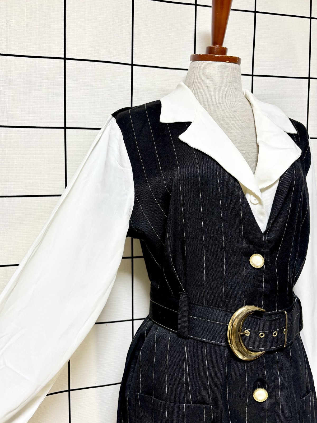 ベルトセット ストライプ 前開き モノクロ レトロ USA古着 ヴィンテージワンピース [M11439]