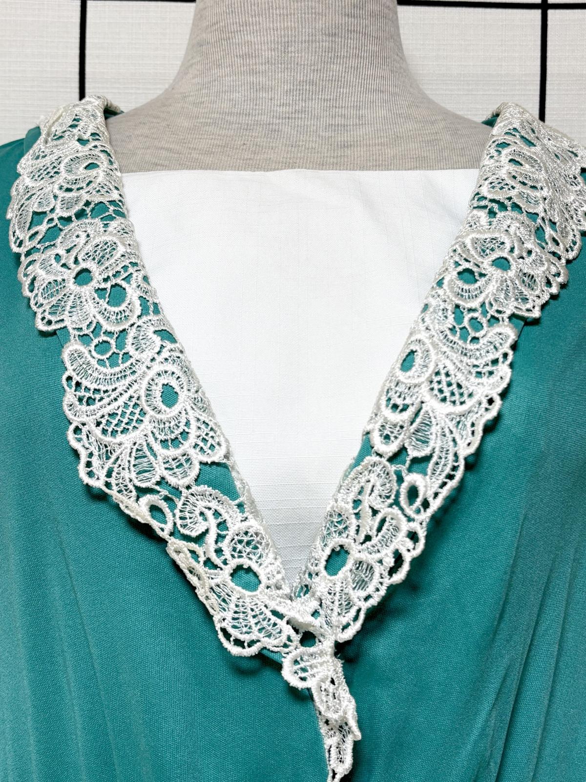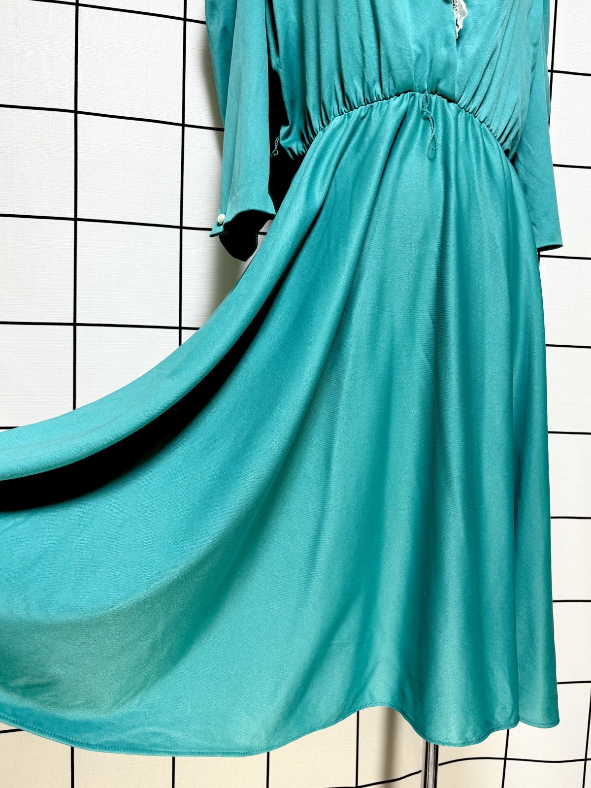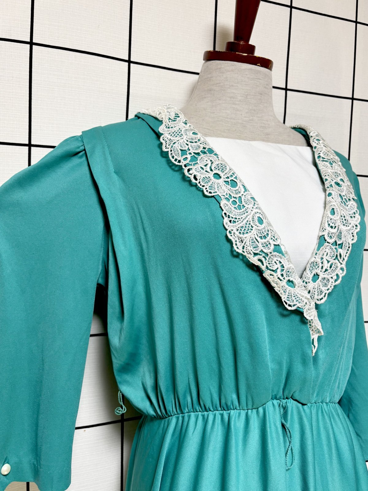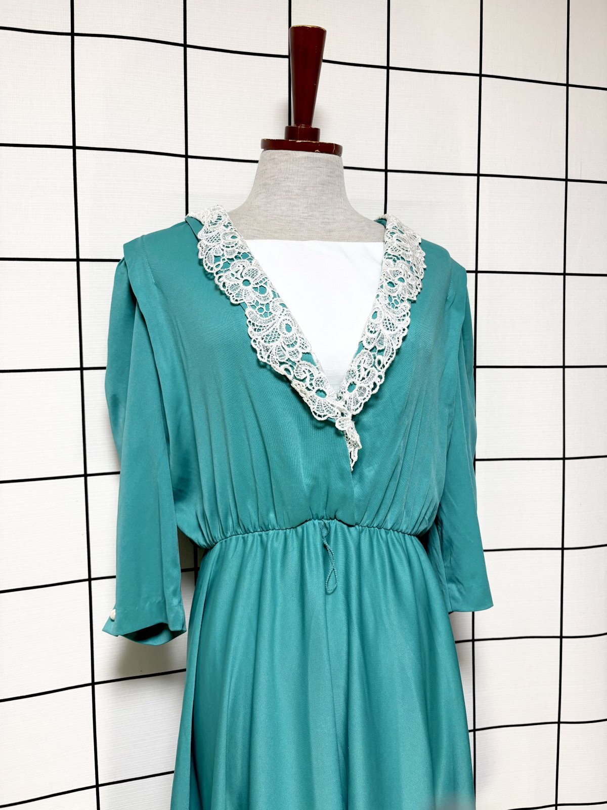 レース襟 無地 ウエストゴム レトロ USA古着 ヴィンテージワンピース [M11455]