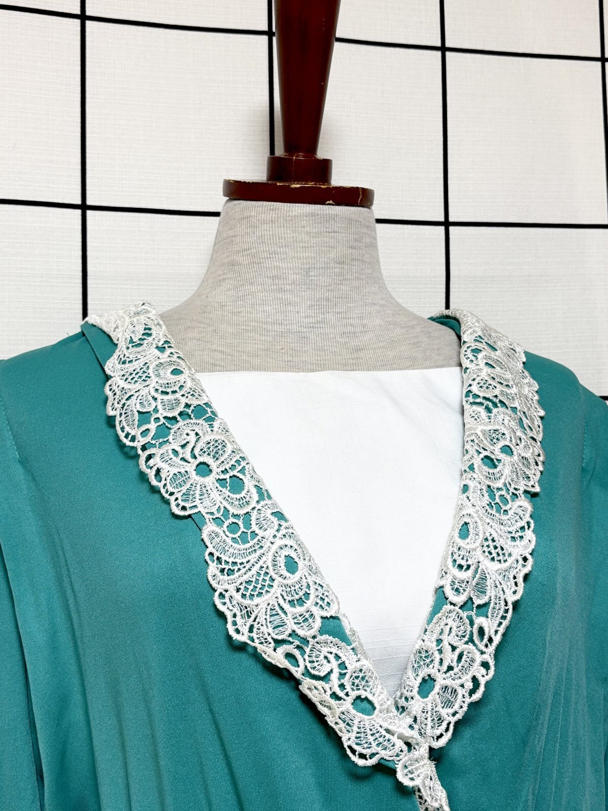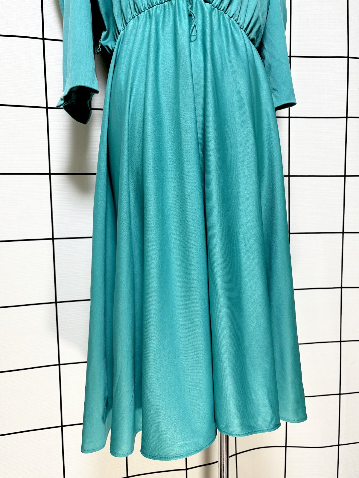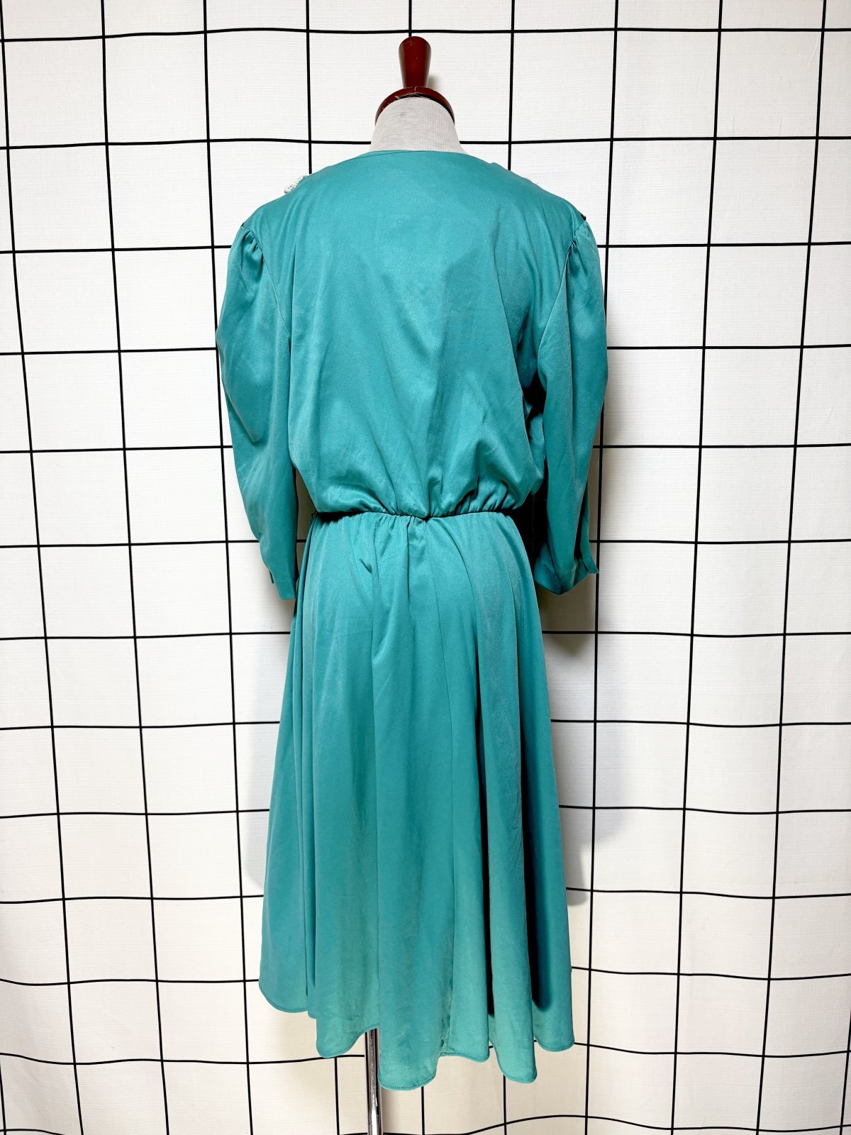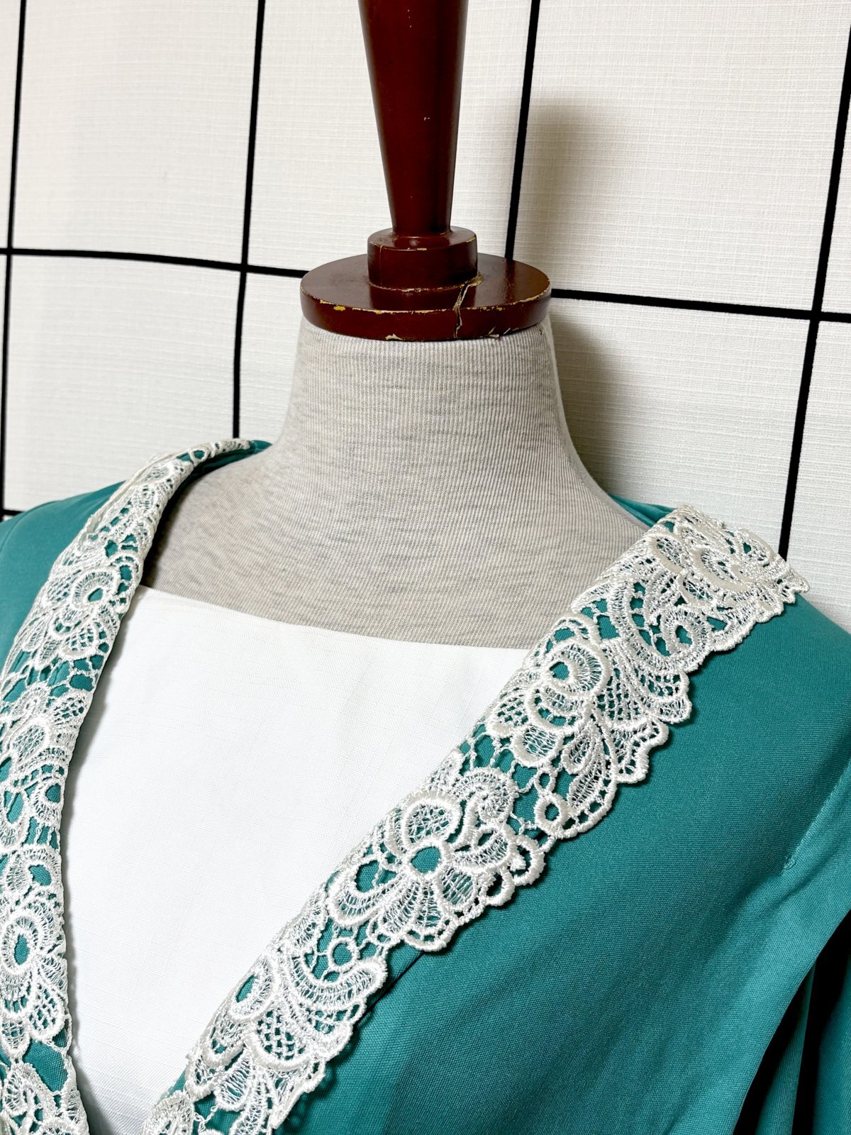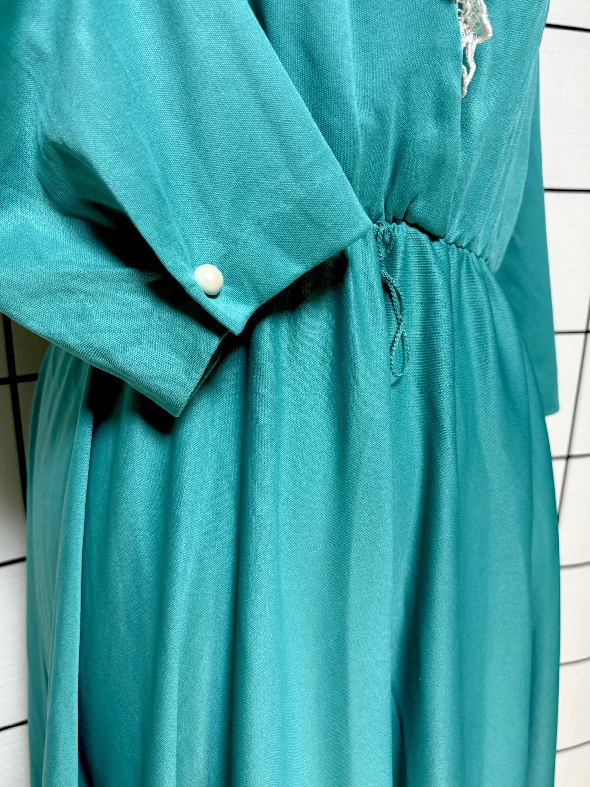 レース襟 無地 ウエストゴム レトロ USA古着 ヴィンテージワンピース [M11455]