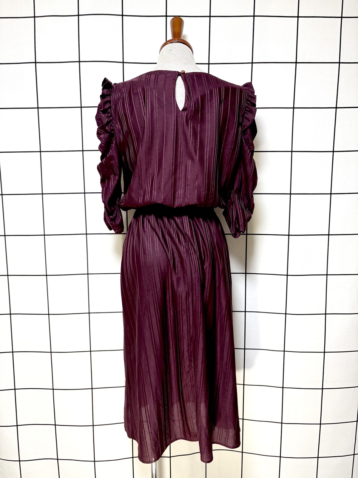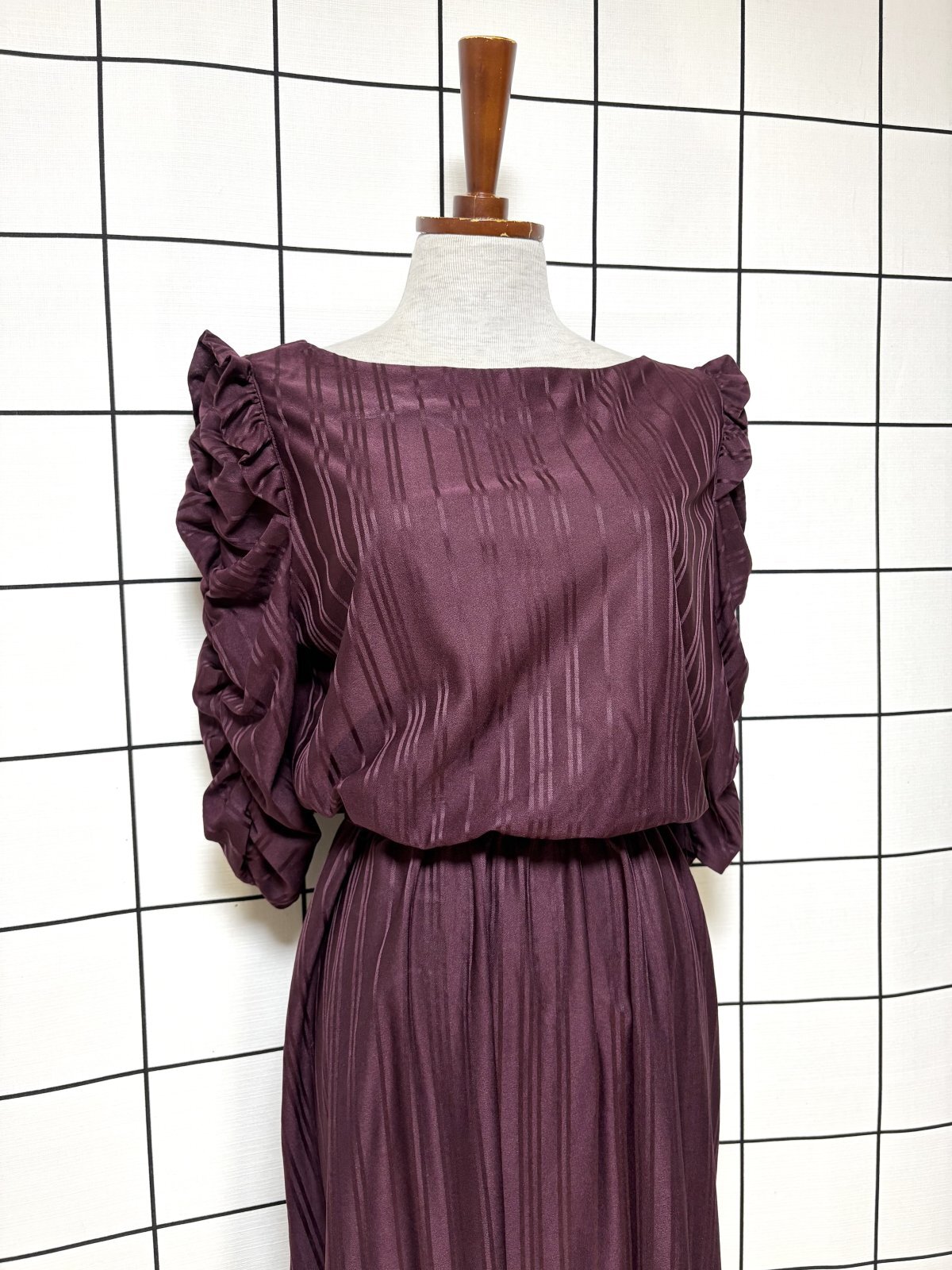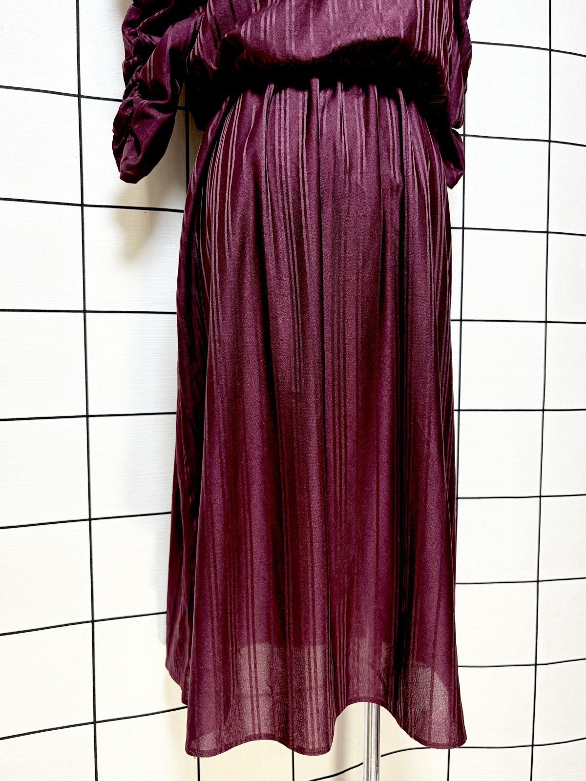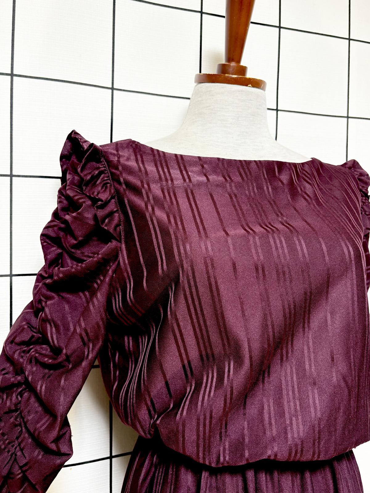 ストライプ シャーリング ウエストゴム レトロ USA古着 ヴィンテージワンピース [M11456]