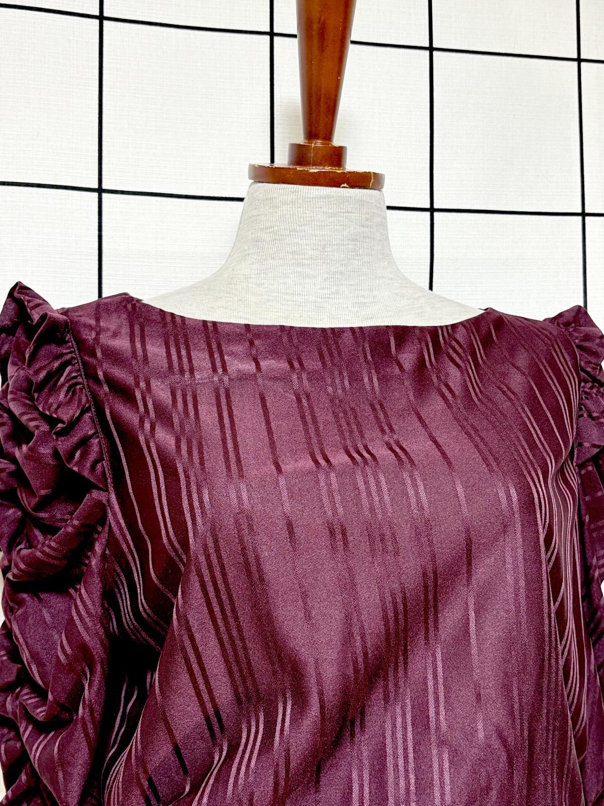 ストライプ柄やシャーリングスリーブデザインが素敵。