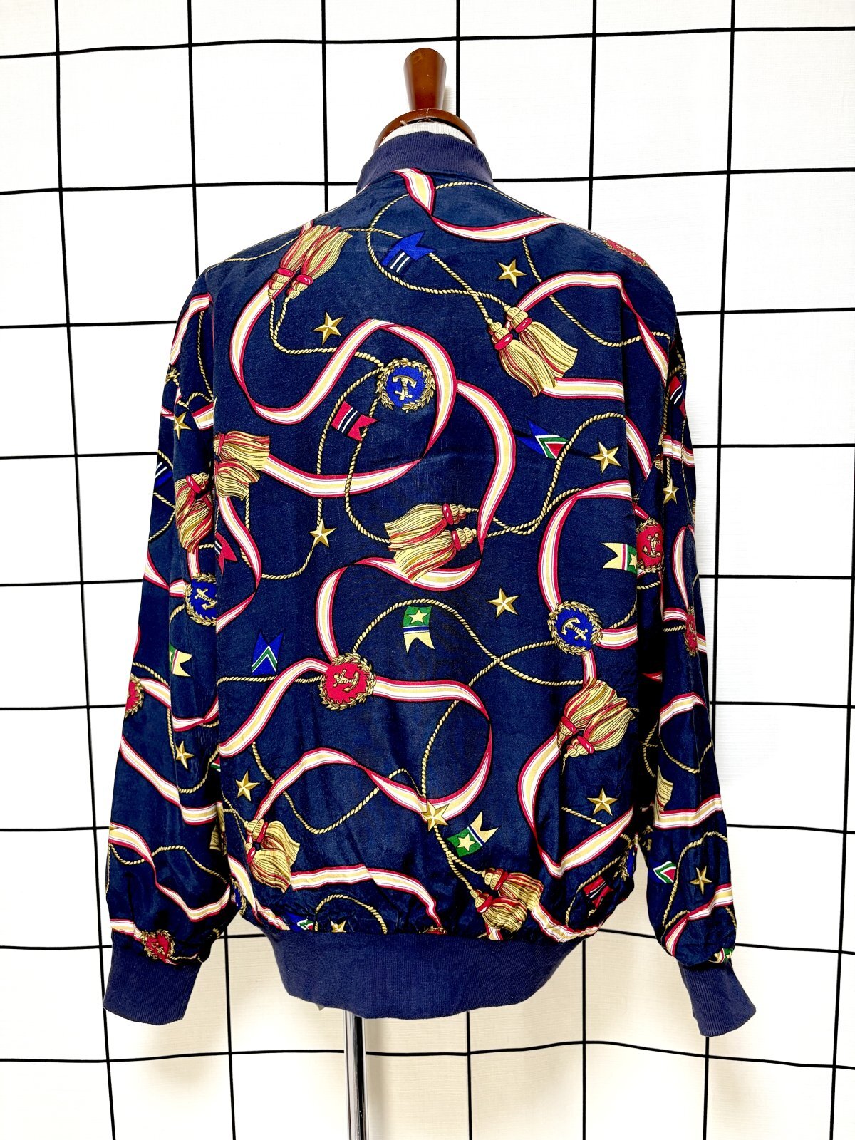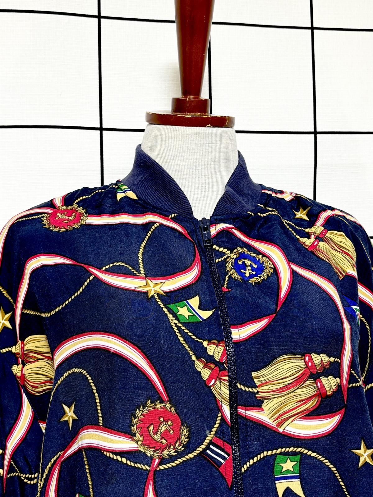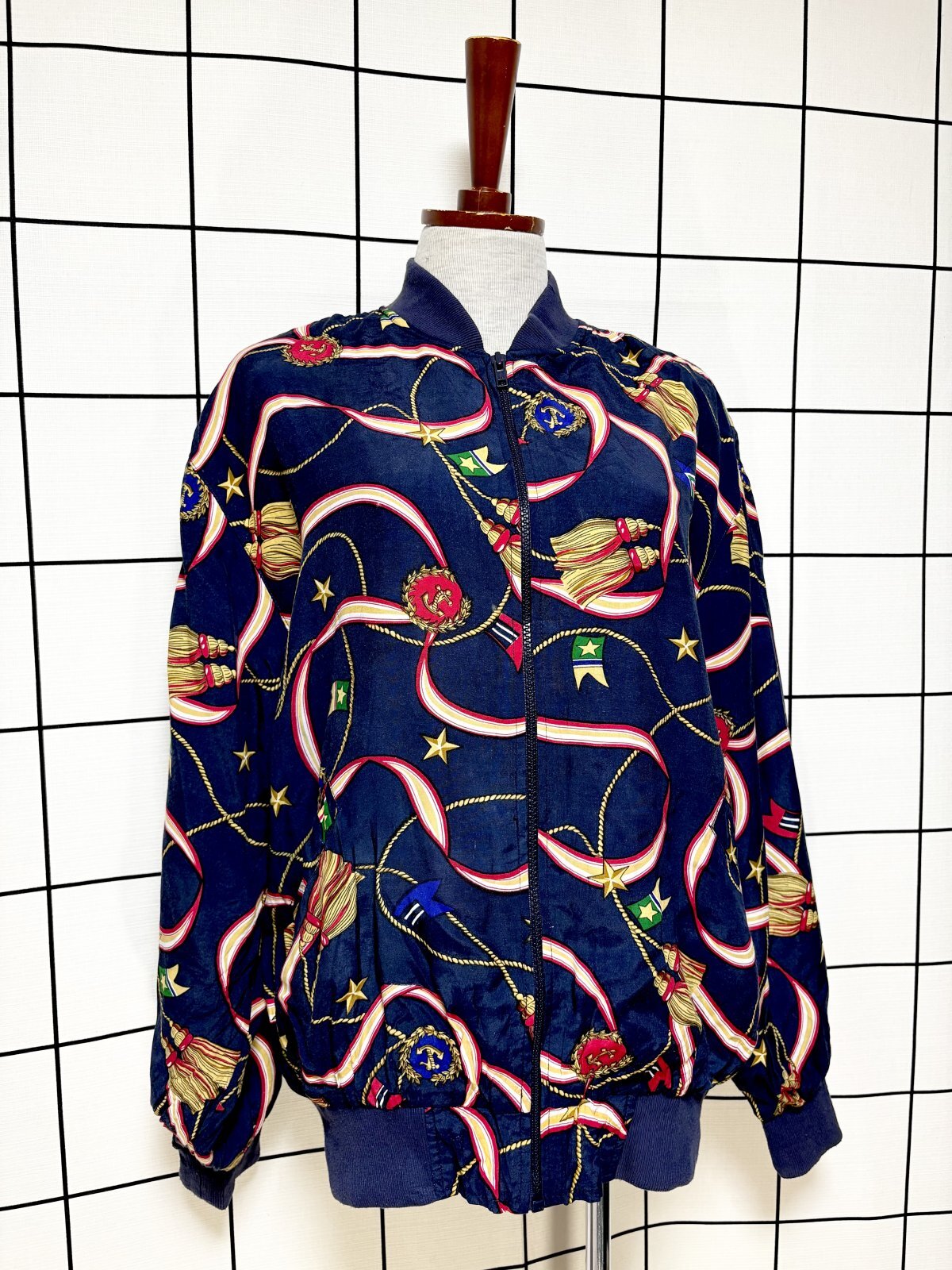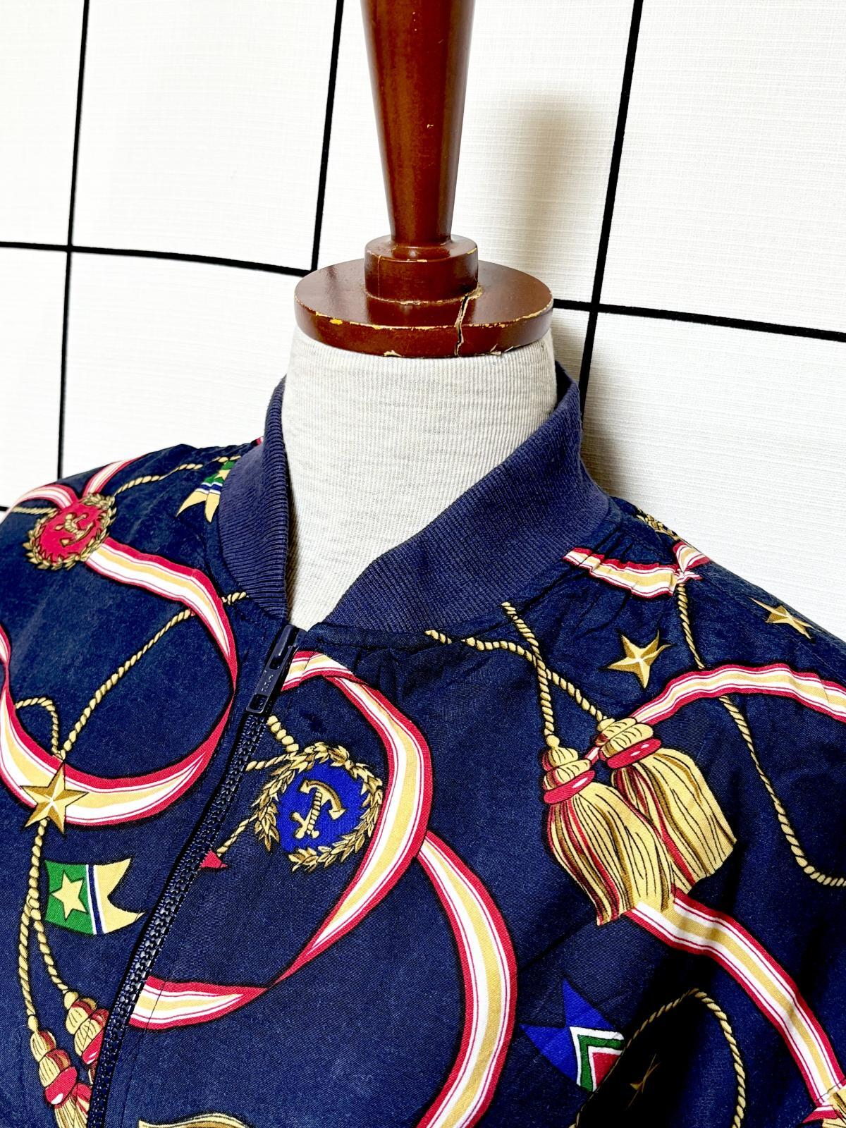 スカーフ柄が広がるUSAヴィンテージブルゾンジャケットになります。