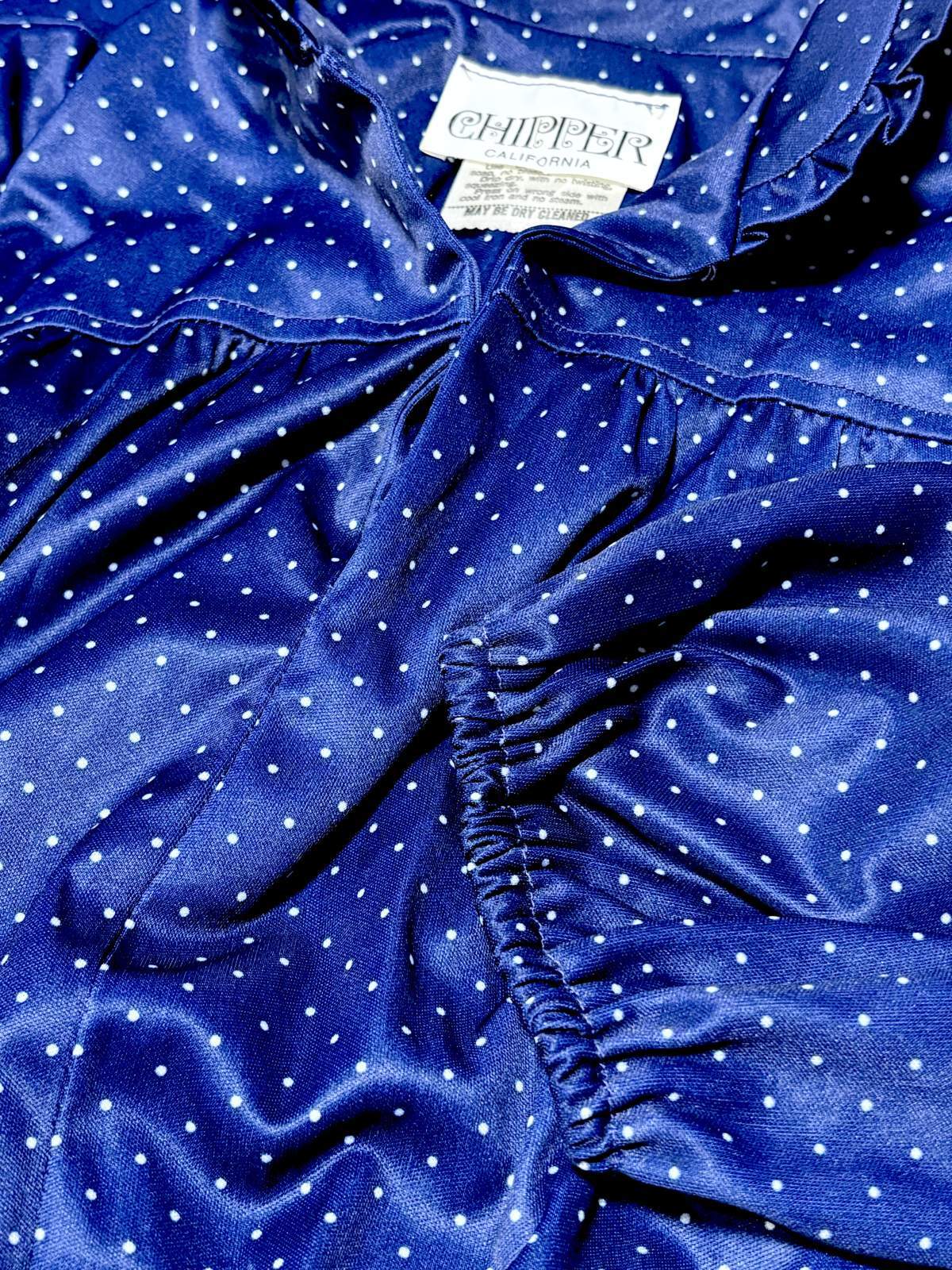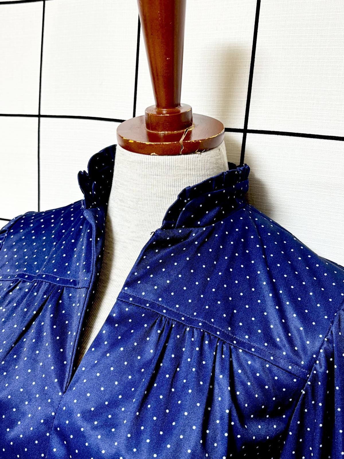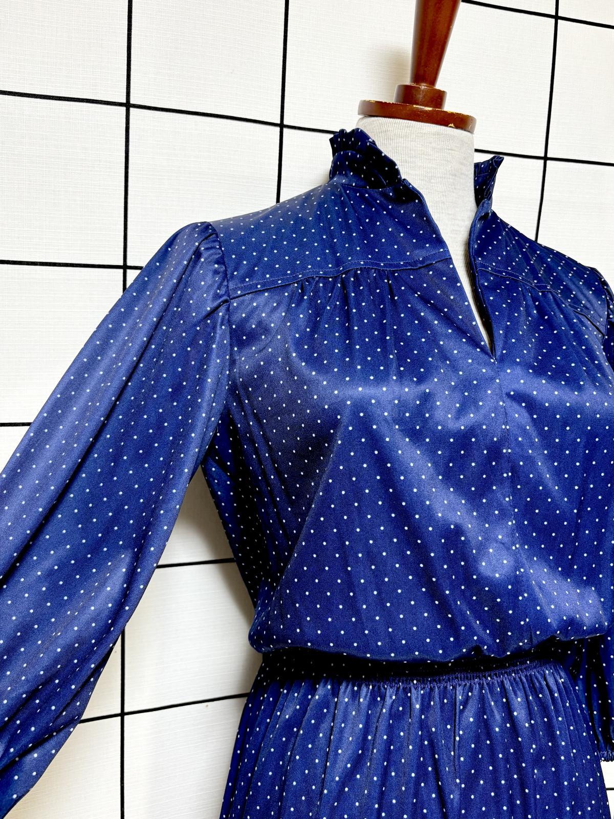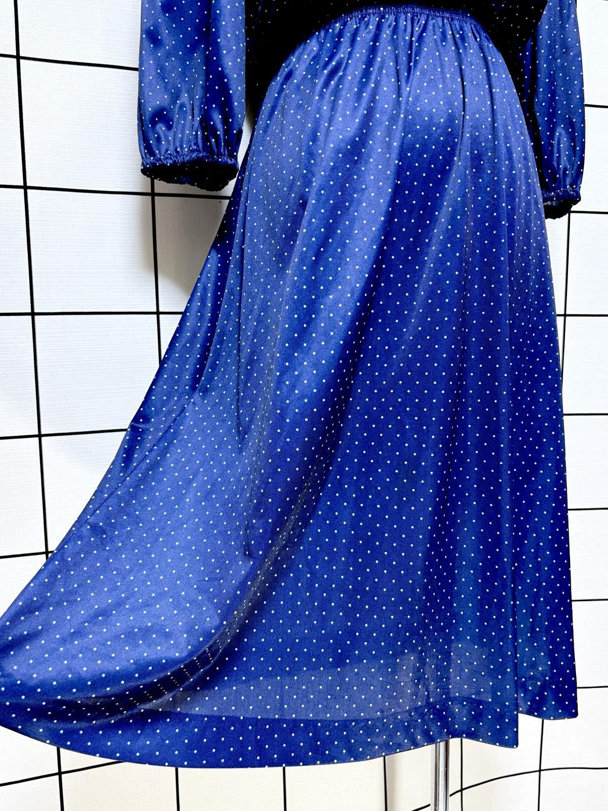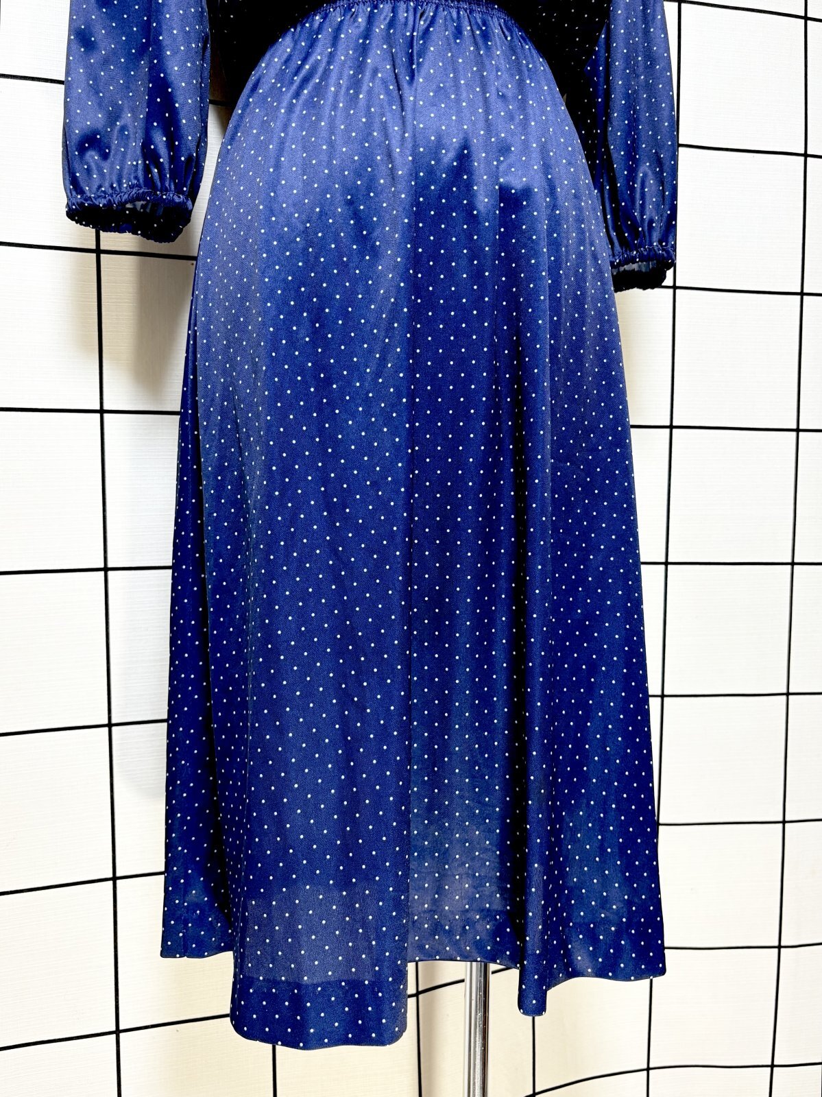 ドット柄 ネイビー ウエストゴム レトロ USA古着 ヴィンテージワンピース [M11470]