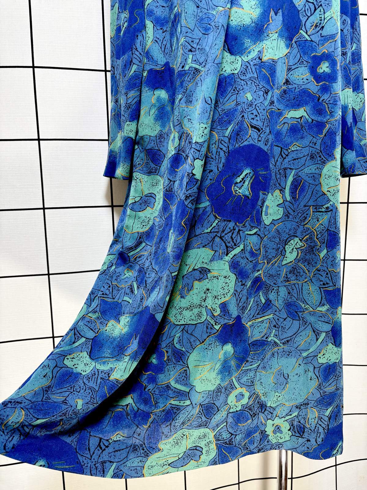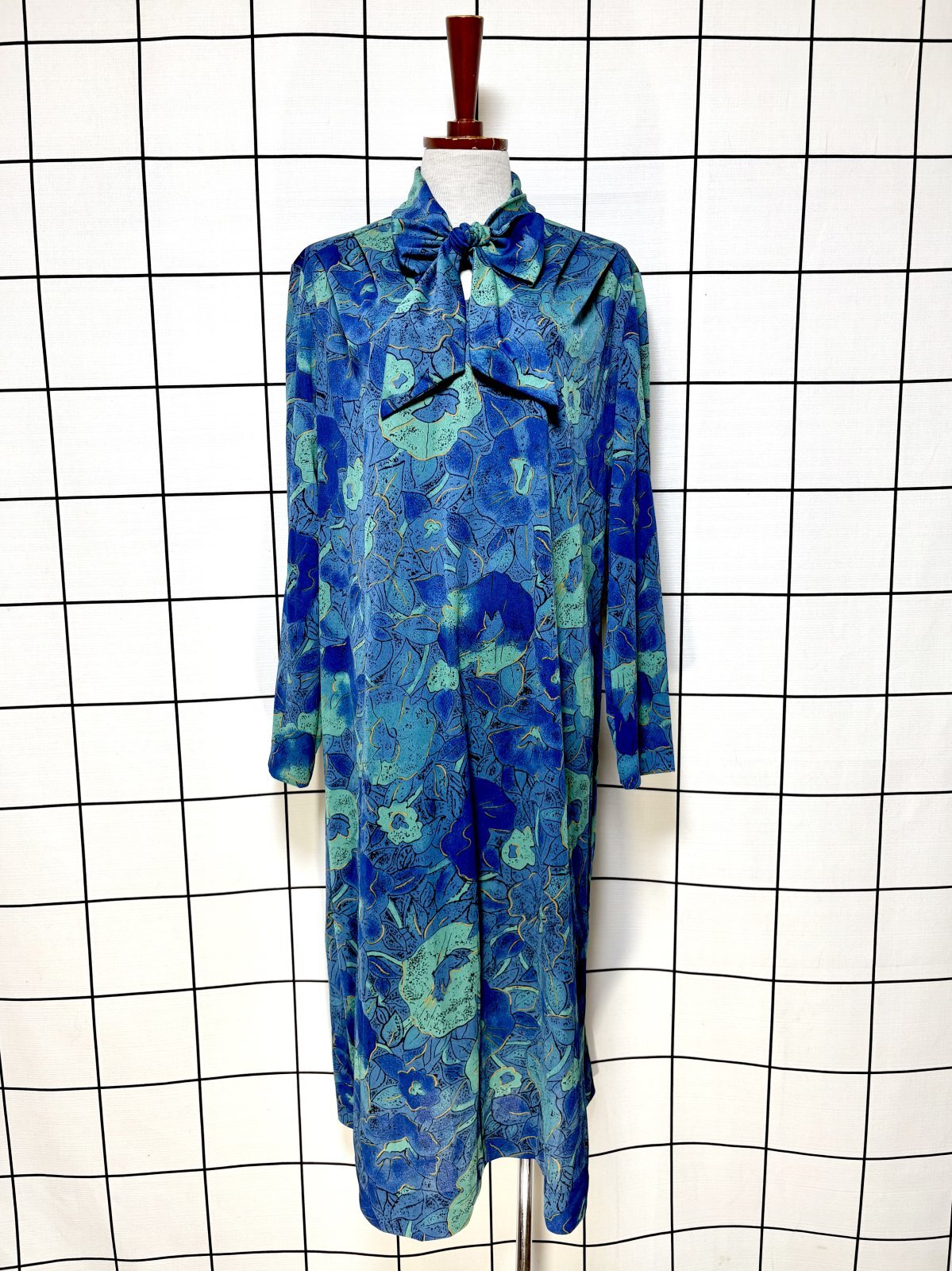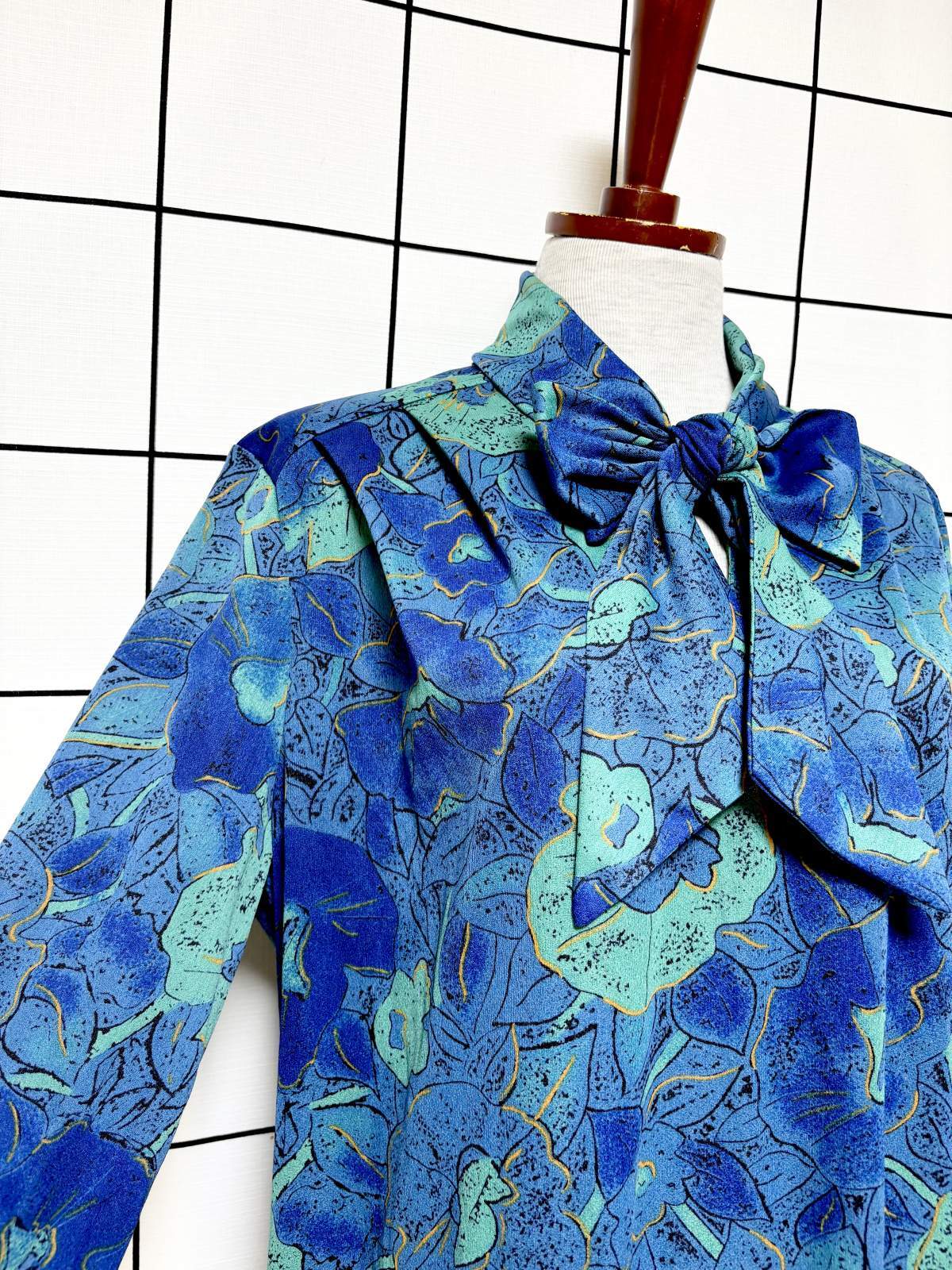 フランス製 FRANCE 花柄 リボンタイ付 レトロ ヨーロッパ古着 ヴィンテージワンピース [M7515]