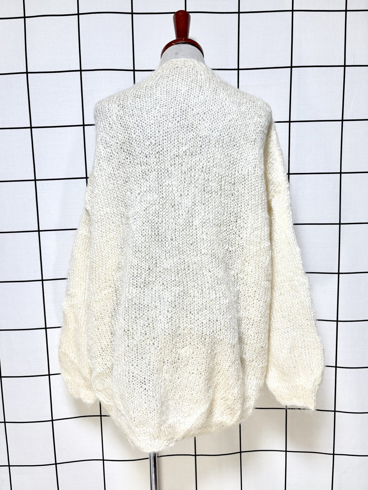 オフホワイト 無地 大きめサイズ オーバーサイズ モヘア レトロ USA古着 ヴィンテージニットカーディガン [8210]