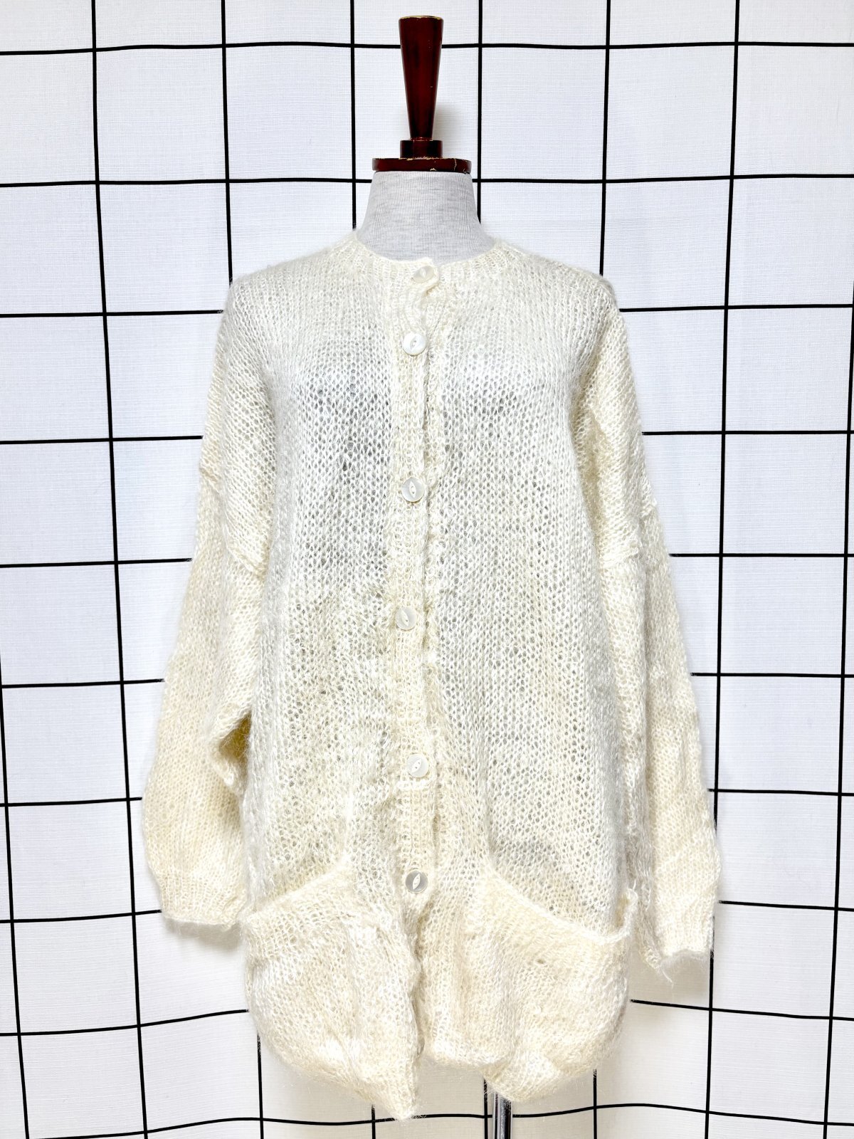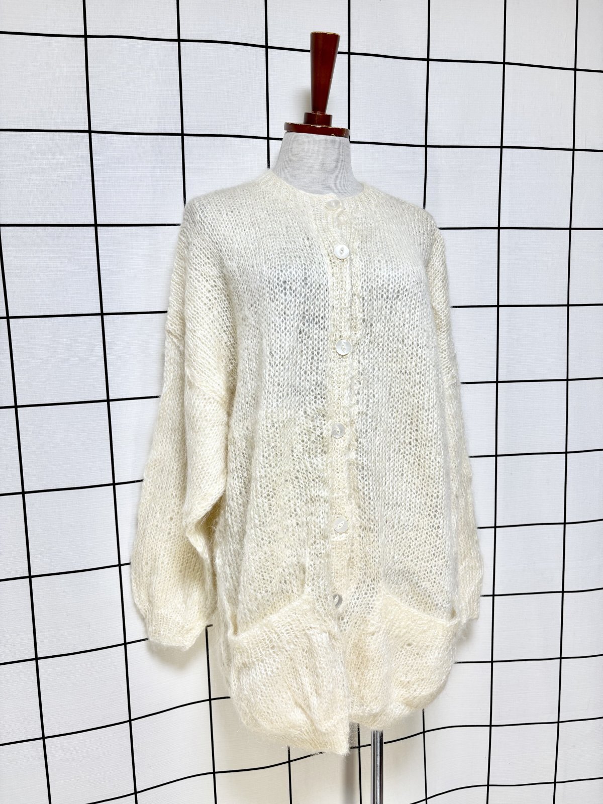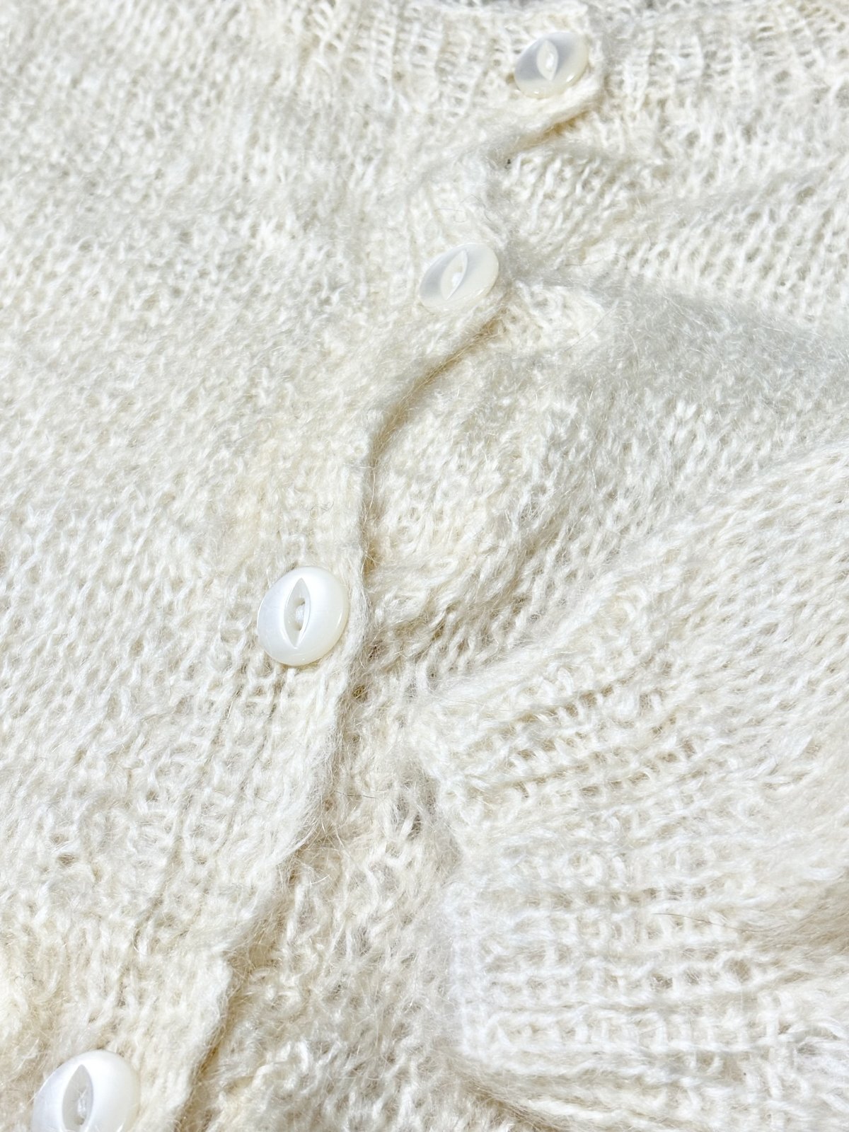 オフホワイト 無地 大きめサイズ オーバーサイズ モヘア レトロ USA古着 ヴィンテージニットカーディガン