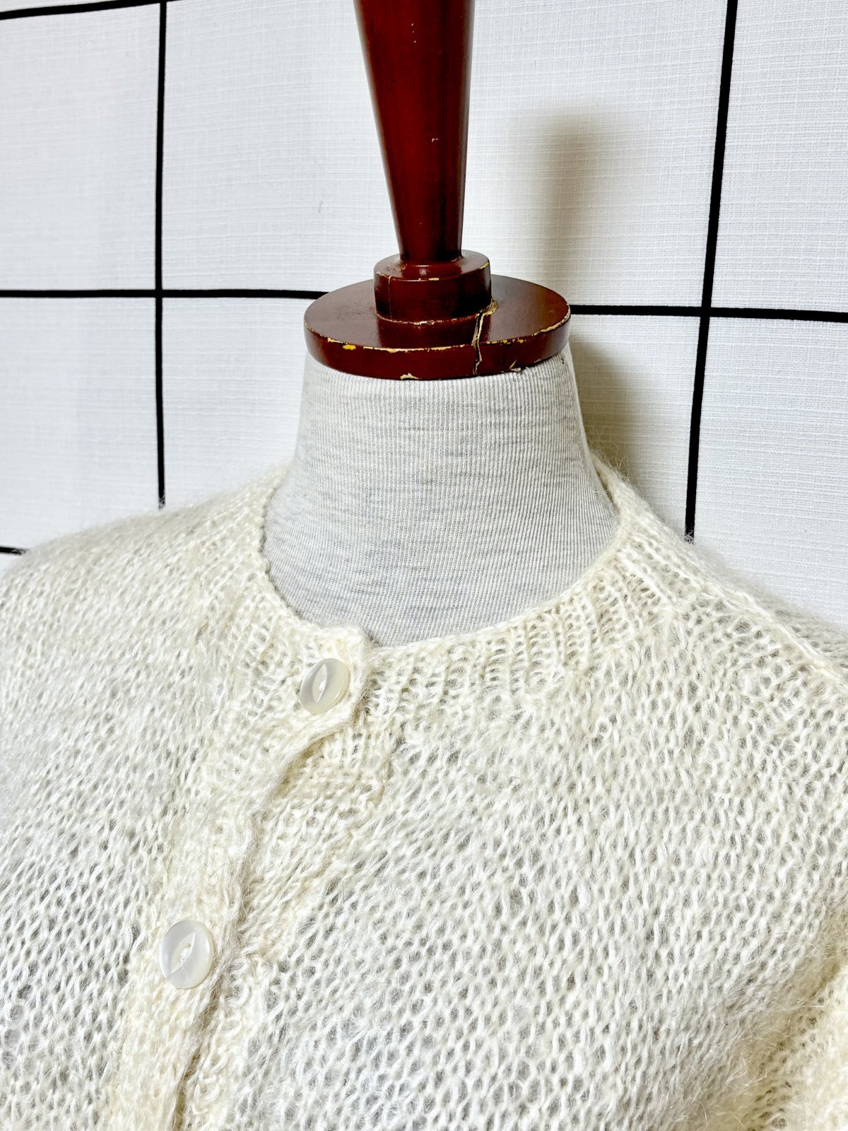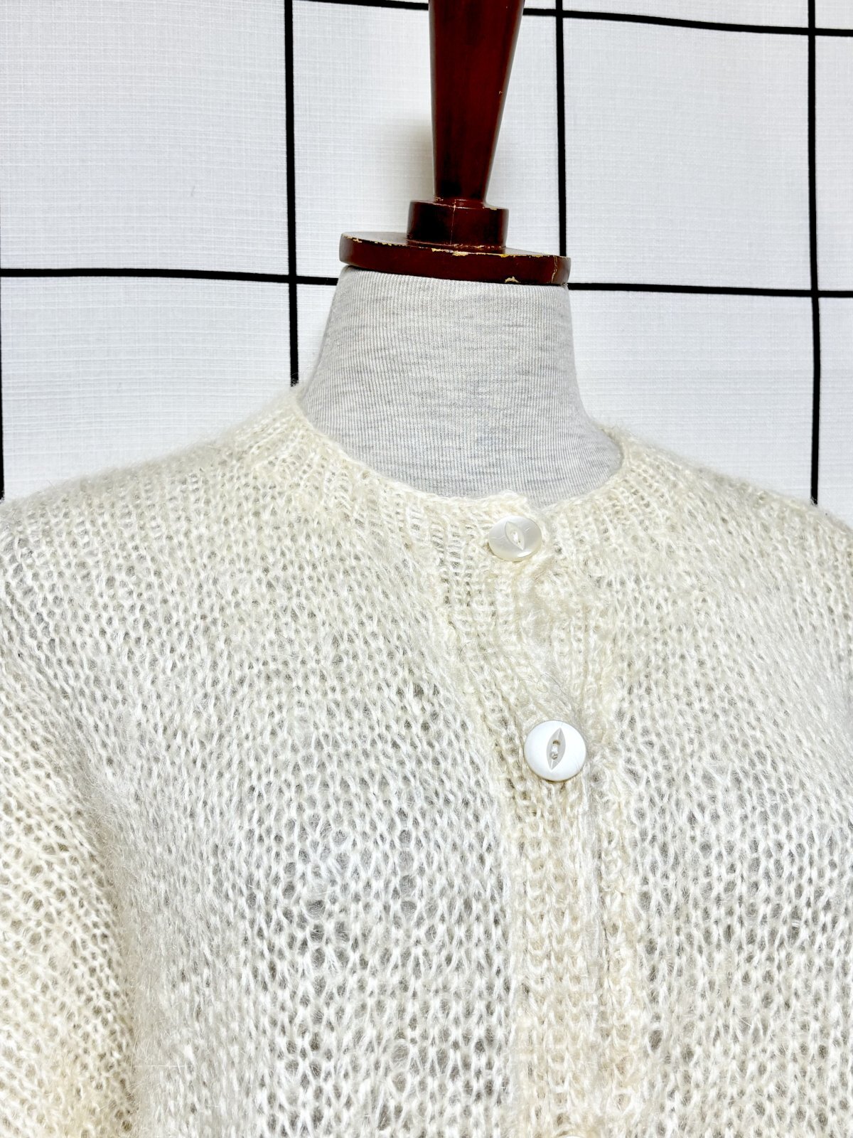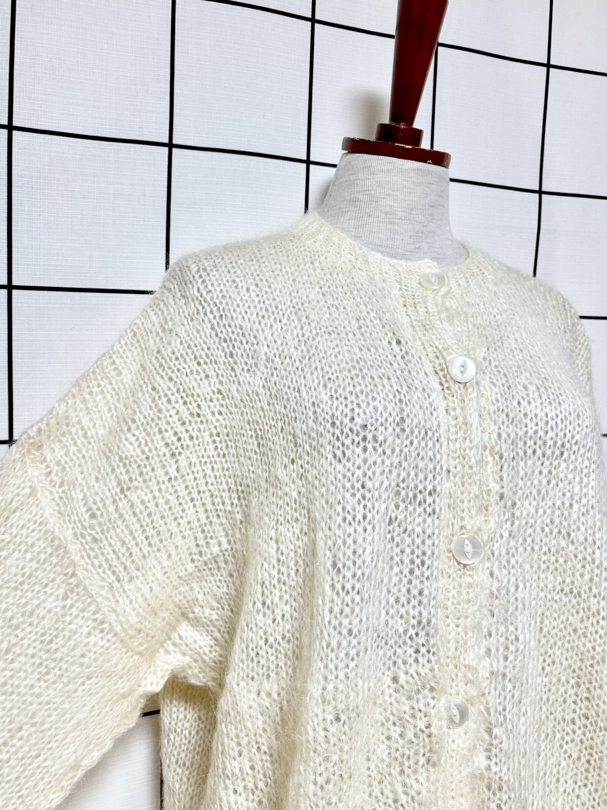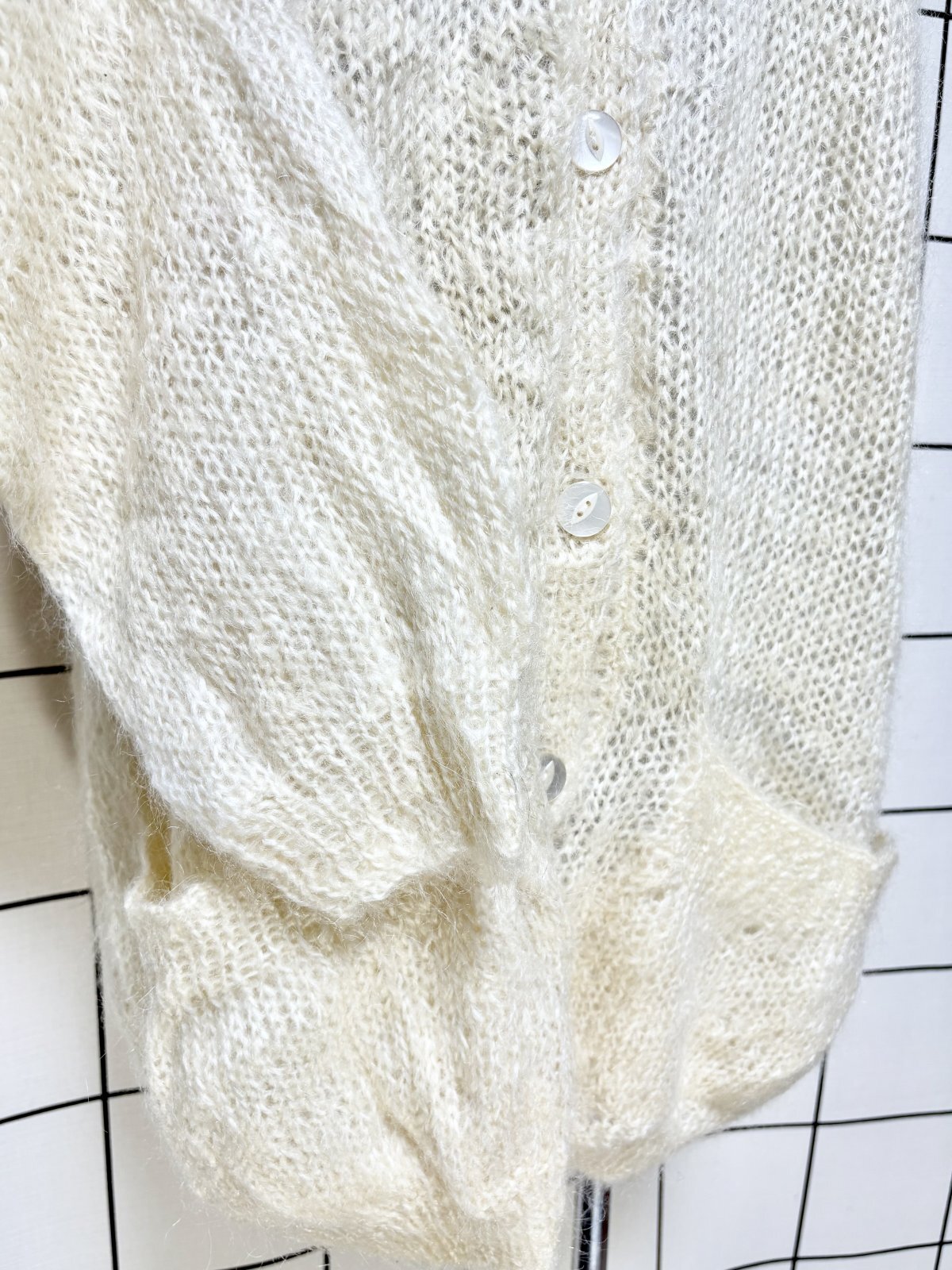 オフホワイト 無地 大きめサイズ オーバーサイズ モヘア レトロ USA古着 ヴィンテージニットカーディガン