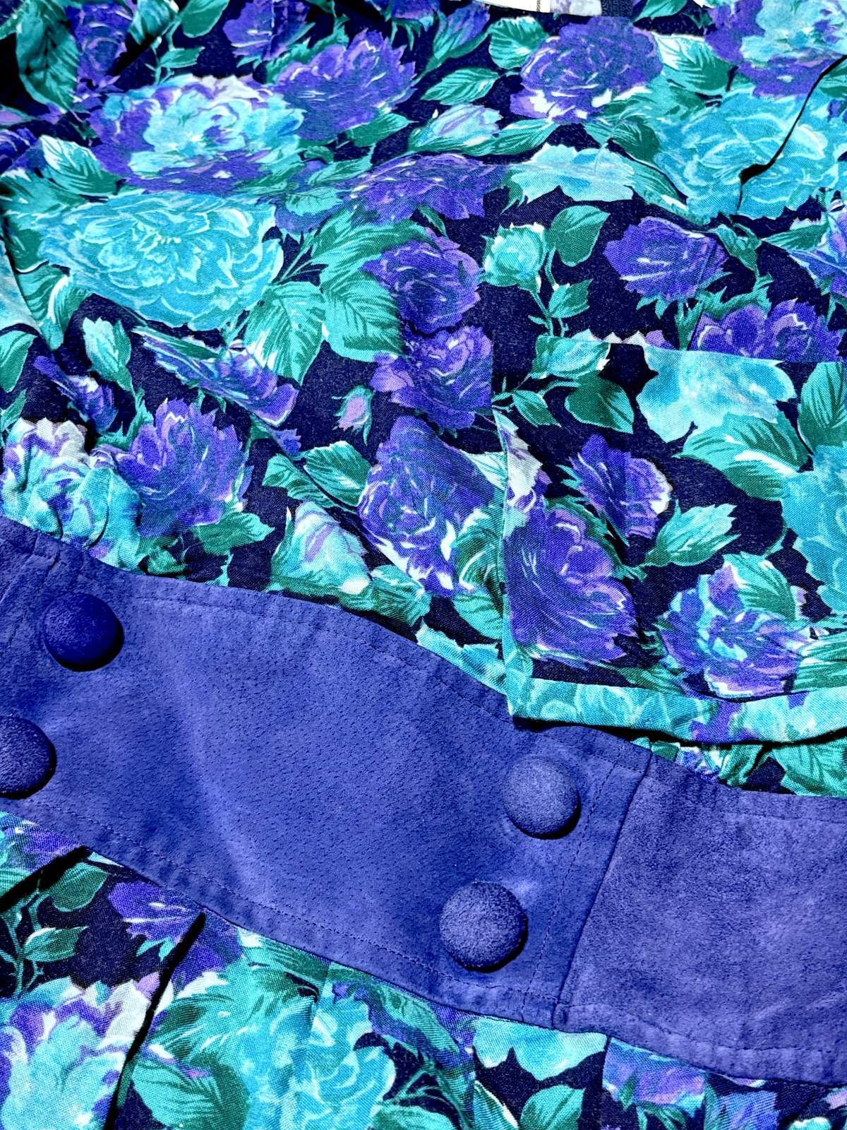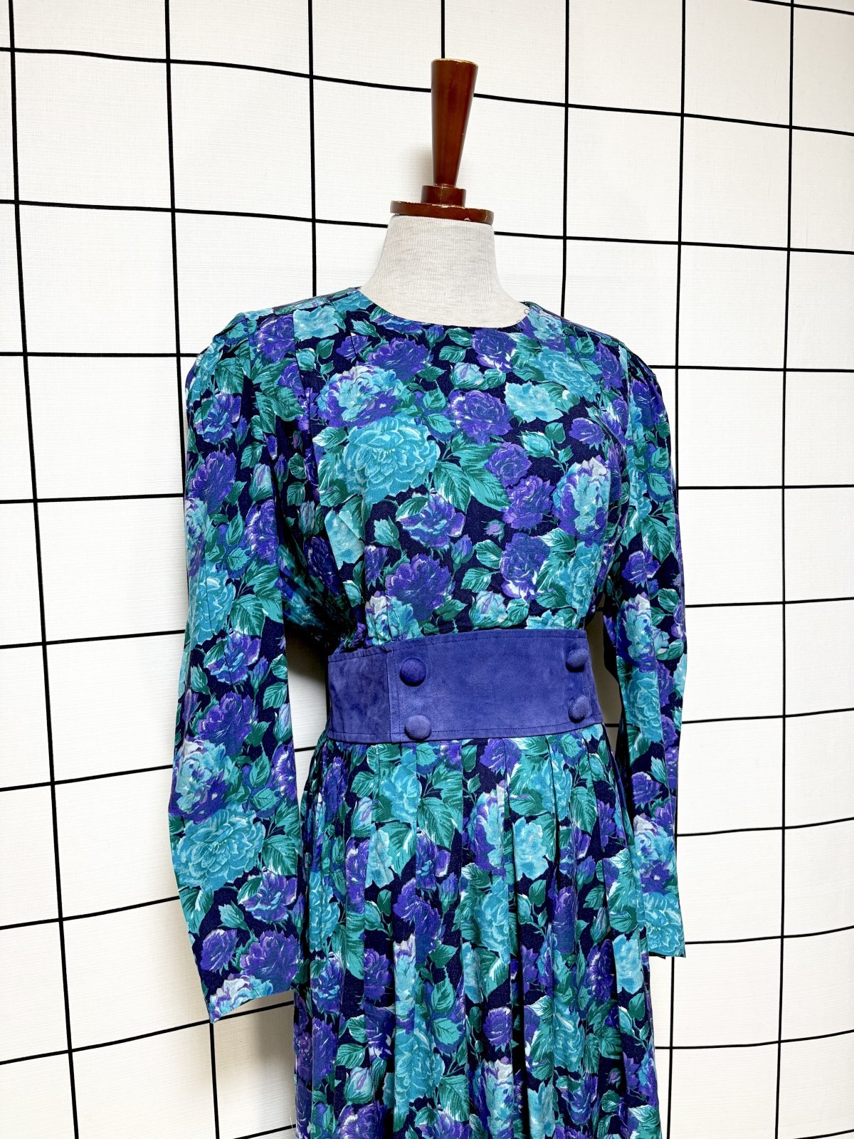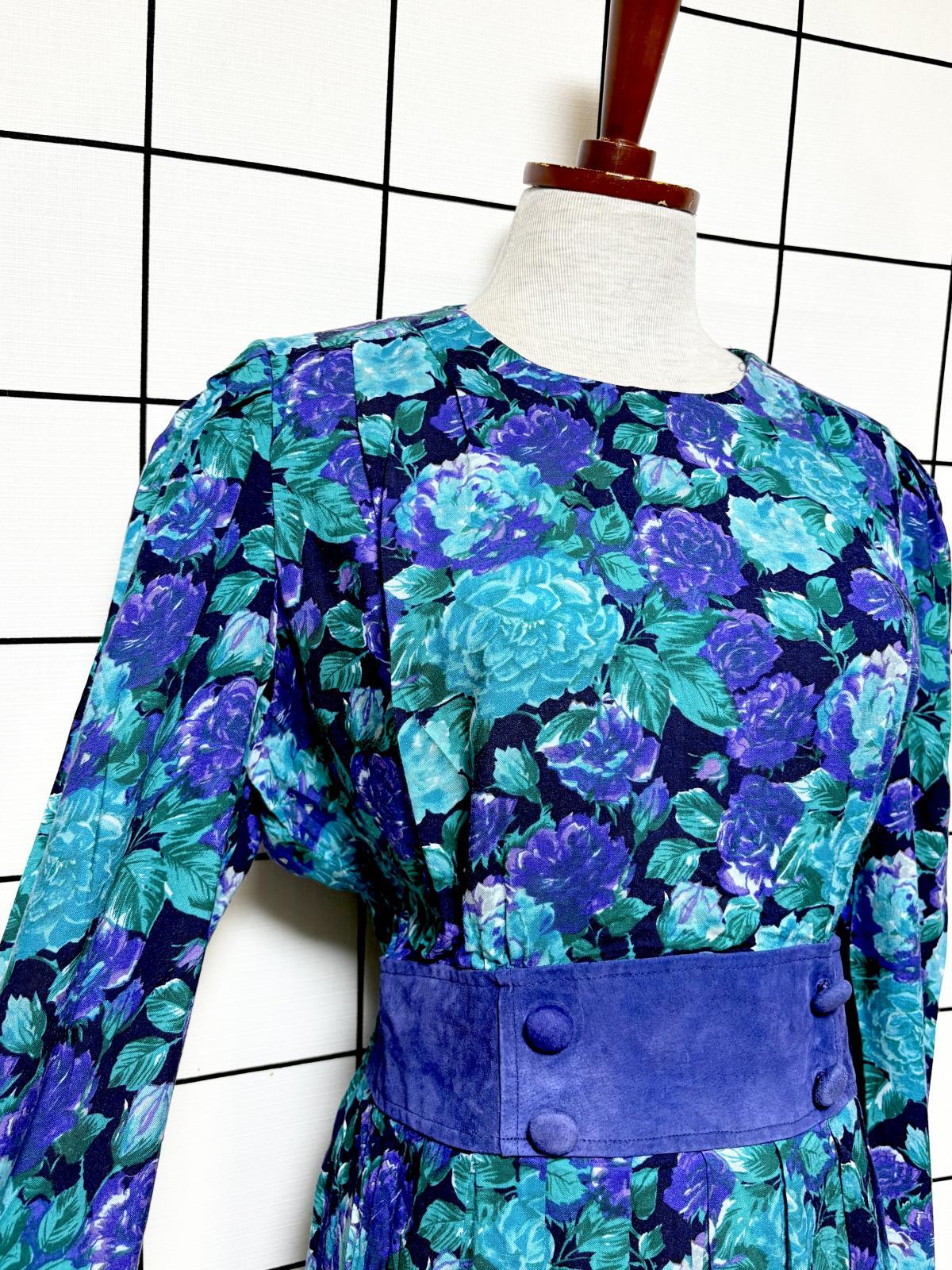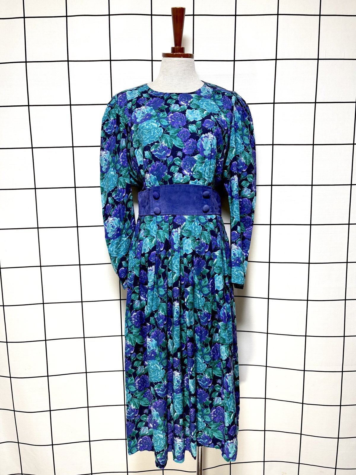 花柄 スエードライン レトロ USA古着 ヴィンテージワンピース [M9723]