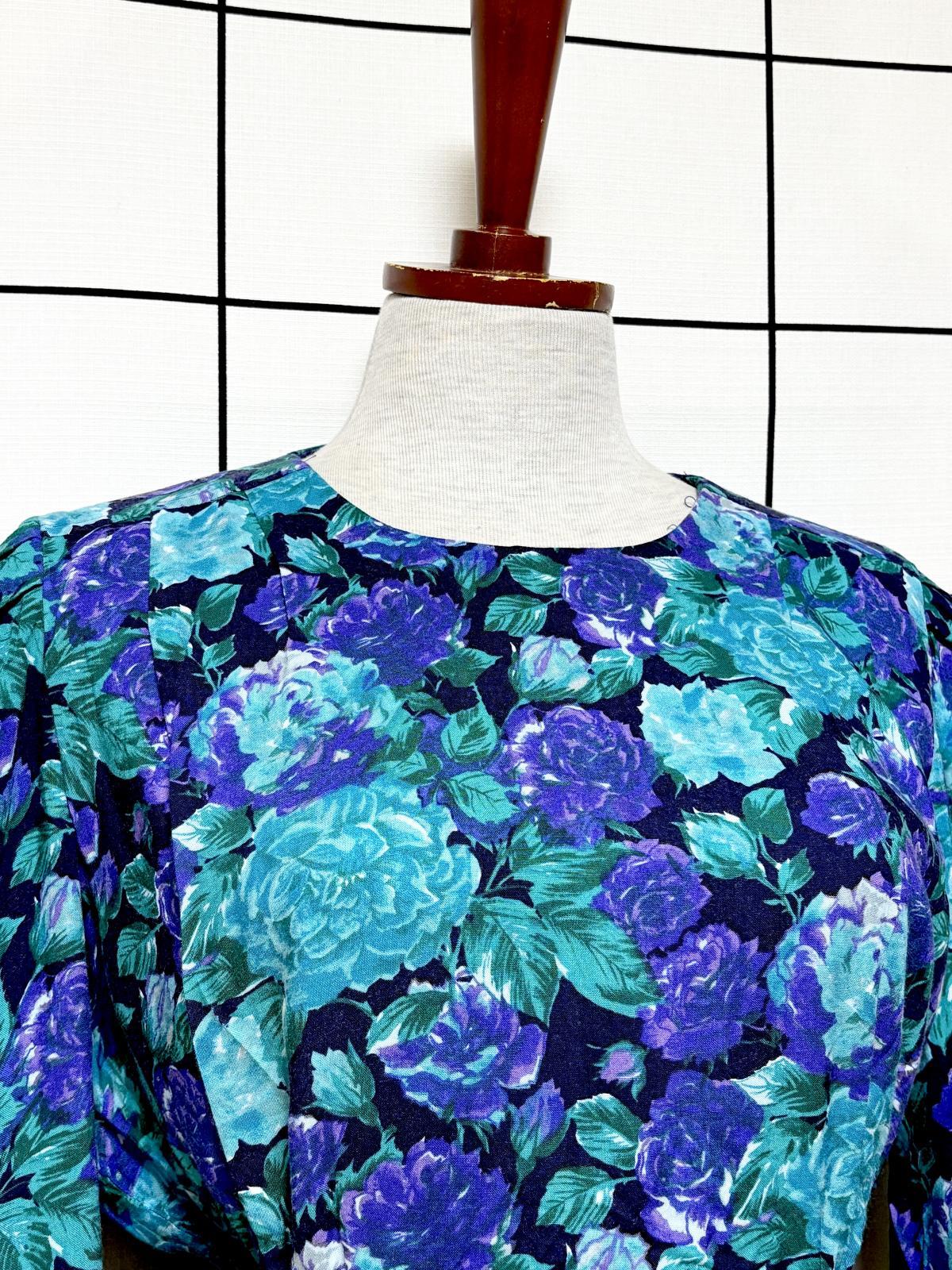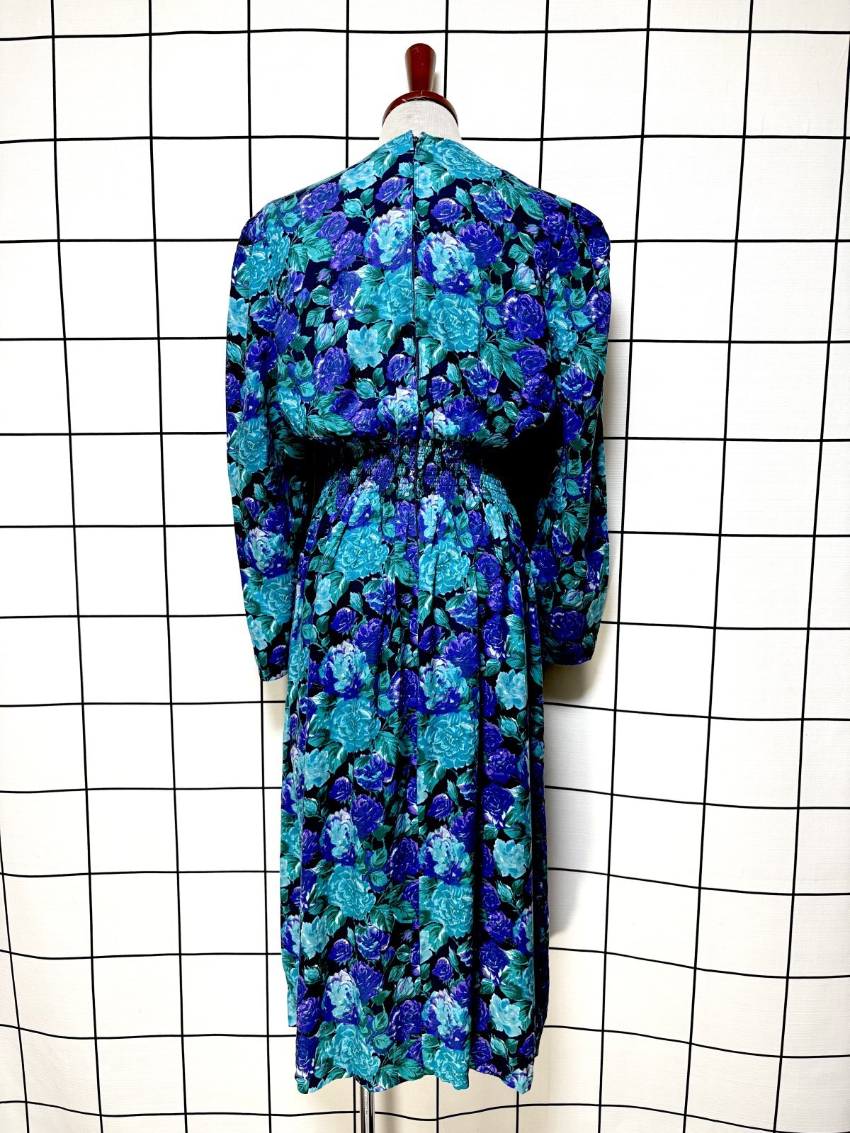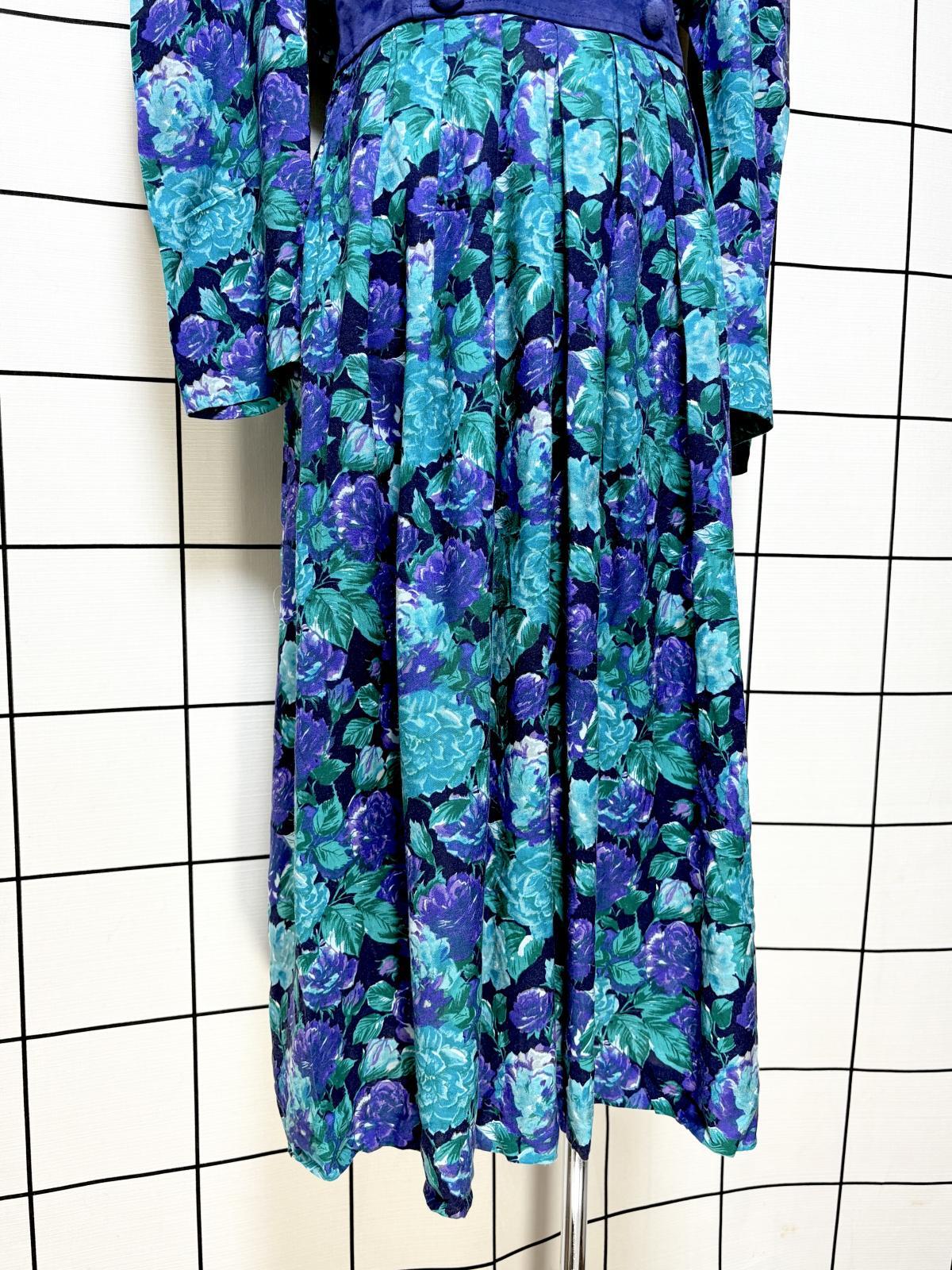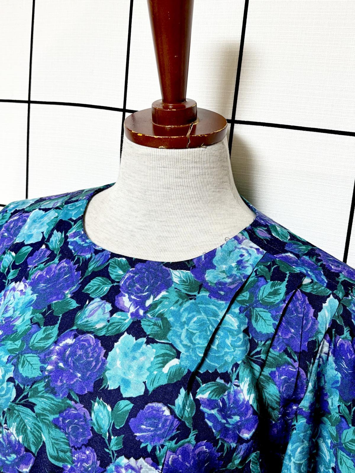 花柄 スエードライン レトロ USA古着 ヴィンテージワンピース [M9723]
