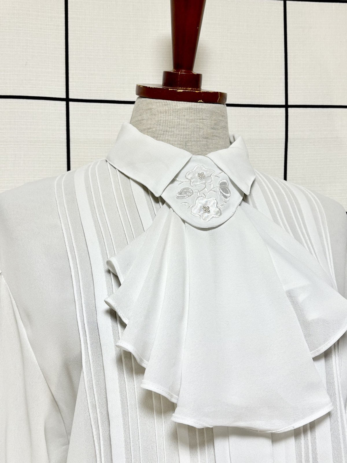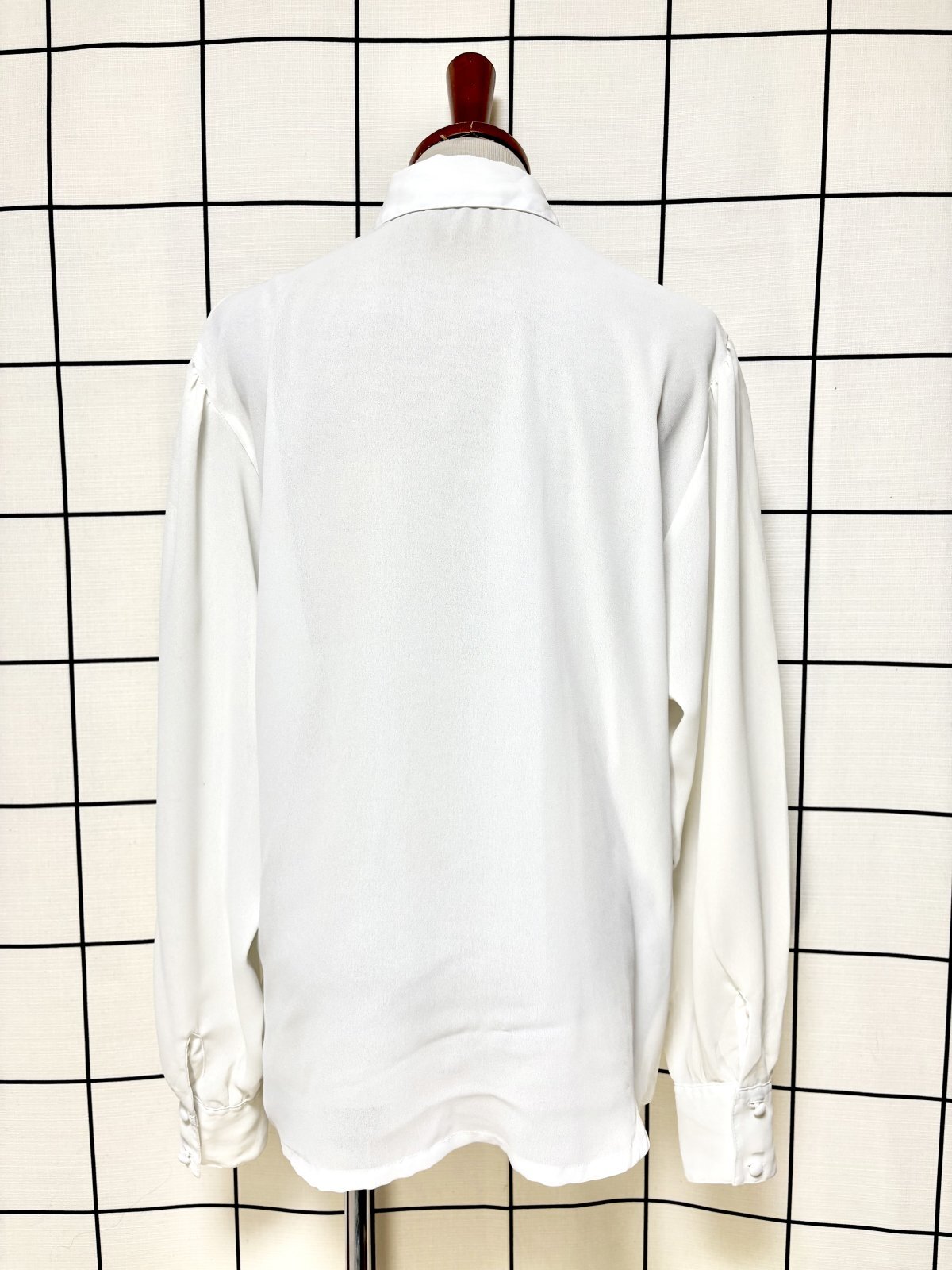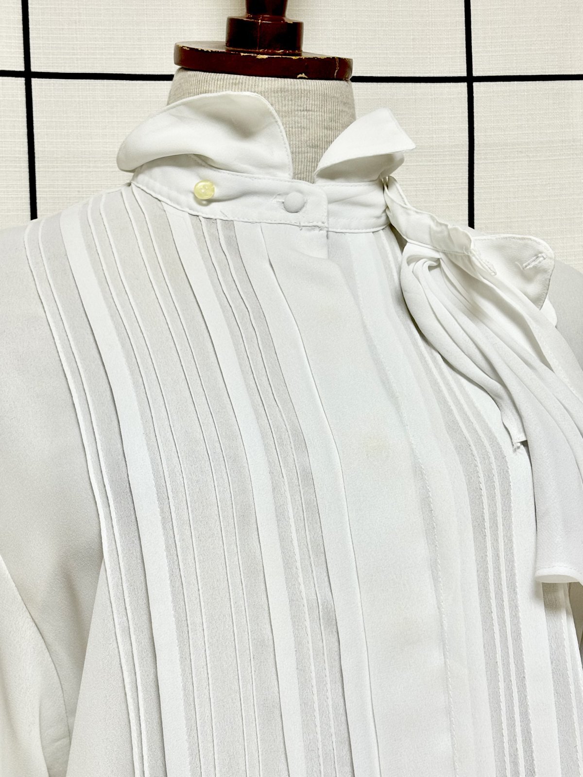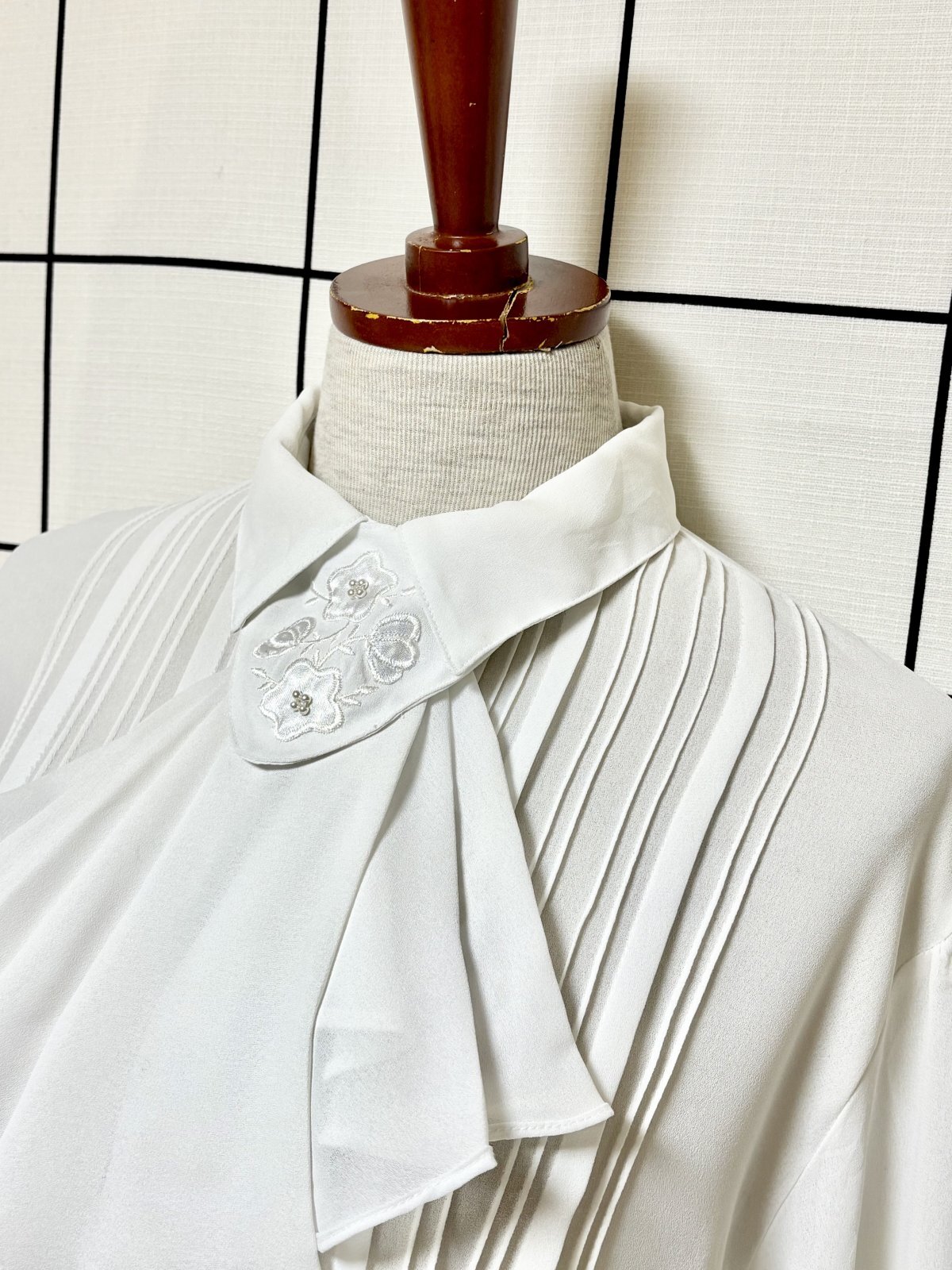 リボンタイ付 ホワイト クラシカル レトロ USA古着 ヴィンテージブラウス [M9741]