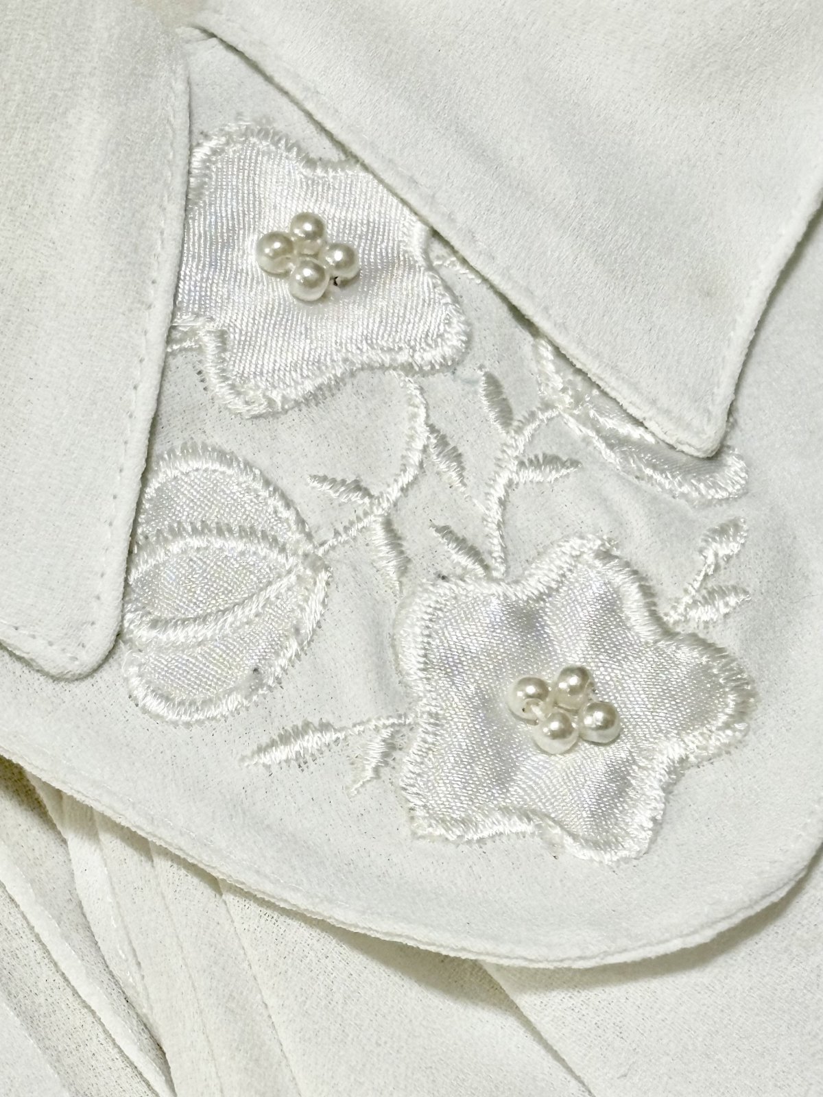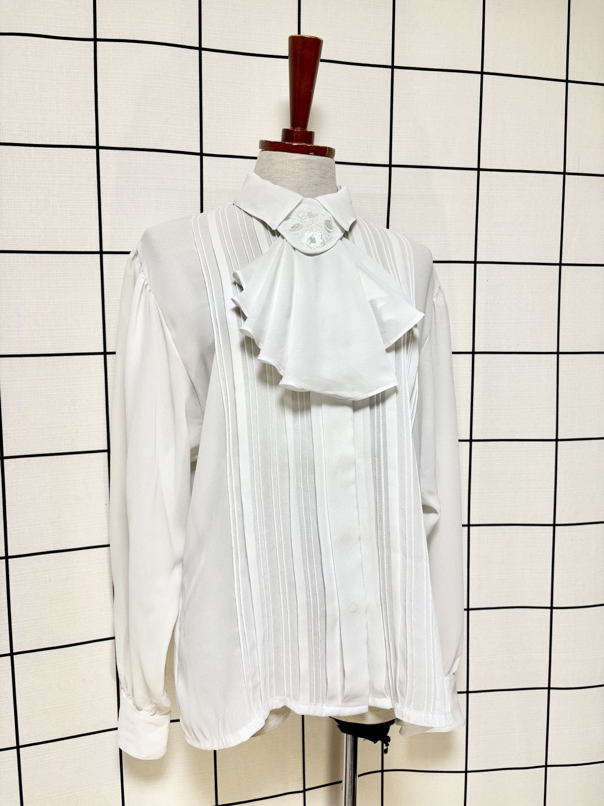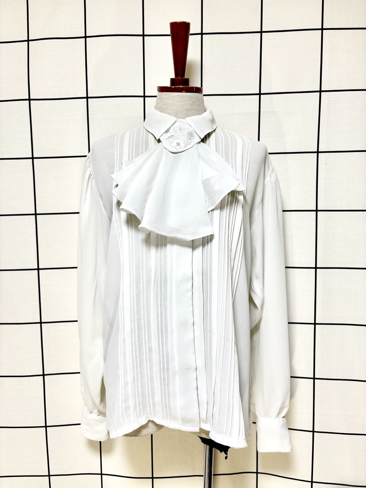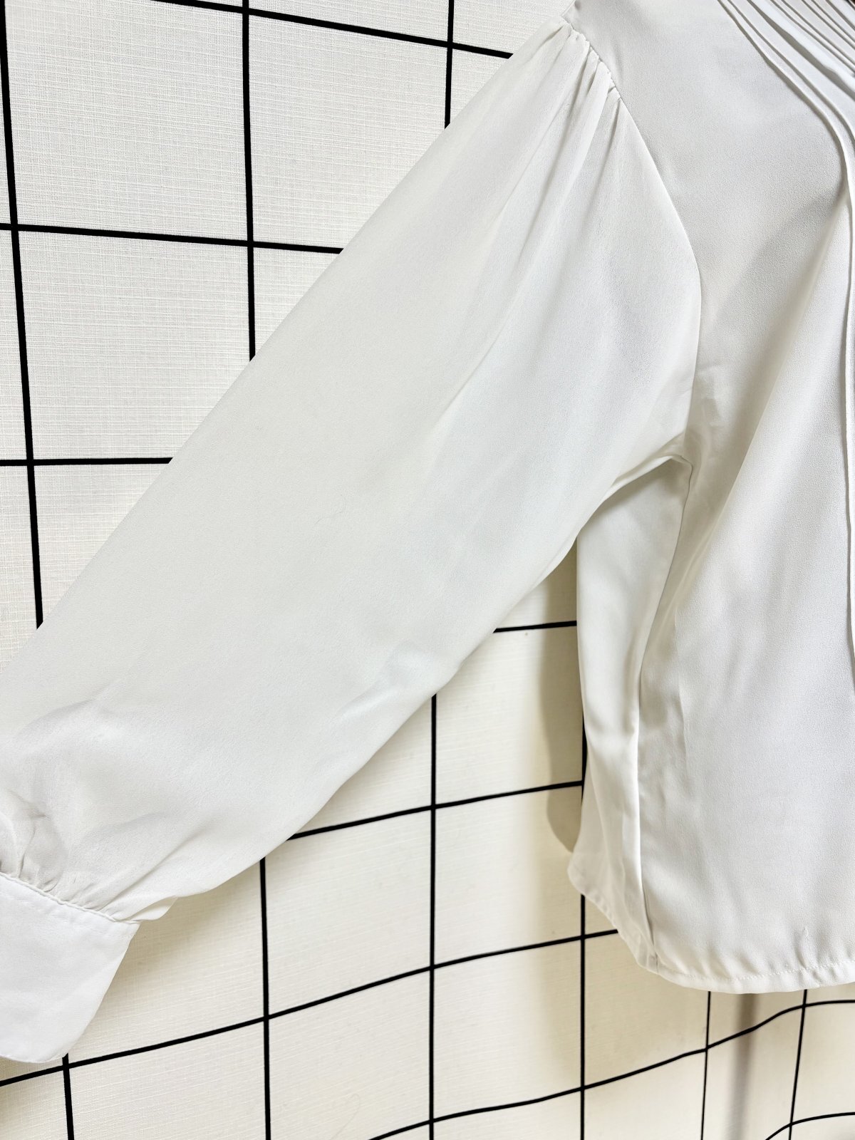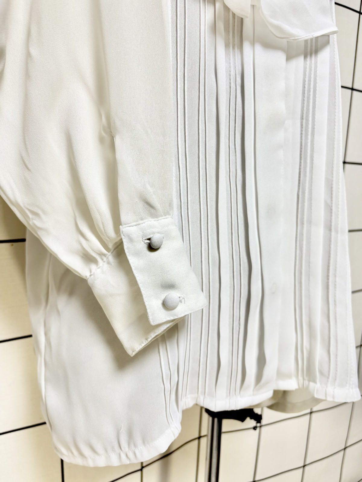 リボンタイ付 ホワイト クラシカル レトロ USA古着 ヴィンテージブラウス [M9741]